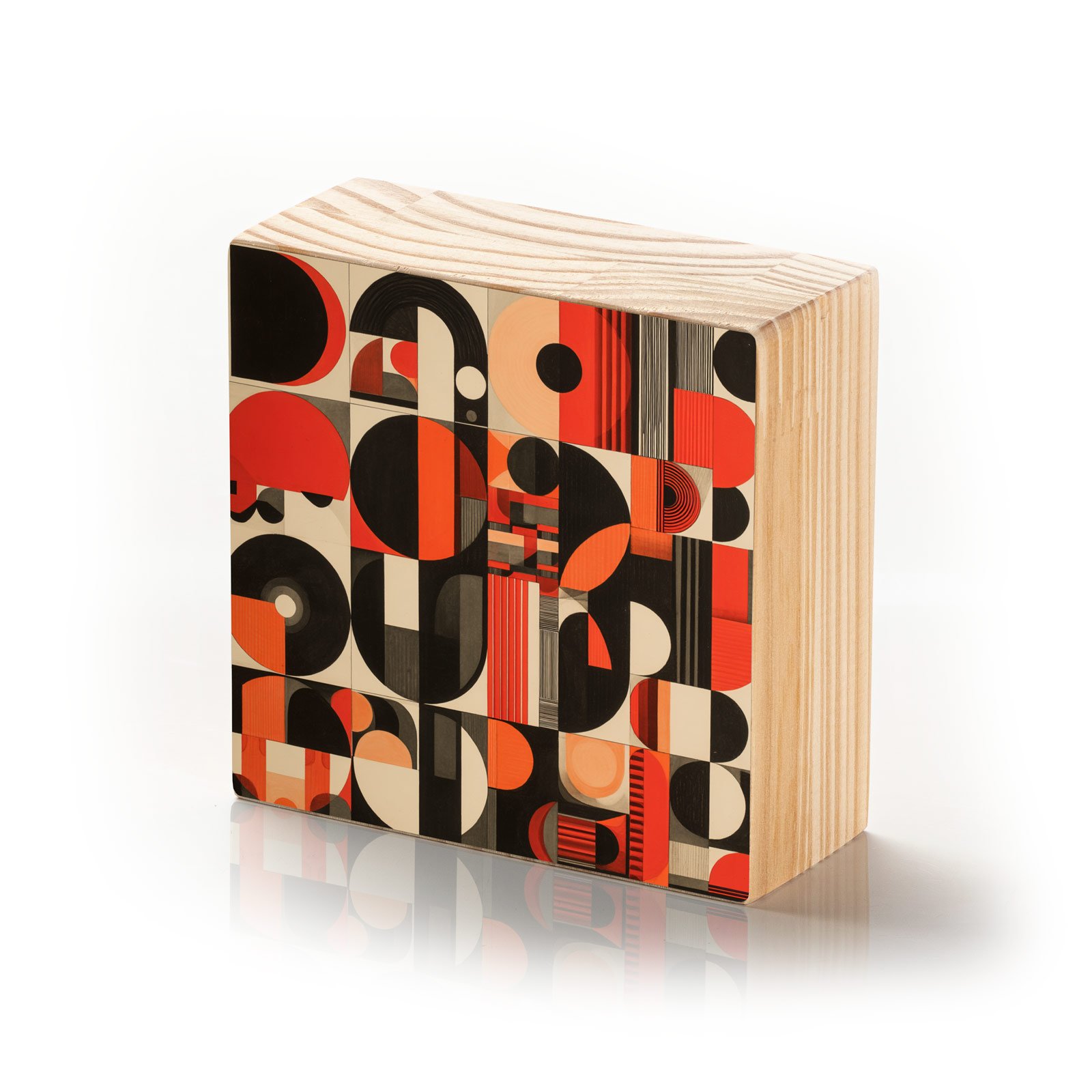 Um mosaico de formas que pulsa em vermelho, preto e bege. O Totem Decorativo “Frequência Urbana” da Linha Square, traduz a vibração das cidades modernas, o ritmo dos dias corridos e a beleza do caos organizado em traços precisos e cores ousadas.