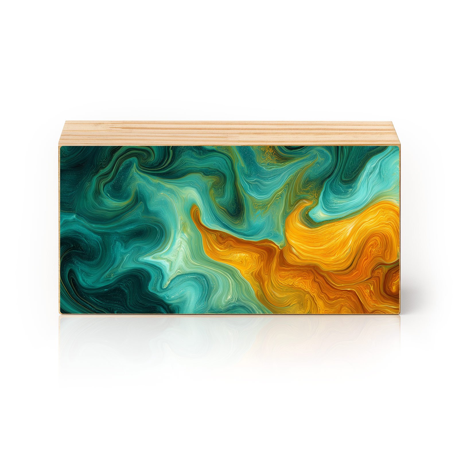 “Fúria e Calma” da Linha Horizon, é a representação do contraste essencial entre a força e a serenidade. O encontro entre tons intensos de dourado flamejante e verdes oceânicos cria uma dança vibrante de emoções. Essa peça captura a dualidade do viver: a energia que nos move e a paz que nos ancora.