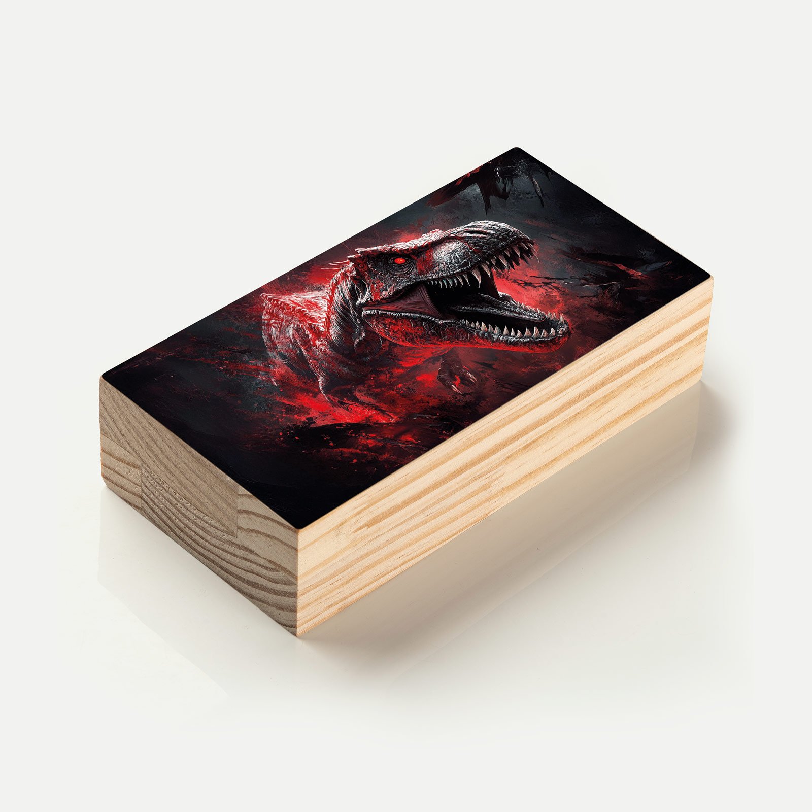 Adicione intensidade e presença à sua decoração com o Totem Decorativo da Linha Horizon ‘Fúria Jurássica’. Com uma arte vibrante e impactante, a peça retrata um dinossauro feroz em meio a uma explosão de cores vermelhas e negras, transmitindo energia e imponência. Ideal para quem busca um elemento decorativo que seja ao mesmo tempo ousado e artístico.