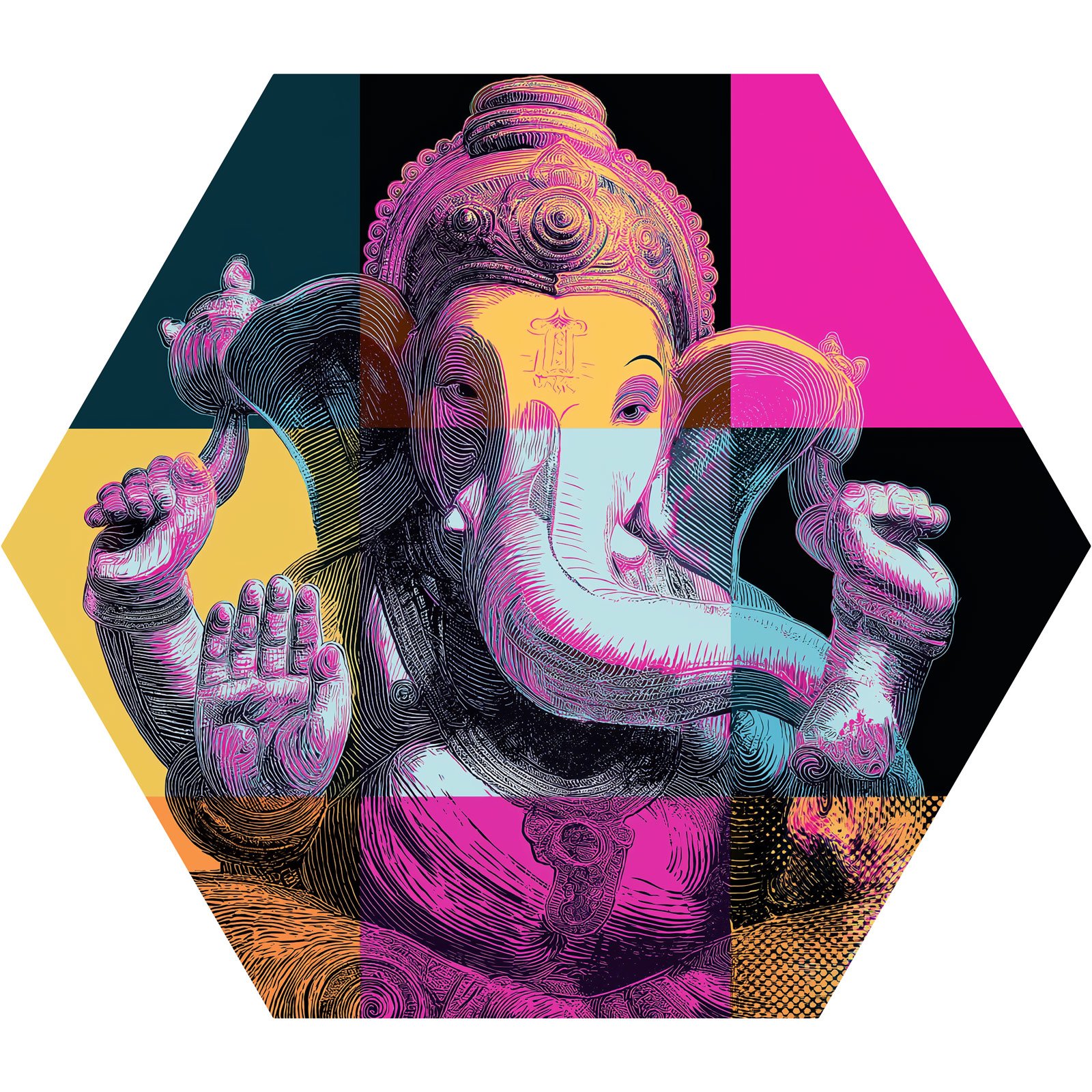 Sabedoria, sorte e estilo. O Totem Decorativo “Ganesha Pop” da Linha Hezag, traz o deus hindu da prosperidade reinterpretado com cores intensas e blocos gráficos modernos. Uma fusão entre tradição e atitude urbana, ideal para quem deseja atrair boas energias com um toque ousado e contemporâneo.