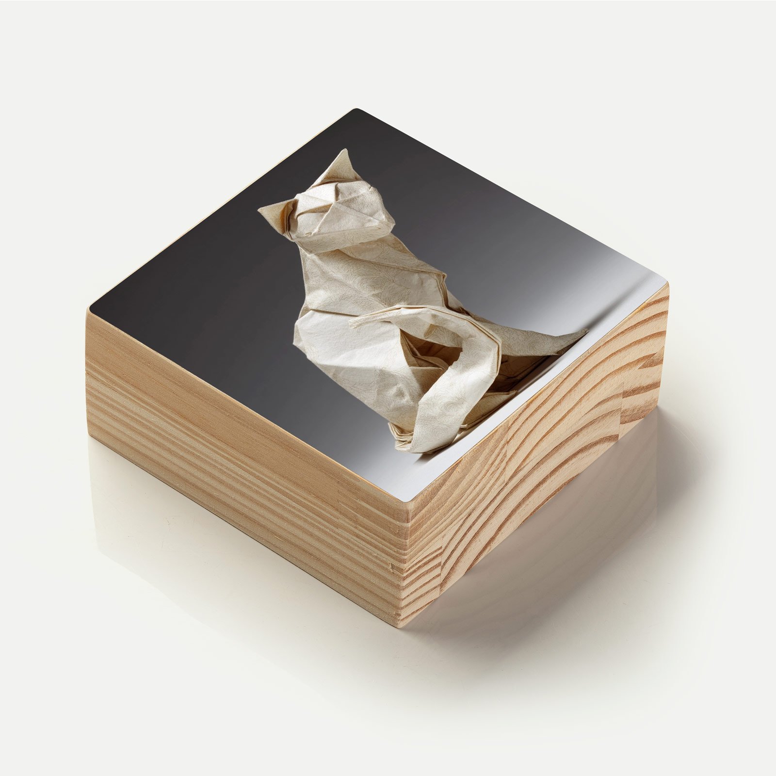 Silencioso, atento e cheio de mistério, o “Gato de Origami” da Linha Square, observa o mundo com elegância sutil. Suas dobras delicadas formam uma figura serena que evoca sabedoria tranquila, introspecção e charme contemplativo.