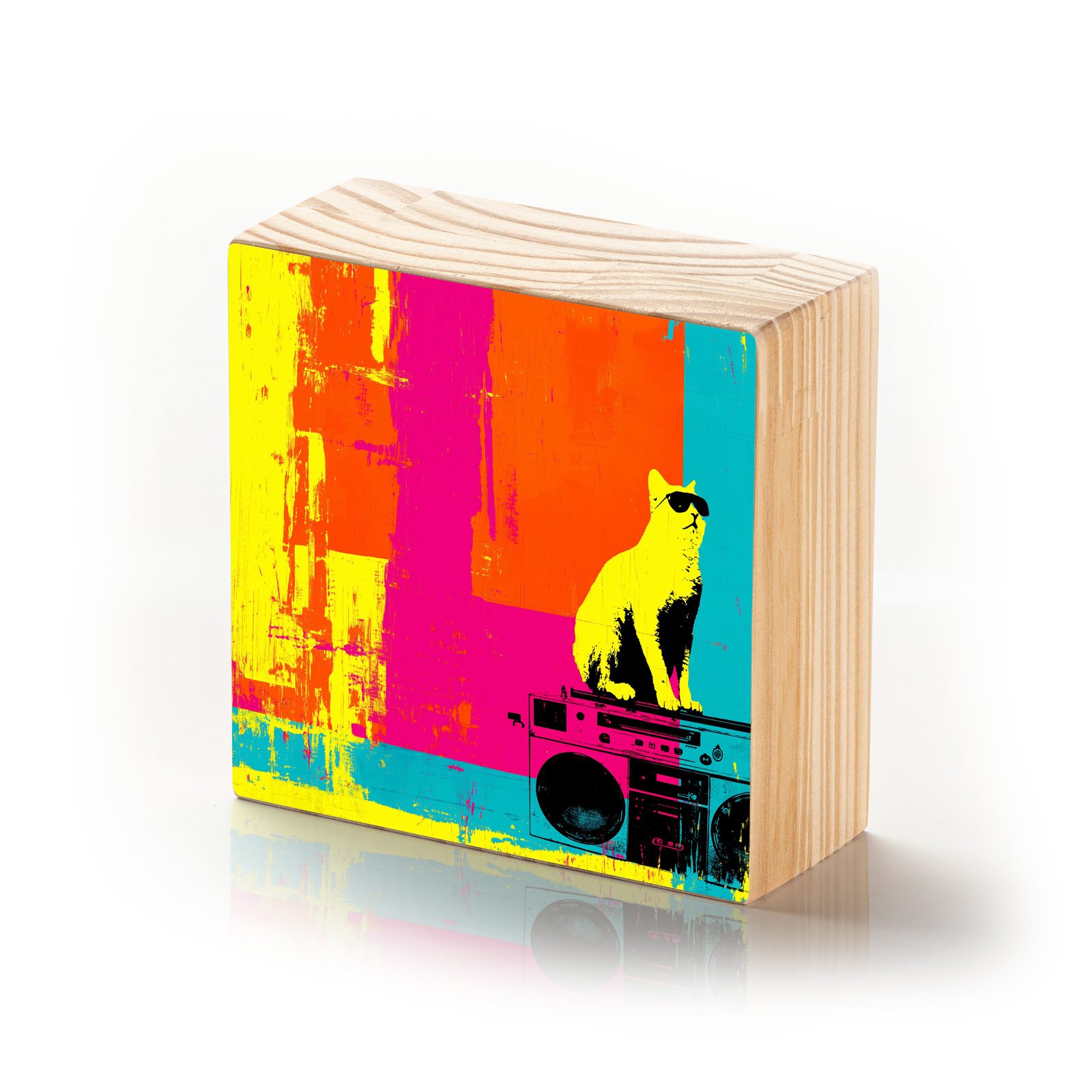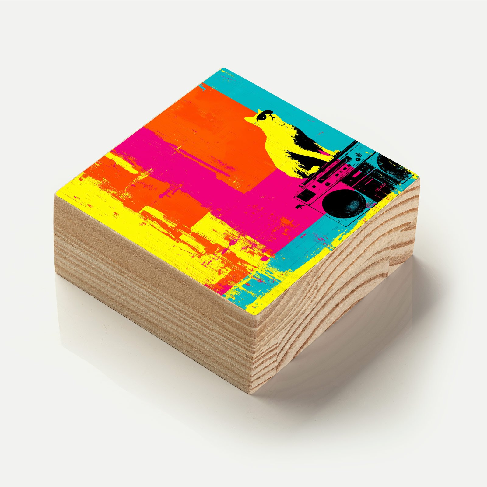 Atitude é não se importar com as regras. O Totem Decorativo “Gato do Som” da Linha Square, traz um visual vibrante e urbano: um gato estiloso de óculos escuros em cima de um boombox vintage, estampado sobre um fundo em cores ácidas. Uma peça que transmite irreverência, liberdade e a batida própria de quem vive no seu próprio ritmo.