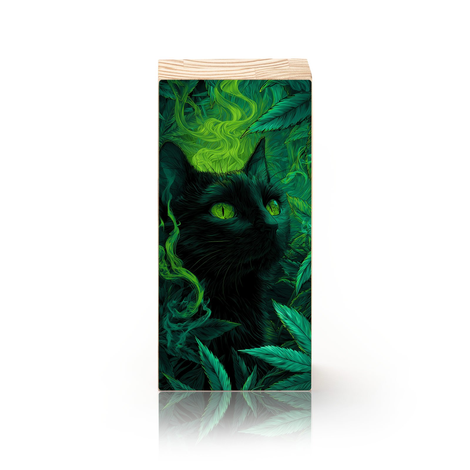 O “Guardião da Floresta” é um convite ao mistério e à espiritualidade. A figura do gato negro, envolto por folhas e névoa verdejante, evoca a simbologia de proteção, intuição e energia mágica. Seus olhos brilhantes transmitem sabedoria e mistério, como se guardassem segredos ancestrais da natureza.