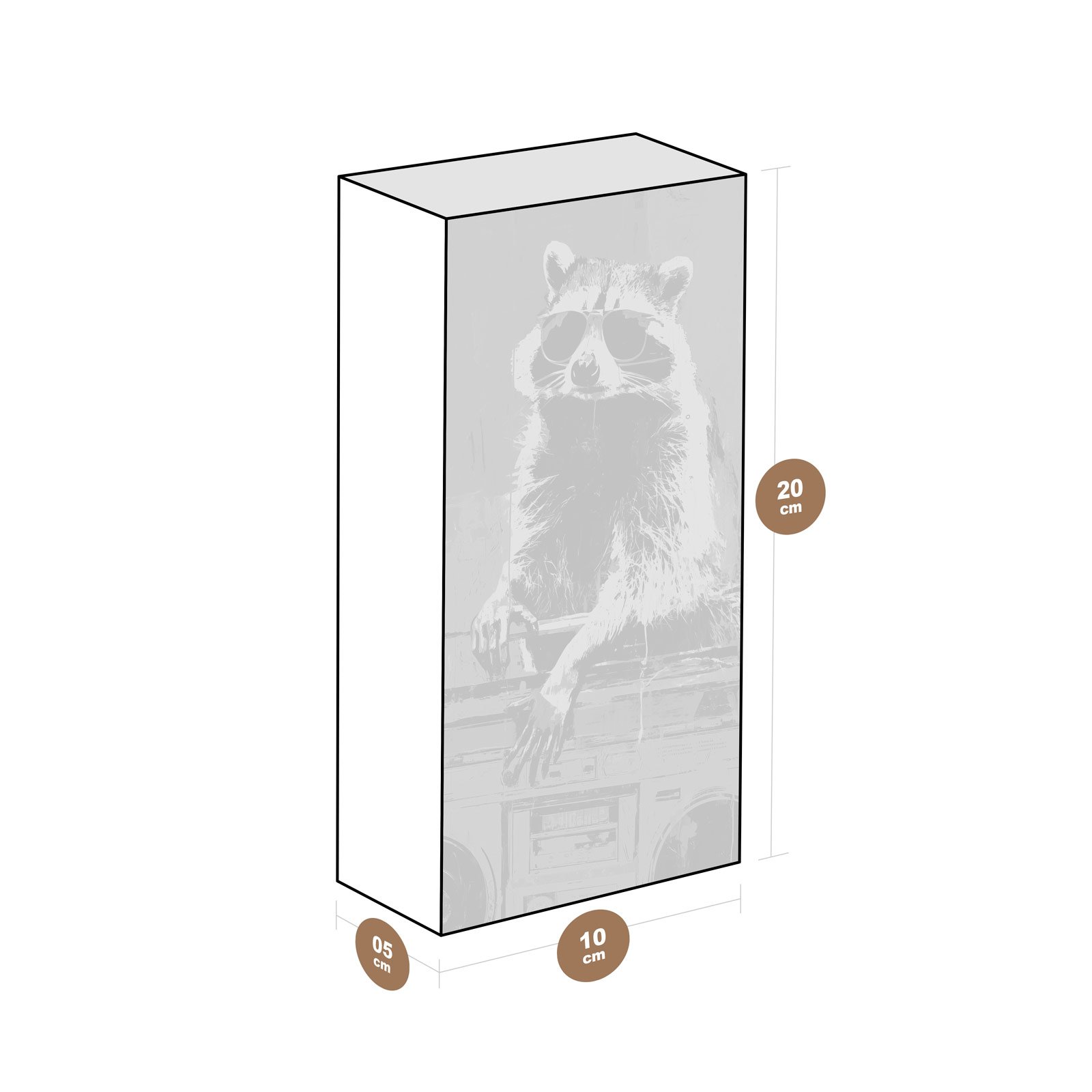 Quem disse que estilo e irreverência não podem andar juntos? O Totem Decorativo “Guaxinim do Som” da Linha Vert, traz esse personagem icônico e carismático estampado sobre um background vibrante e urbano. Com seu rádio retrô e óculos escuros, ele representa liberdade, atitude e uma alma que dança fora do ritmo comum.