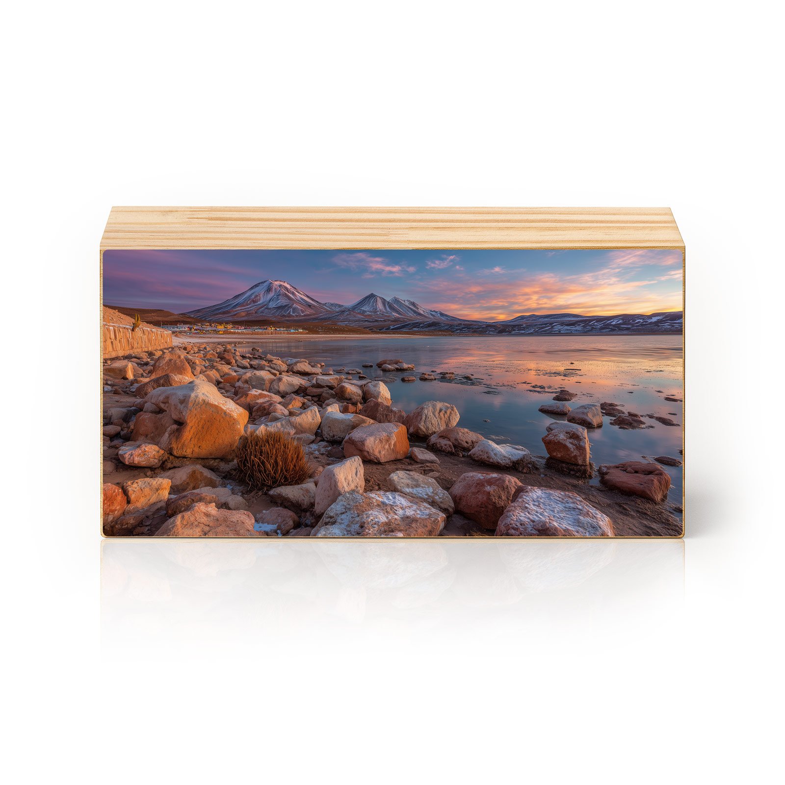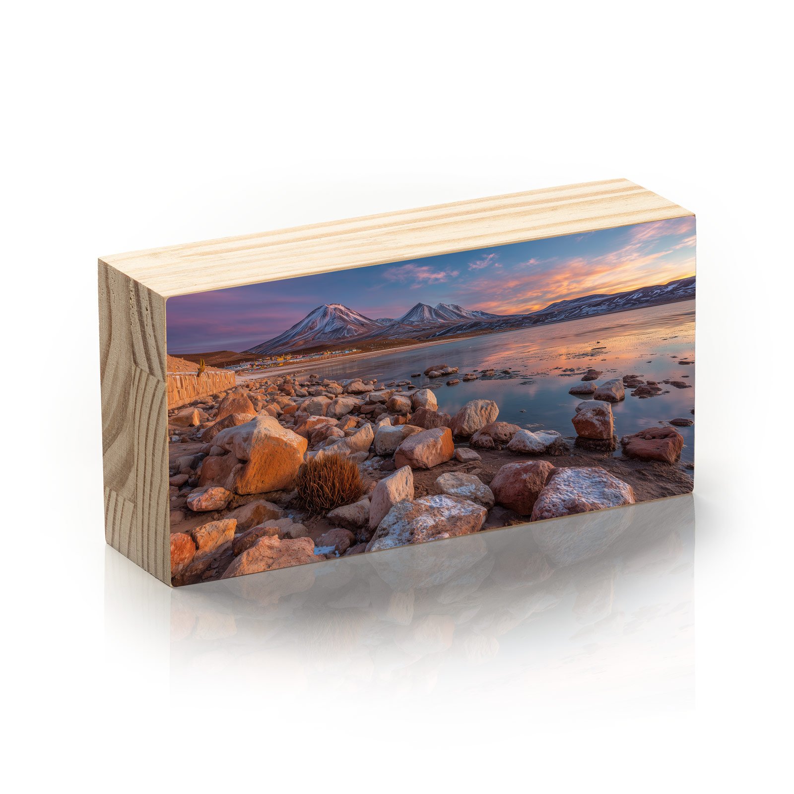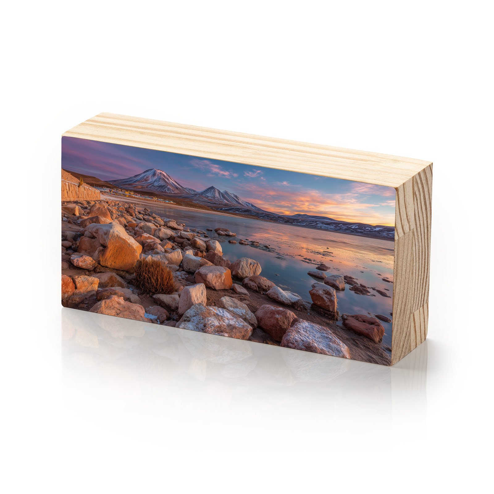 Entre rochas avermelhadas e reflexos dourados, “Horizonte Andino” captura a imponência serena das montanhas e lagos do deserto chileno. Uma obra que transmite silêncio, contemplação e a imensidão da natureza intocada, convidando o olhar a viajar sem sair do lugar.
