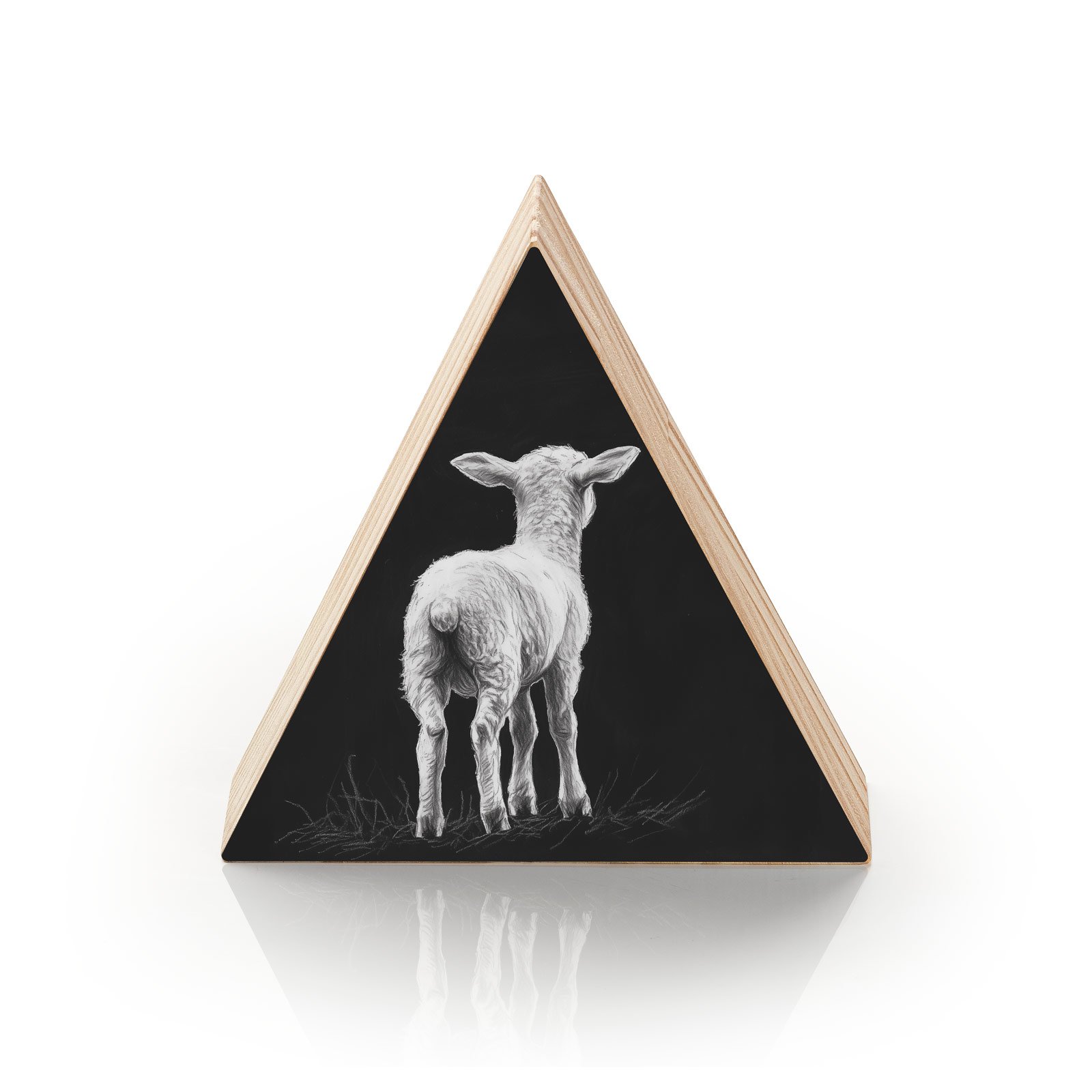 Contemple a pureza e a paz do Totem Decorativo “Inocência em Silêncio” da Linha Alma da Natureza, uma peça que transmite calma, simplicidade e introspecção. A imagem da ovelha em traço artístico realista, voltada de costas sob um fundo negro profundo, evoca proteção, inocência e a beleza de quem confia no caminho.