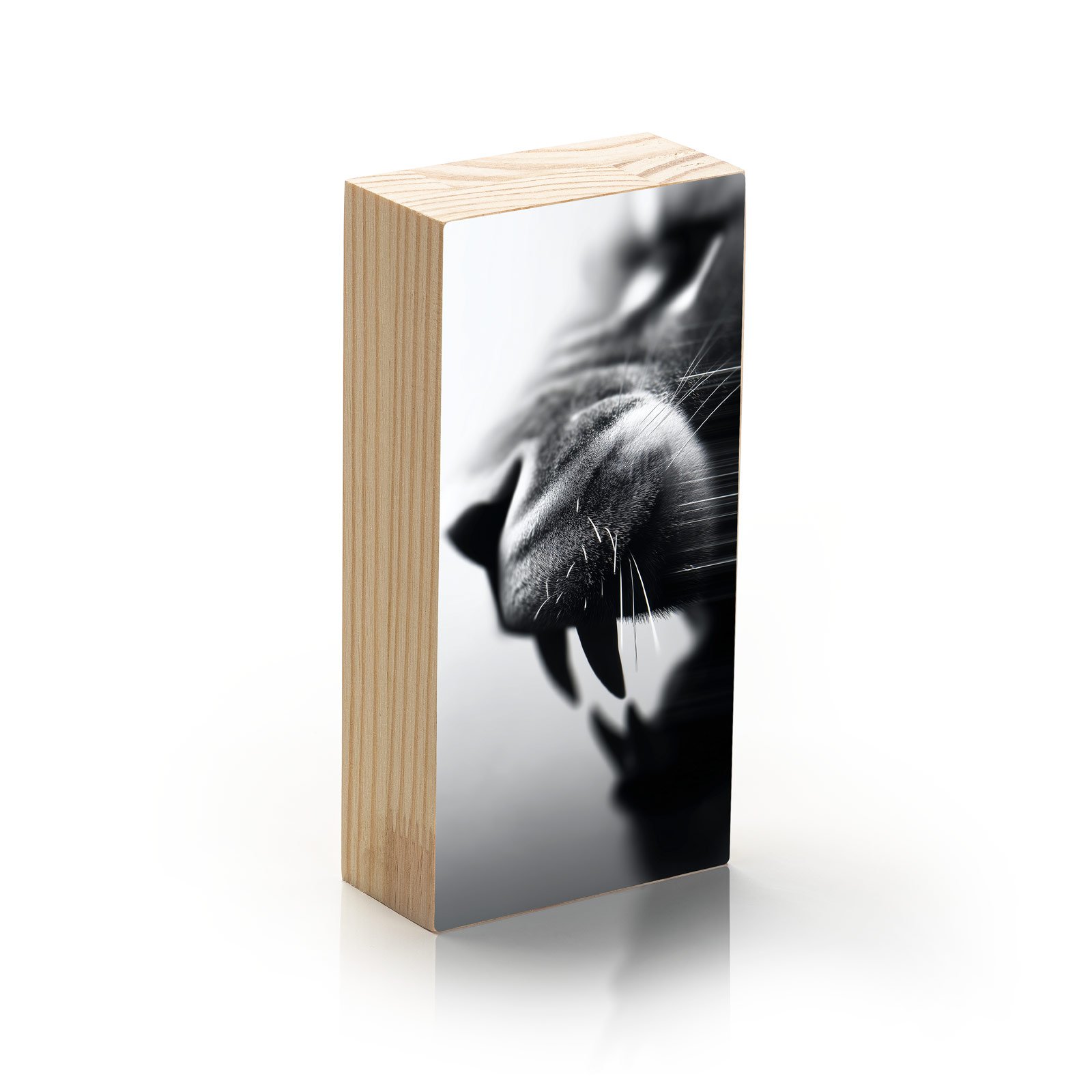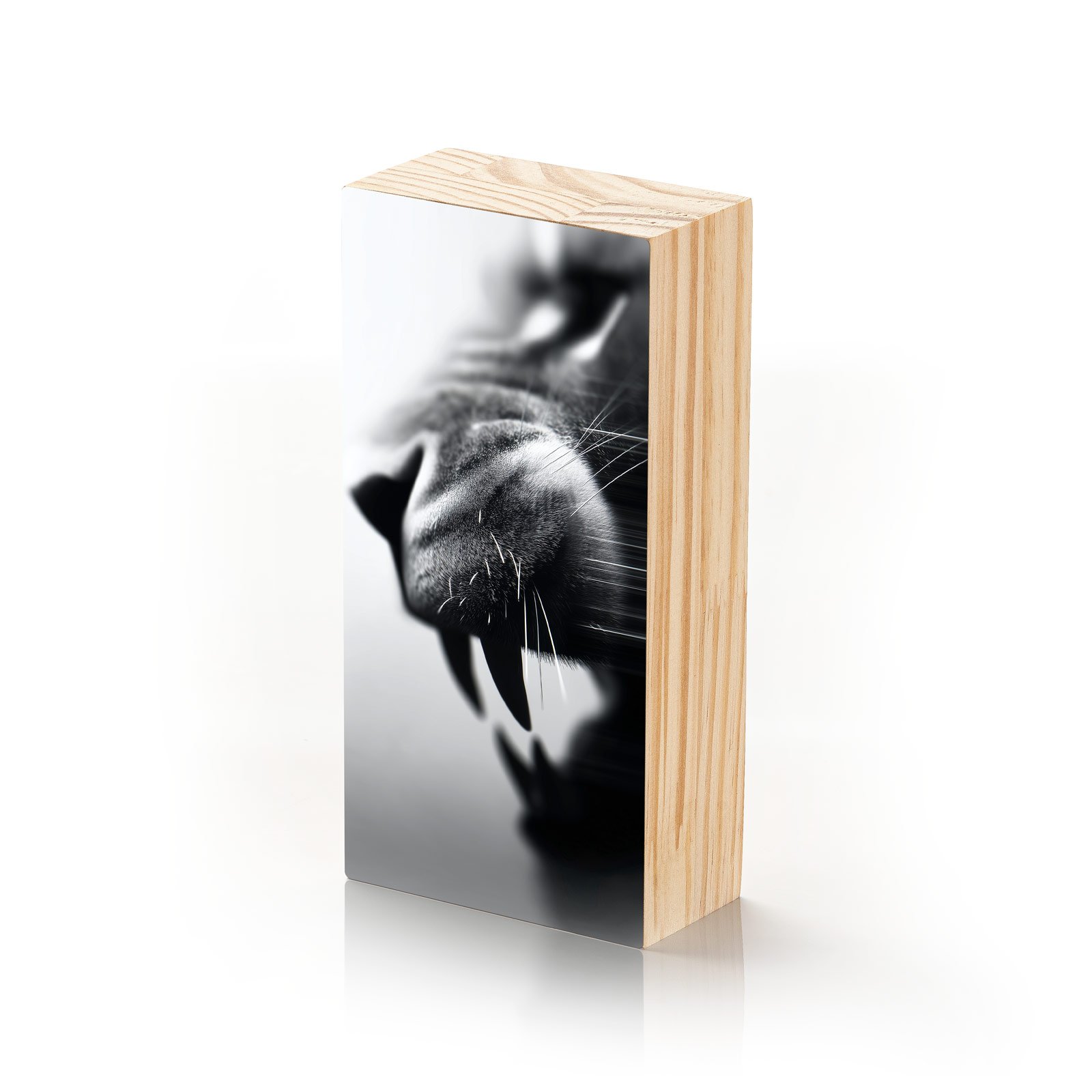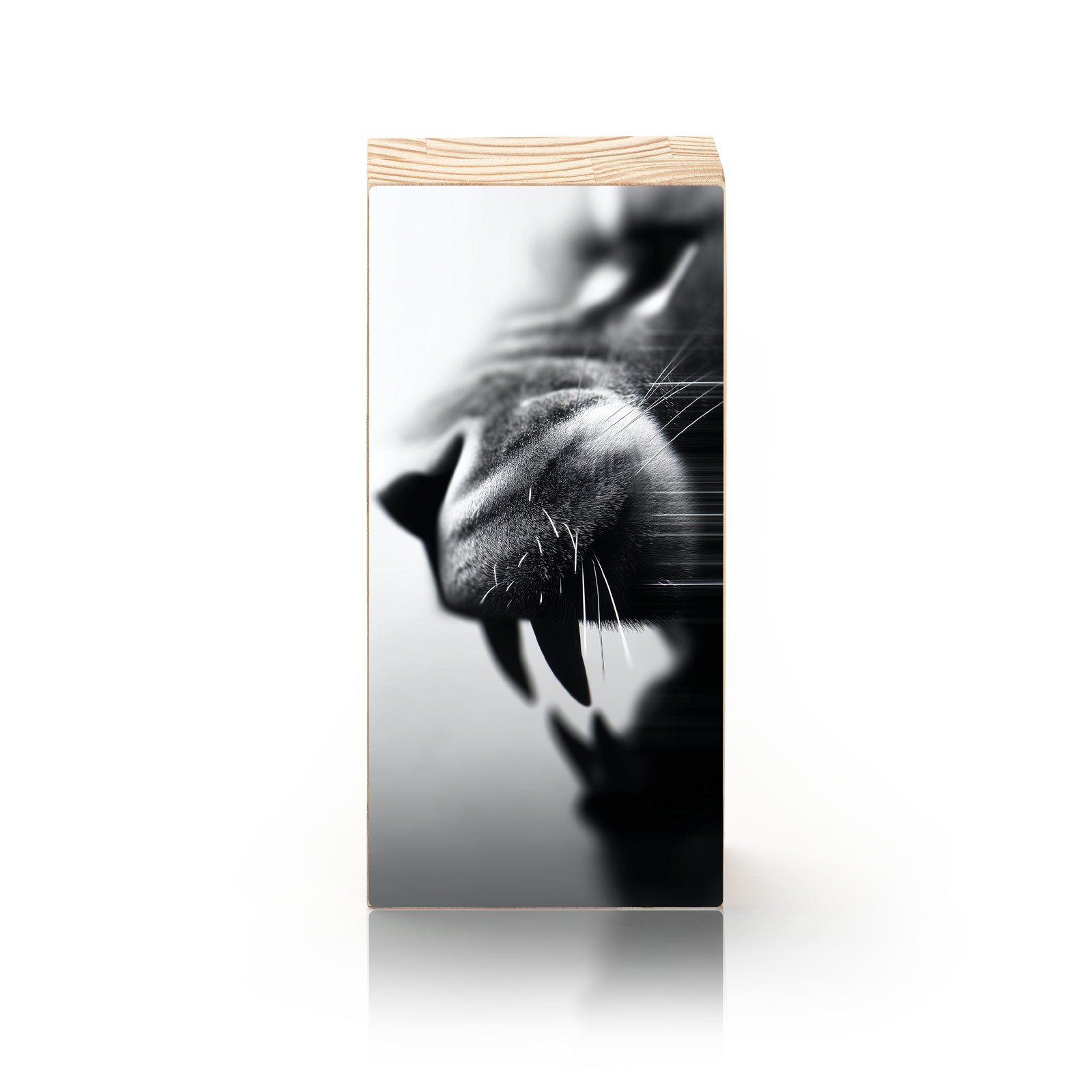 O rugido não precisa ser alto para ser ouvido. O Totem Decorativo “Instinto em Silêncio” da Linha Vert, captura o instante anterior ao ataque um momento de tensão, foco e presença absoluta. A imagem da mandíbula felina entre sombras em preto e branco revela o poder contido, pronto para agir.