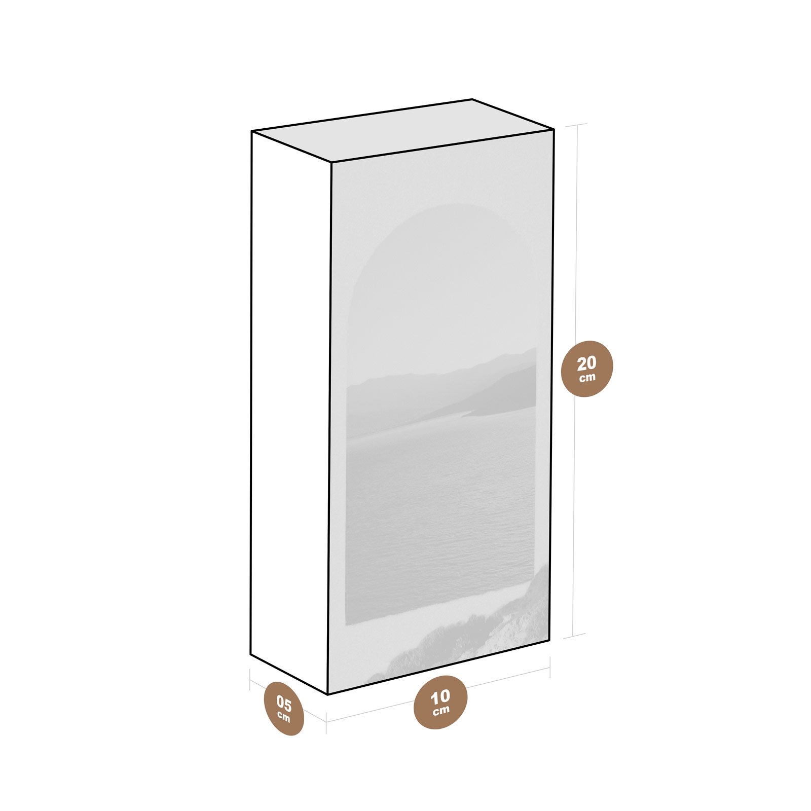 - Dimensões: 10 cm (largura) x 20 cm (altura) x 6 cm (profundidade);