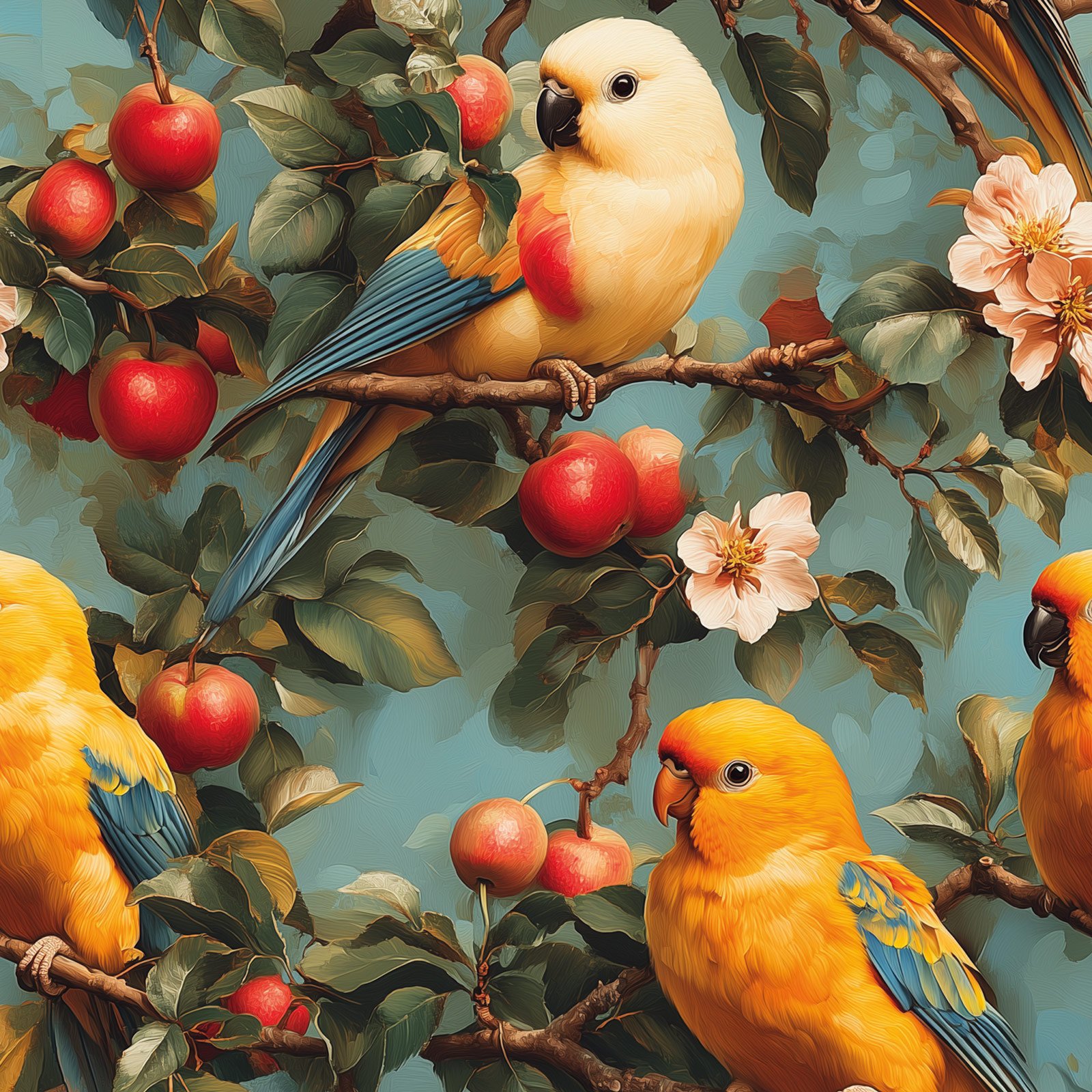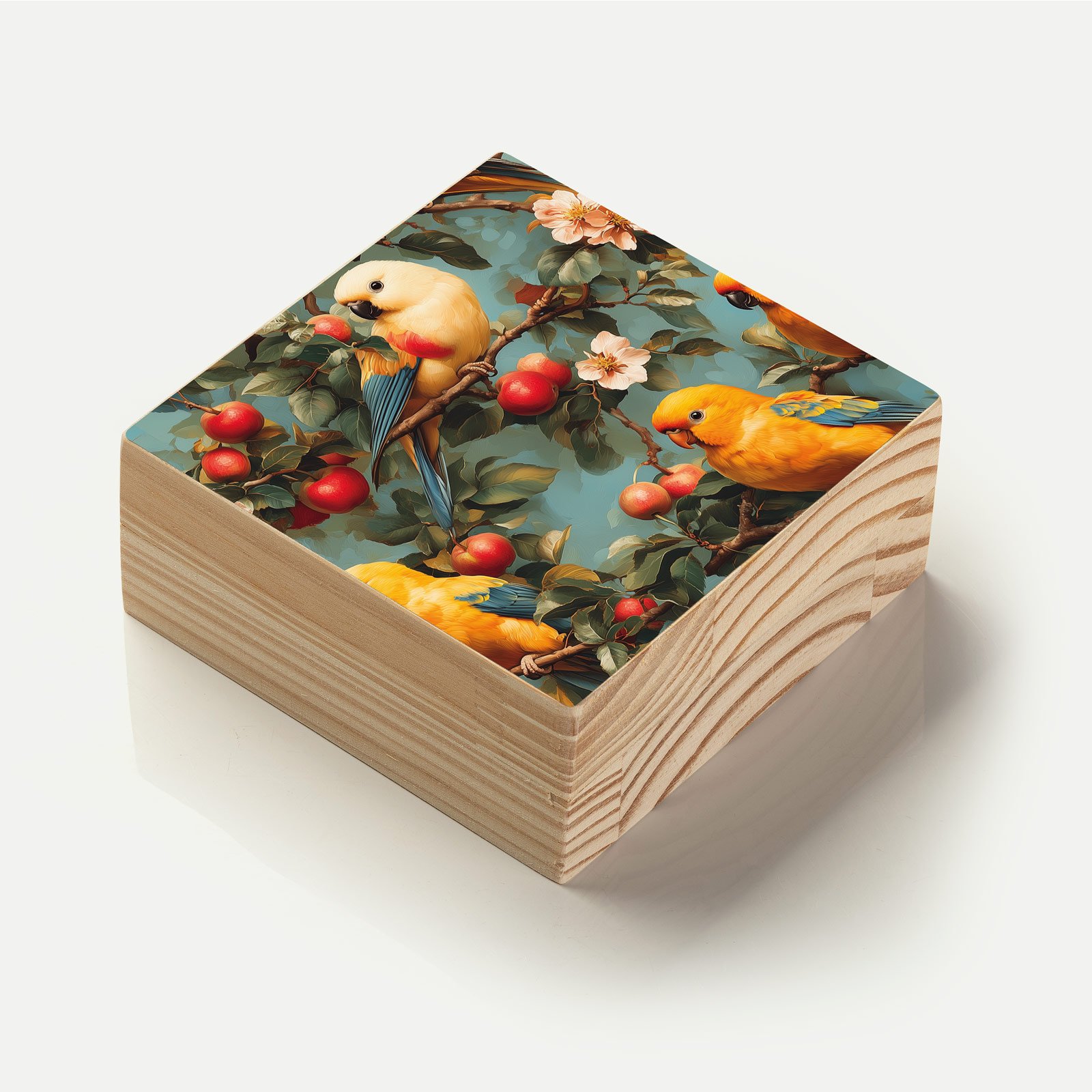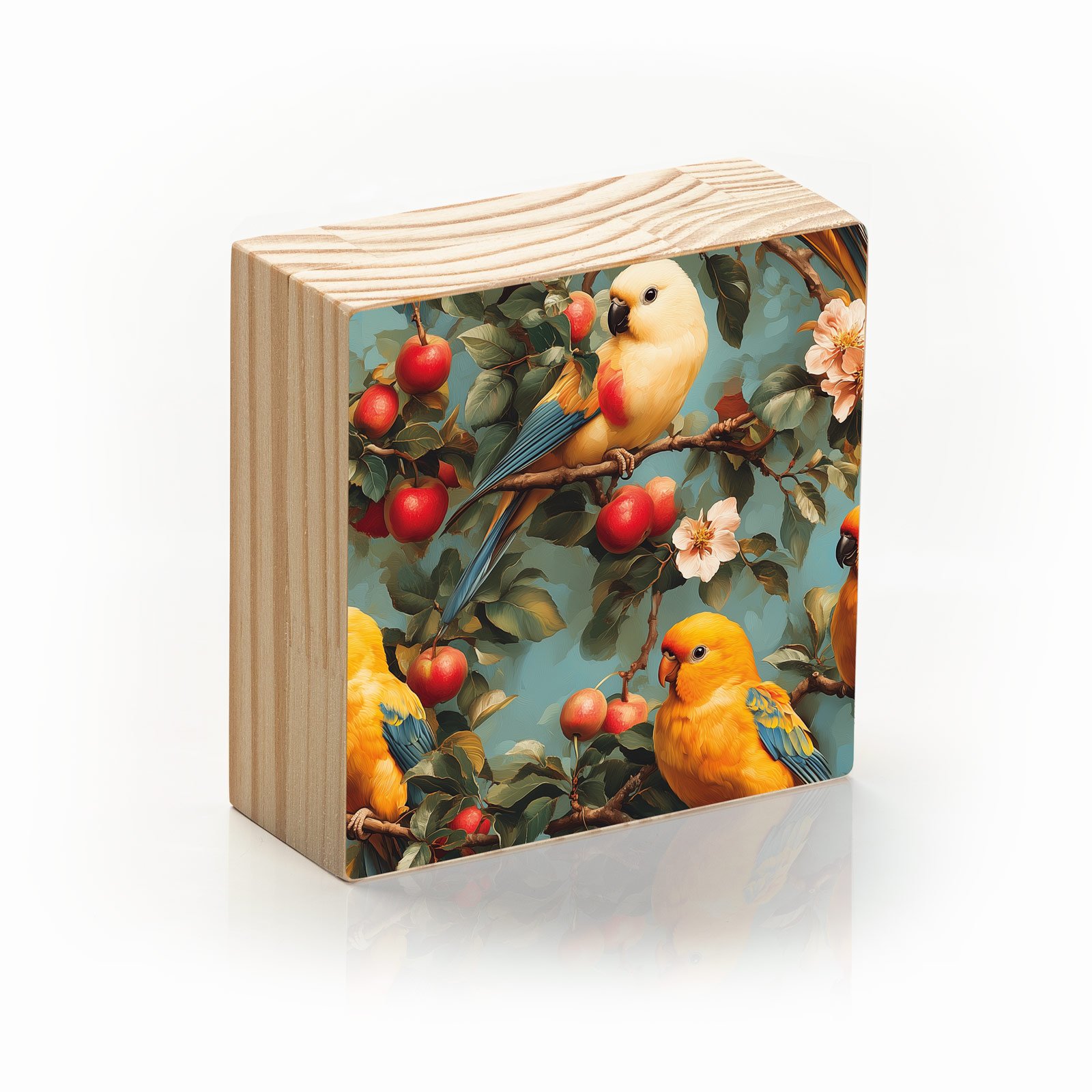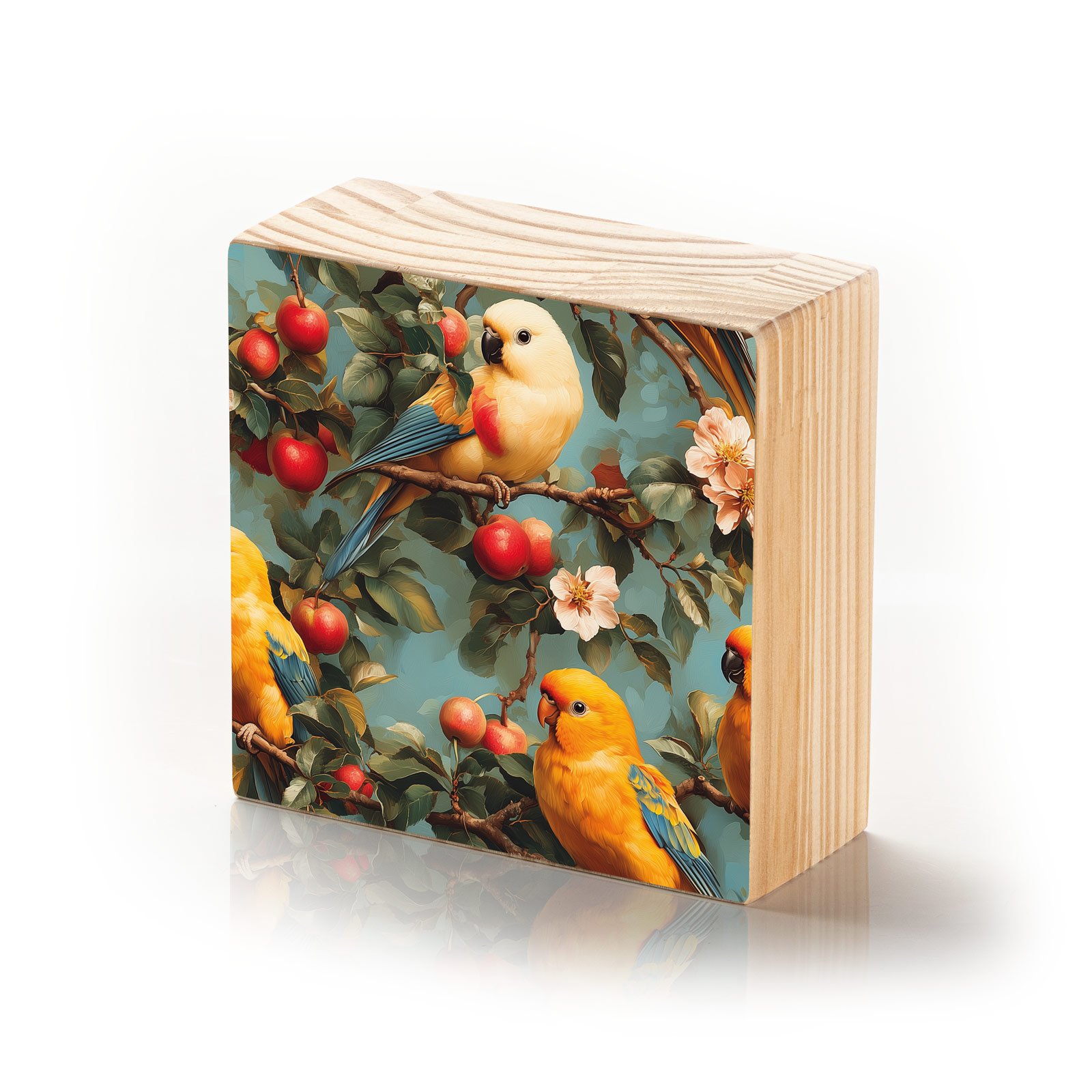 Celebre a alegria e o encanto da natureza com o Totem Decorativo “Jardim dos Pássaros” da HomeTotem. A peça retrata um vibrante jardim repleto de pequenos papagaios coloridos e maçãs vermelhas, trazendo leveza, vida e poesia para qualquer ambiente.