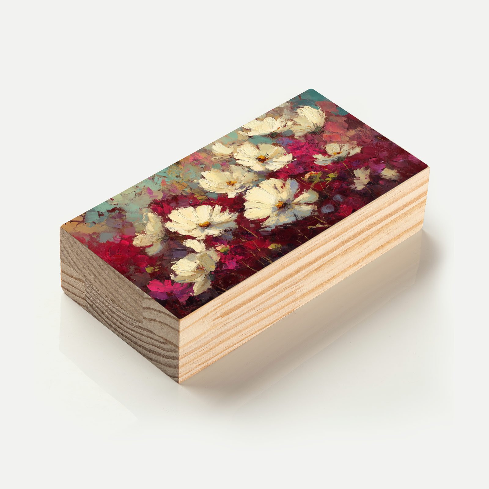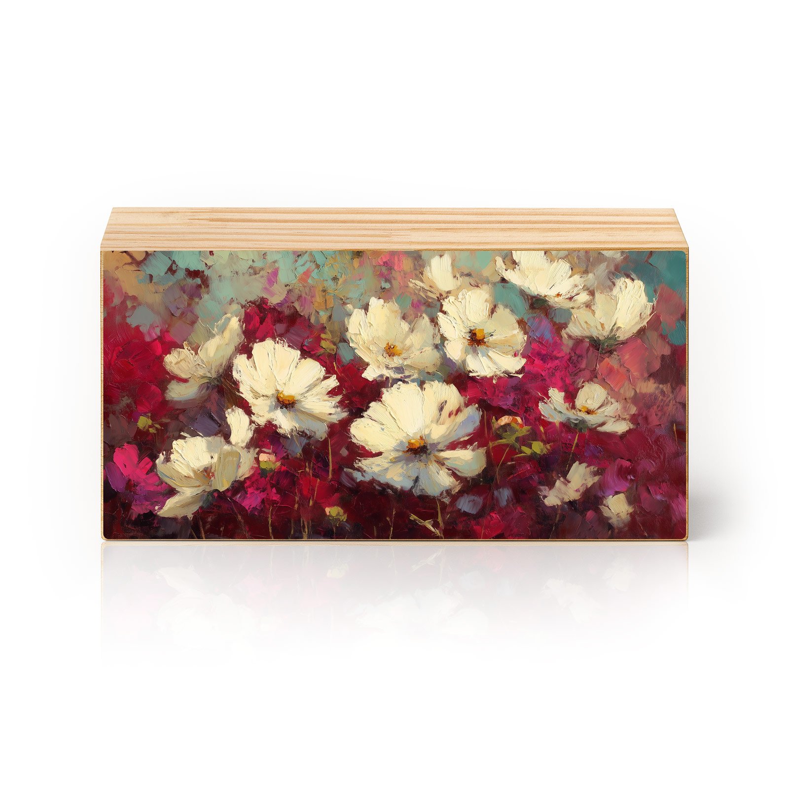 Um campo vibrante onde a delicadeza floresce em meio ao caos de cores. O Totem Decorativo “Jardim Intenso” da Linha Horizon retrata margaridas brancas em pinceladas expressivas, rodeadas por tons exuberantes de vermelho, rosa e verde. Uma celebração da beleza efêmera e da força que floresce nos detalhes.