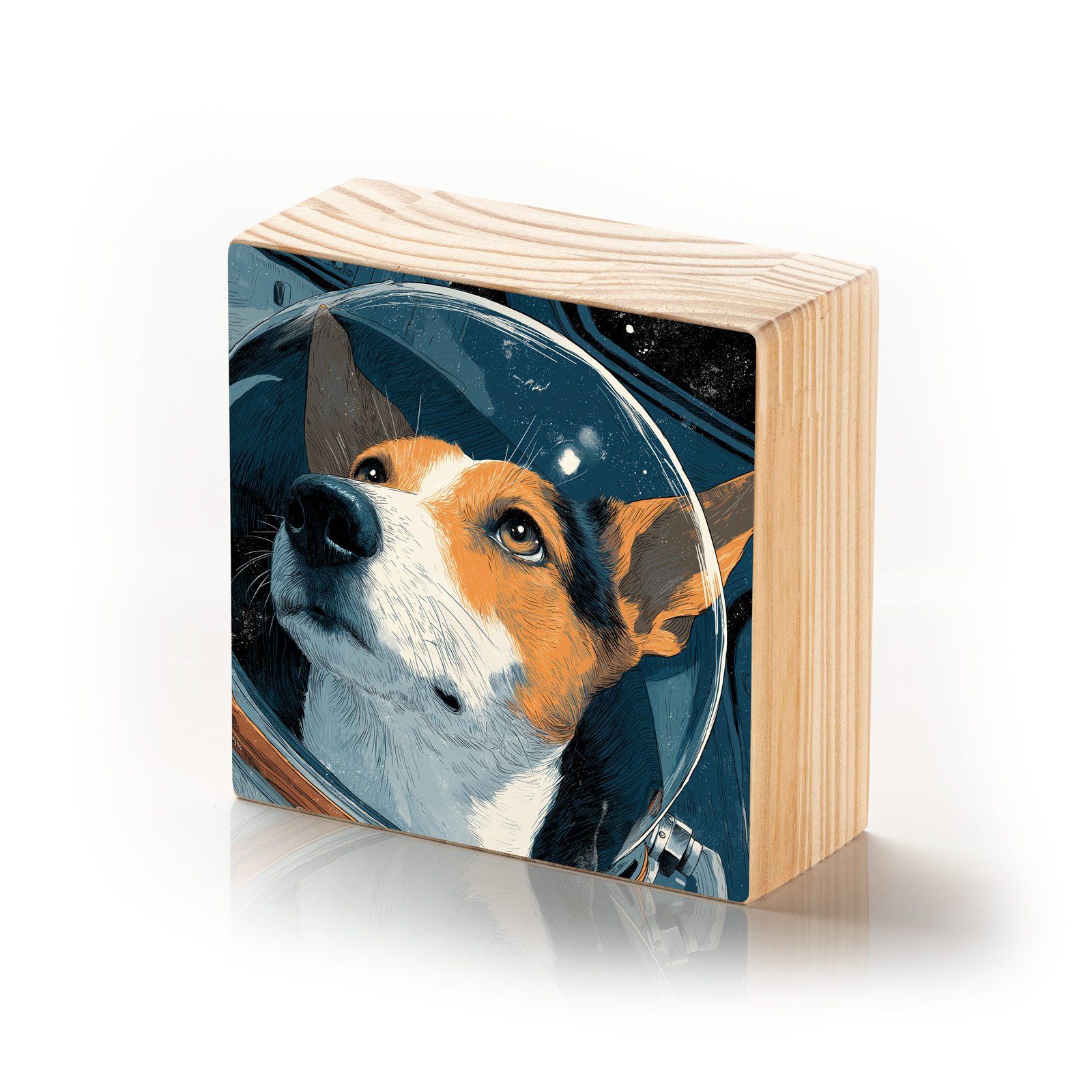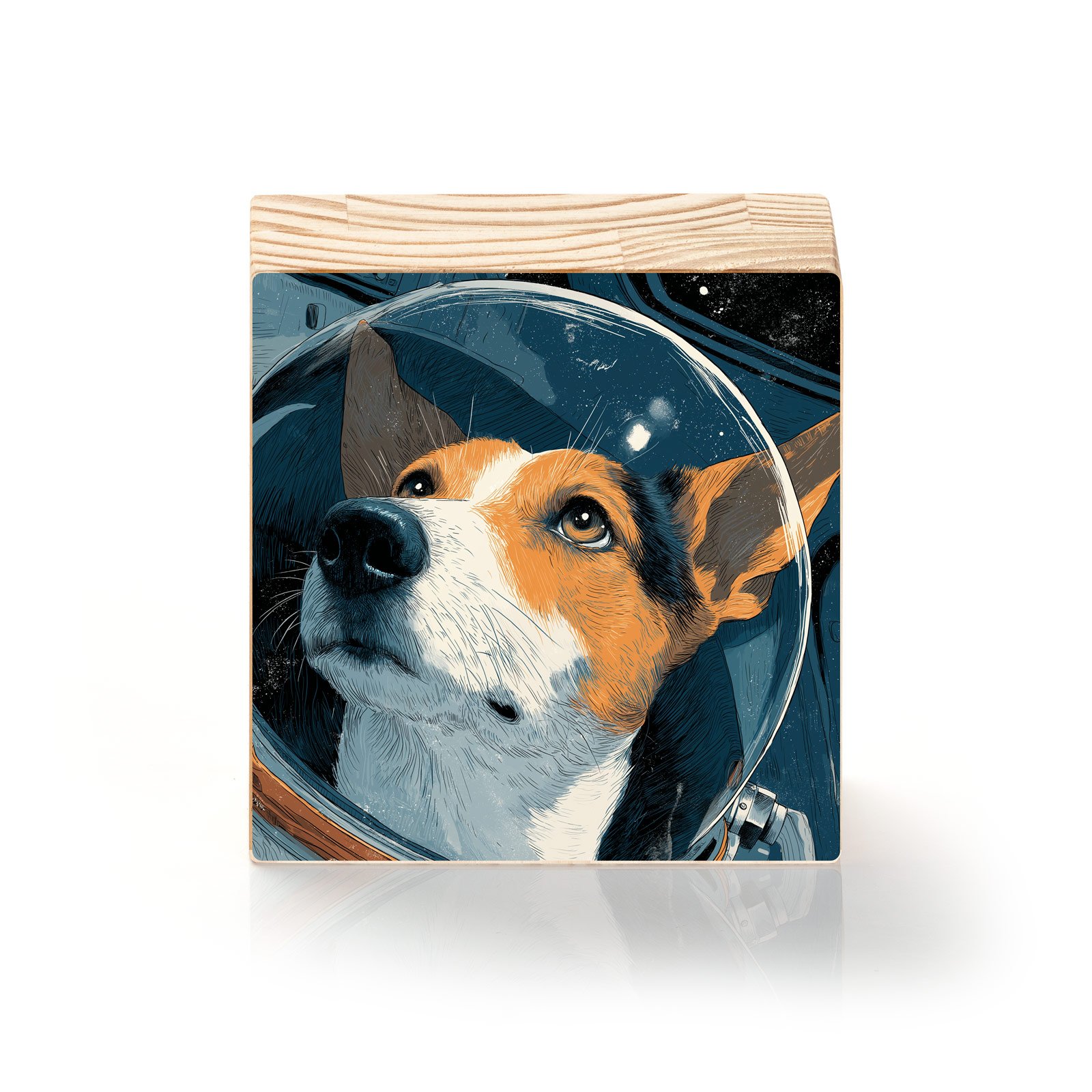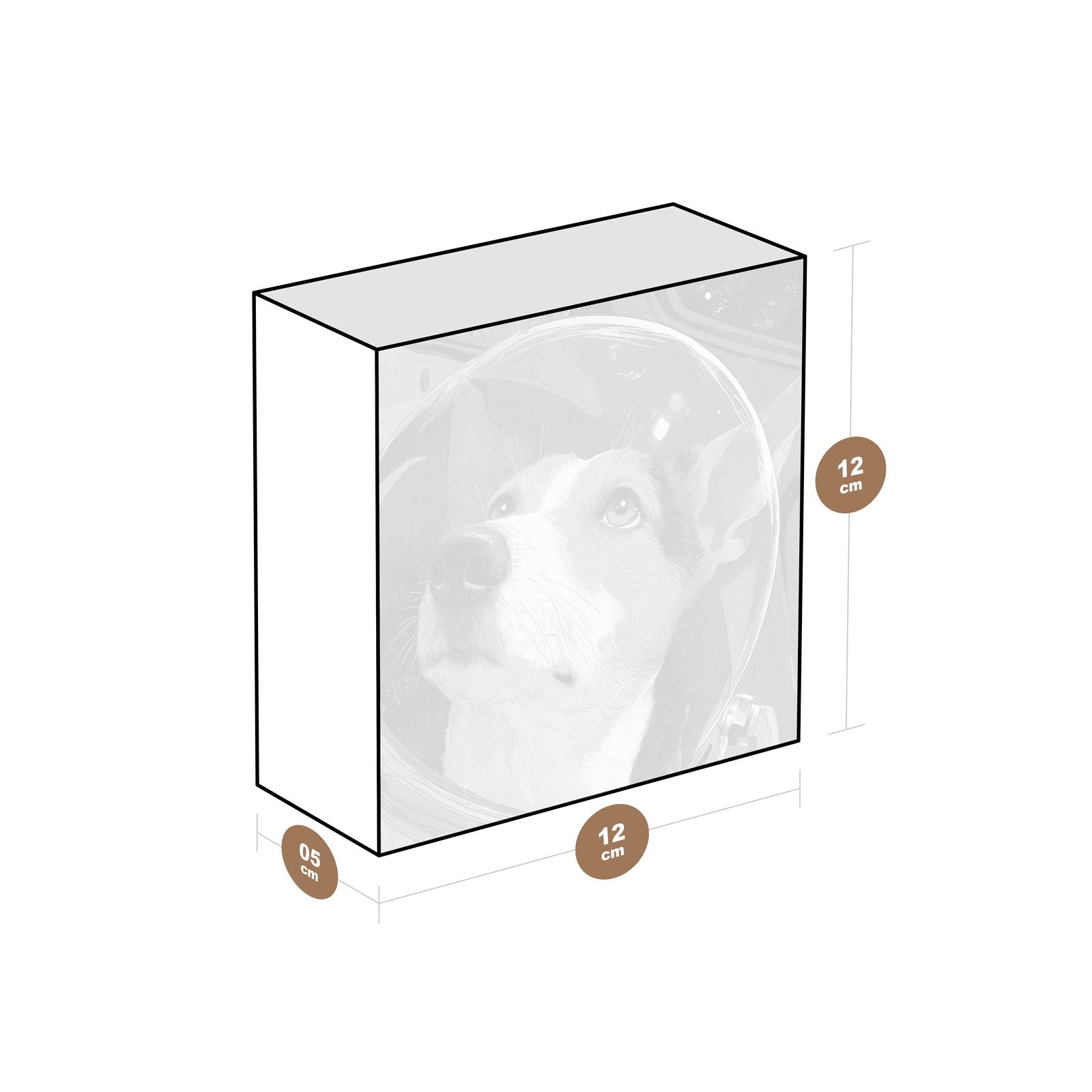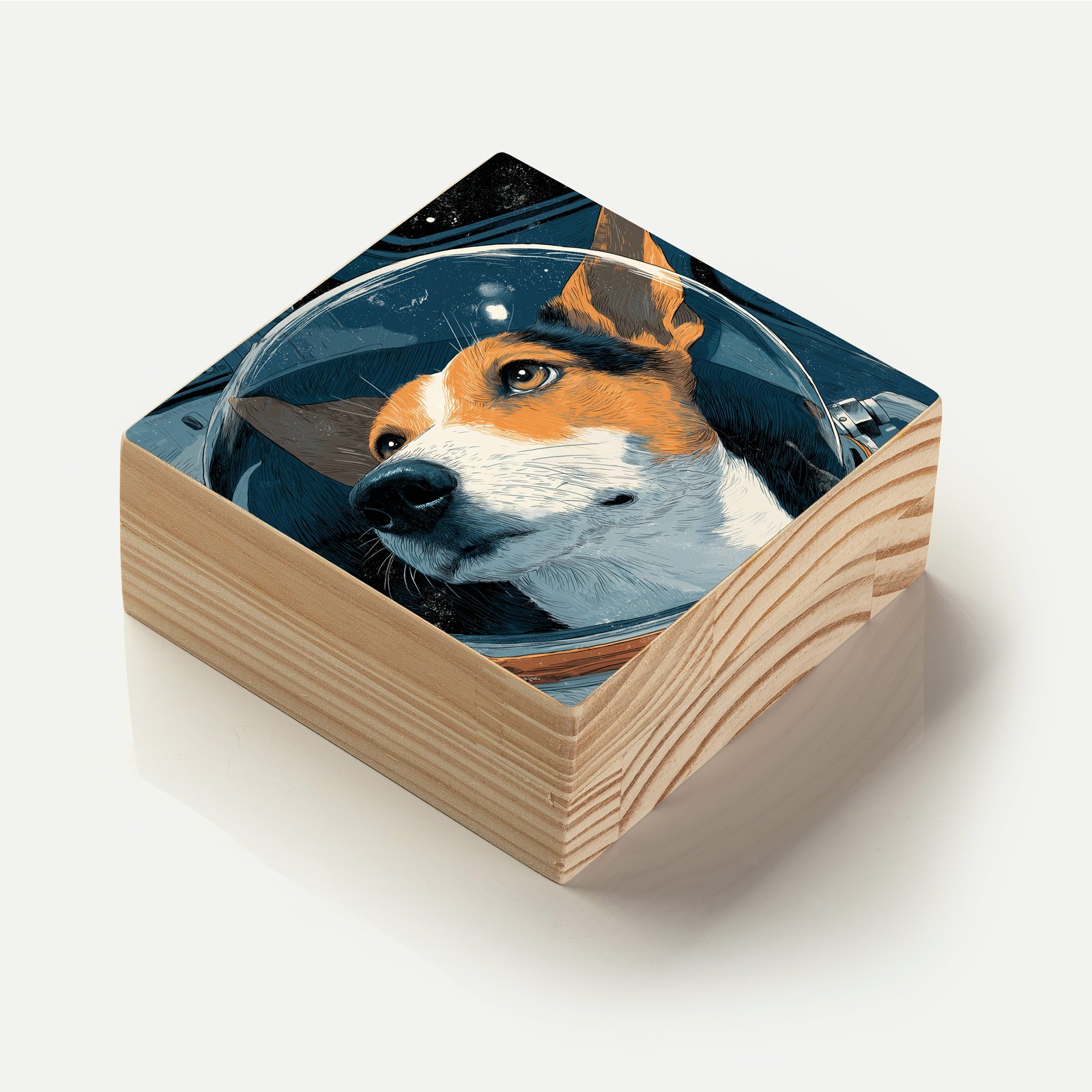 Com olhos atentos voltados ao infinito, este cão espacial homenageia a bravura de quem cruzou fronteiras celestiais antes mesmo de sabermos o que havia lá fora. “Laika 2.0” da Linha Square, é um tributo visual à lealdade, coragem e curiosidade — o espírito canino vestindo o futuro com dignidade intergaláctica.