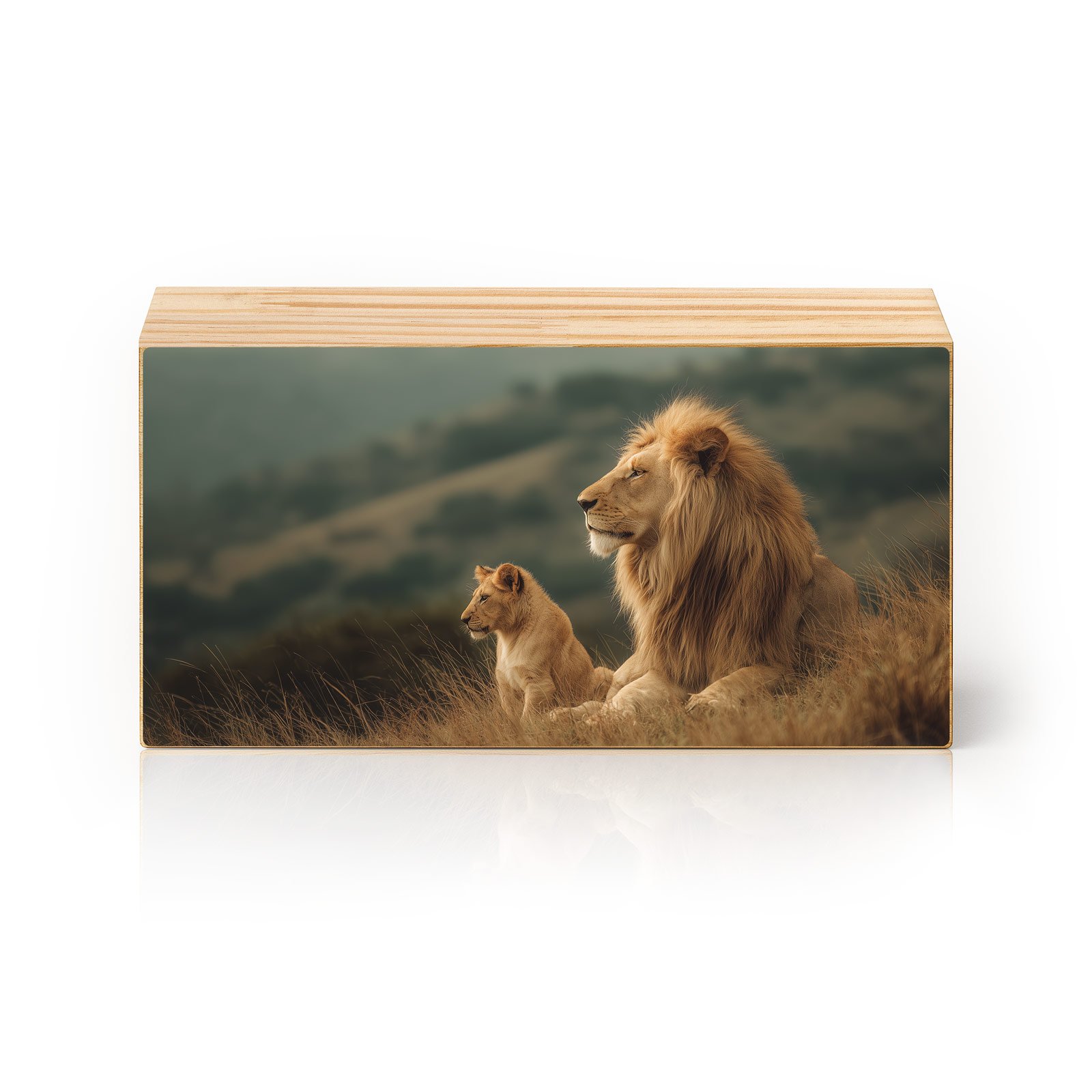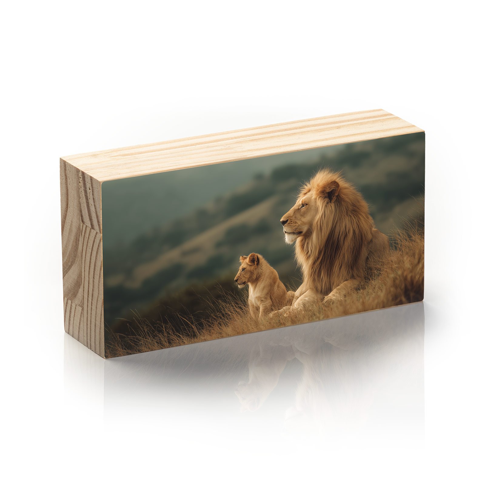 Em meio às planícies douradas da savana, “Legado do Leão” retrata a força e a ternura de um momento único entre pai e filhote. O olhar atento e sereno do leão adulto transmite majestade e proteção, enquanto o pequeno, curioso e confiante, simboliza a continuidade da vida e da coragem. É uma obra que fala sobre herança, liderança e a beleza do vínculo entre gerações.