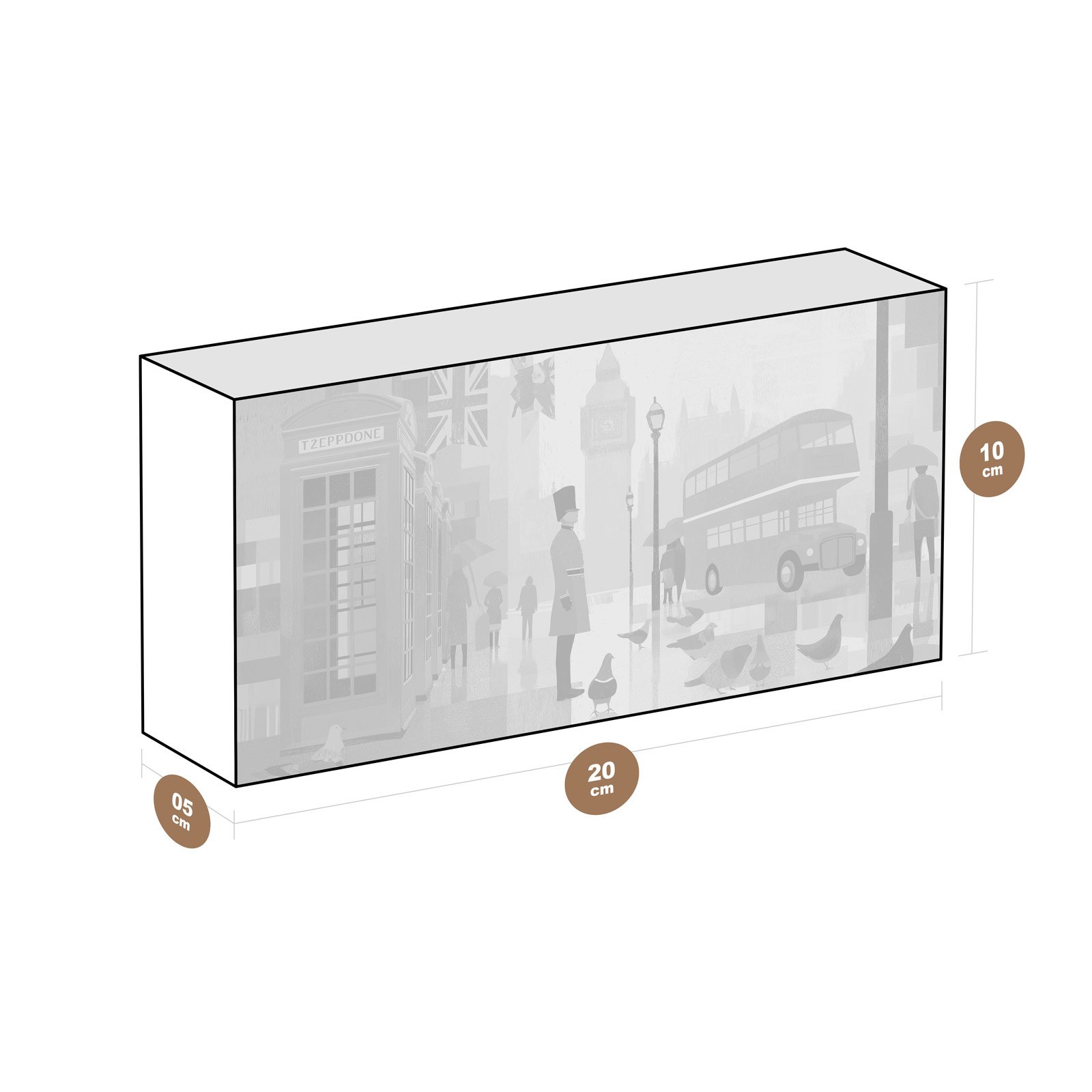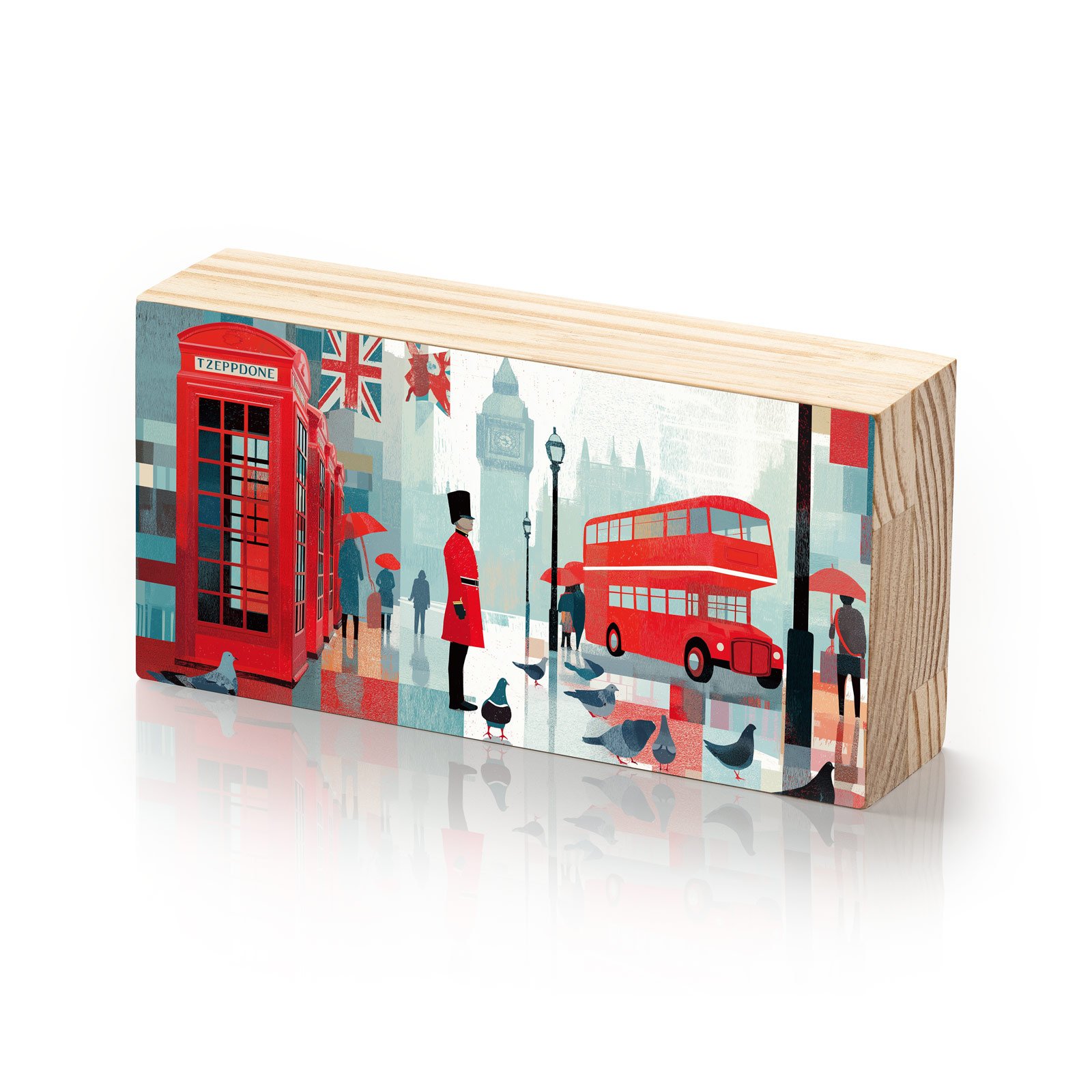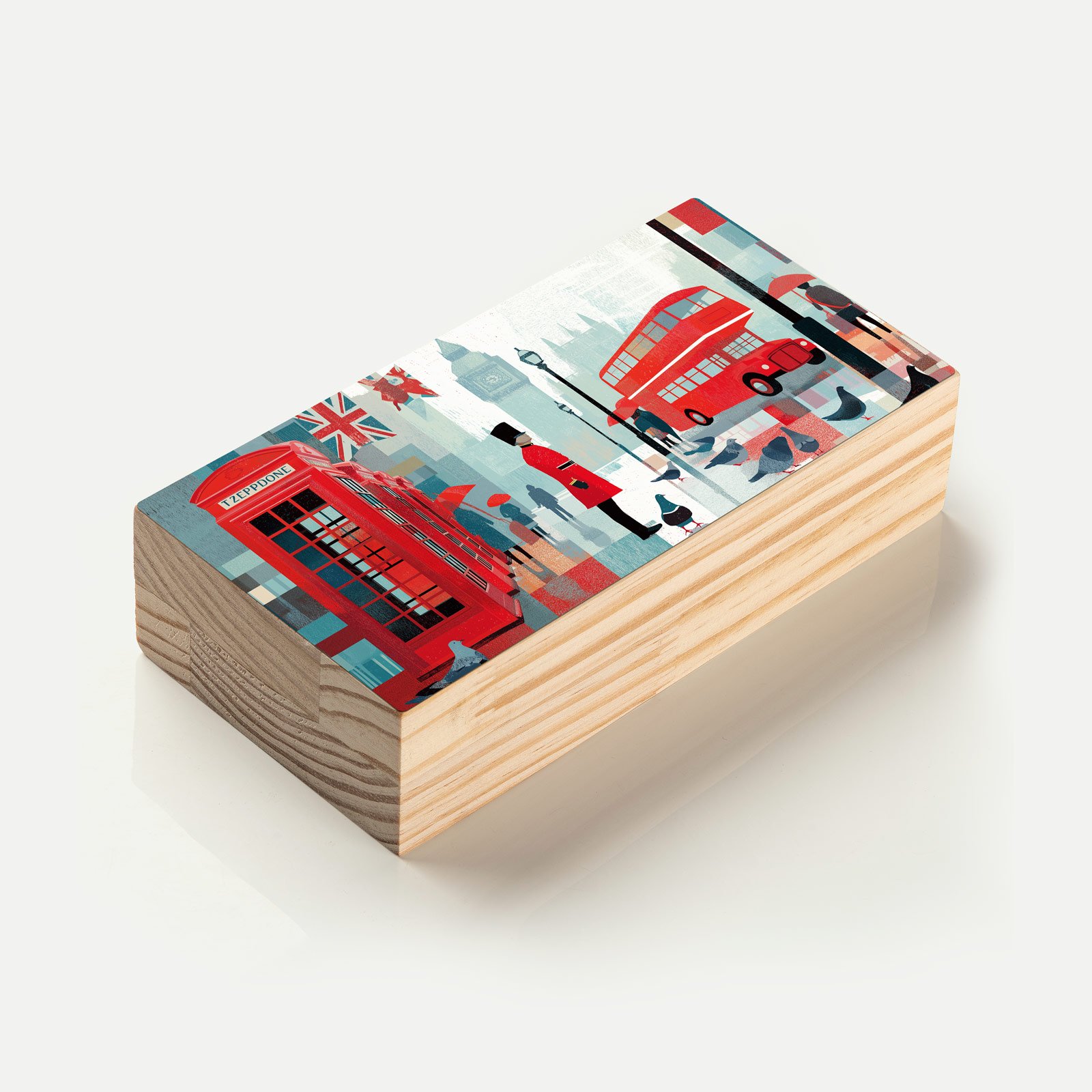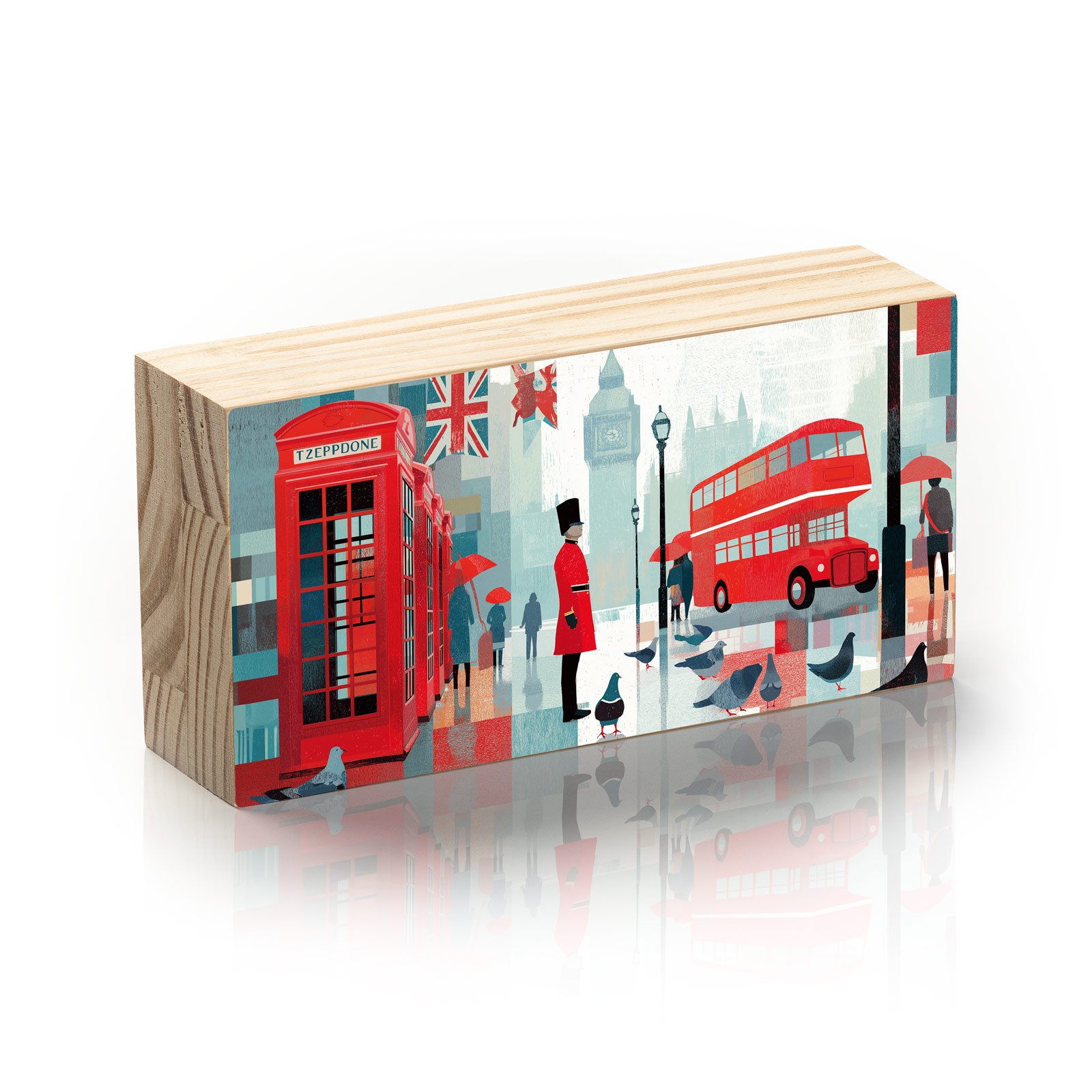 Com cores vibrantes e formas lúdicas, “Londres Pop” da Linha Horizon capta o charme da capital inglesa de forma divertida e nostálgica. A icônica cabine telefônica, o ônibus vermelho de dois andares e os guarda-chuvas espalhados pela cena nos levam direto para o coração da cidade com um toque artístico e moderno.