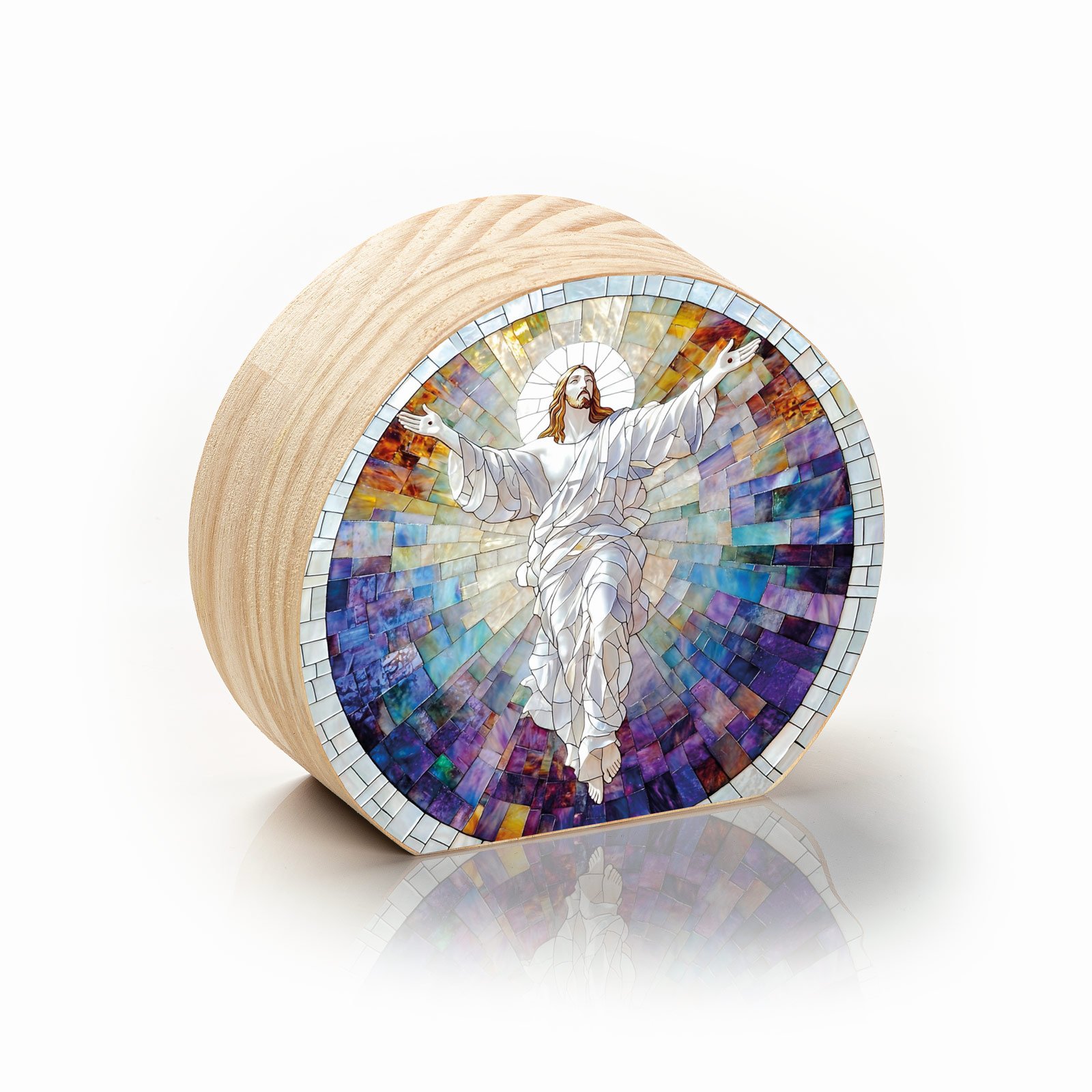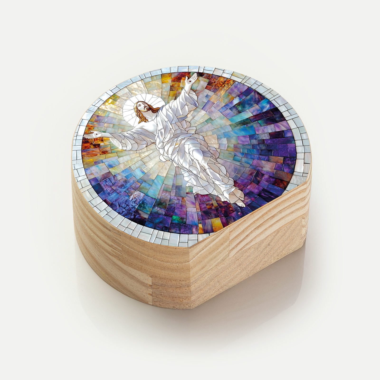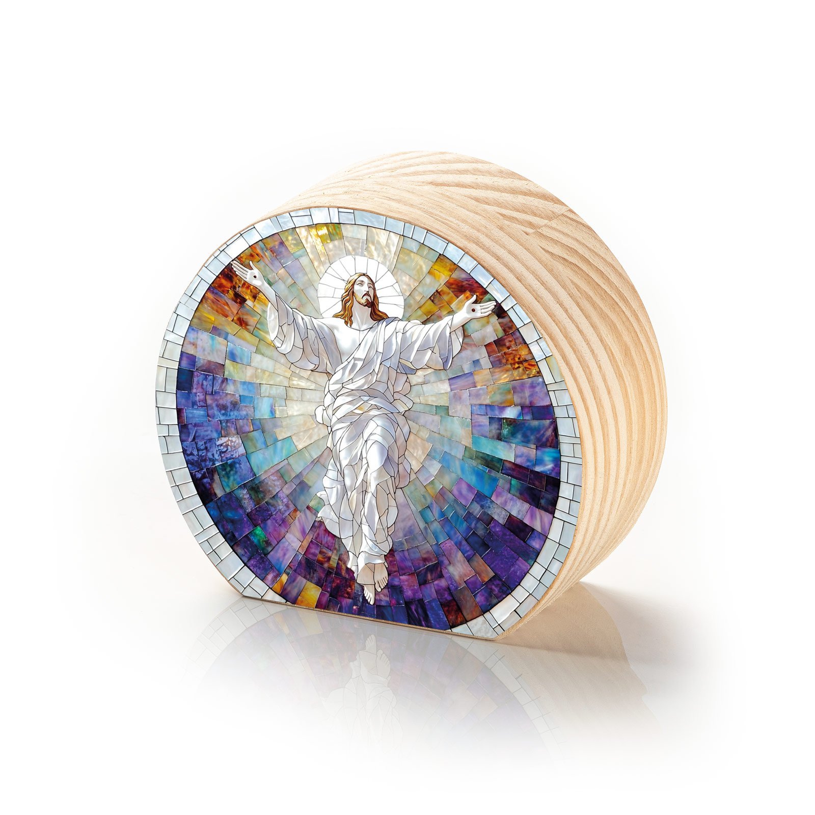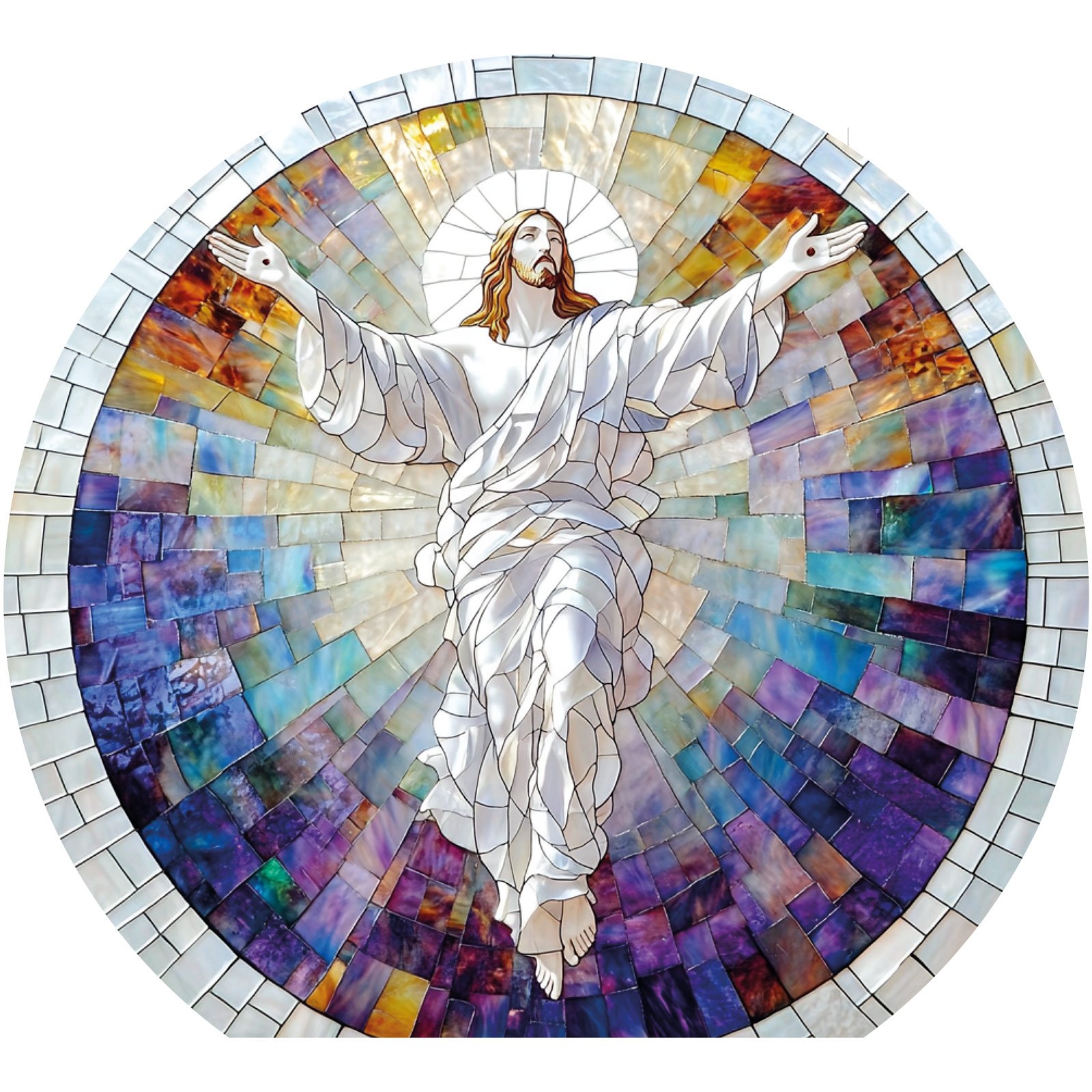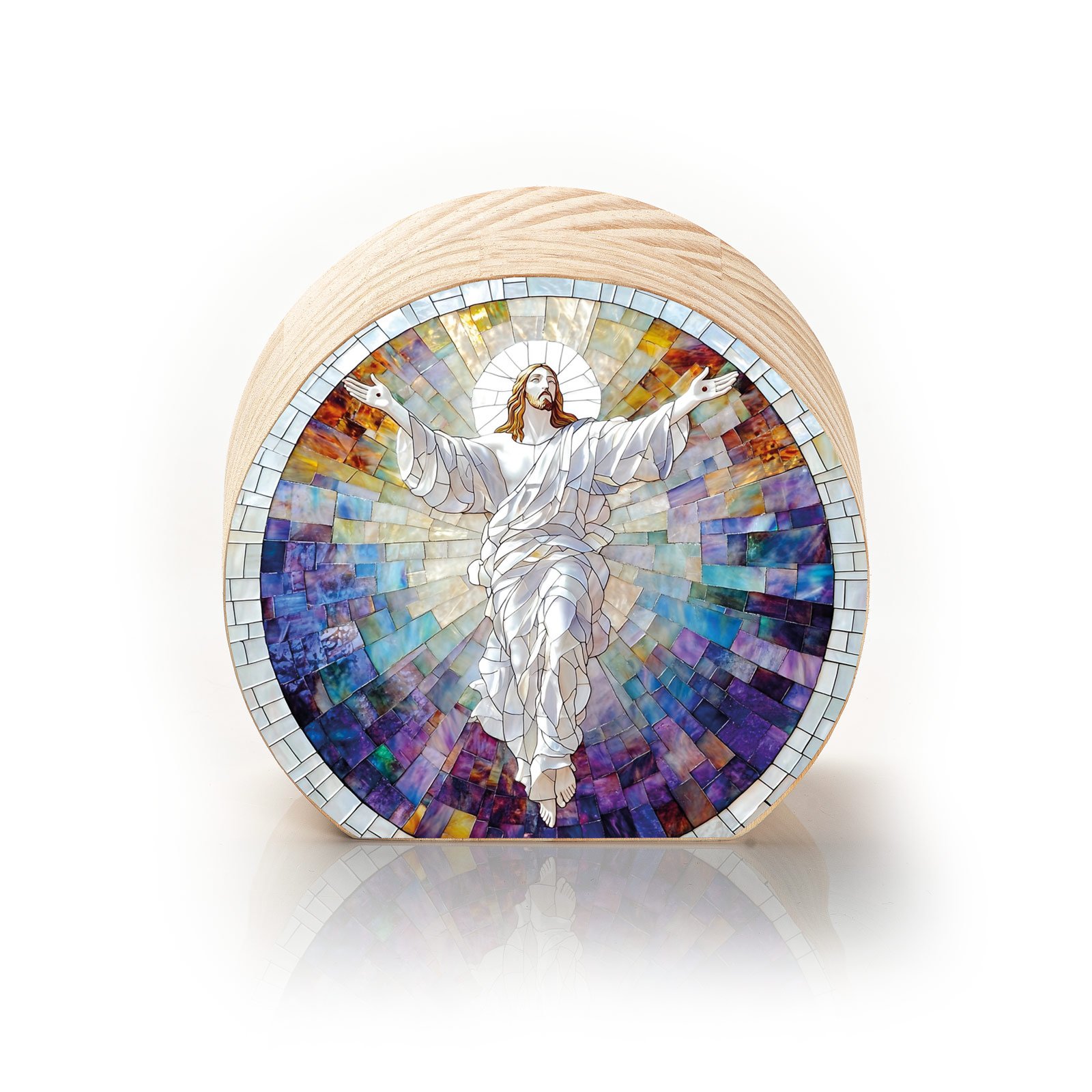 Sinta a presença divina com o Totem Decorativo ‘Luz da Ascensão’ da Linha Luna, uma peça que simboliza esperança, fé e renovação através de uma representação sagrada e luminosa. Jesus Cristo é retratado ascendendo aos céus, envolto por um mosaico radiante de tons celestes e violetas, como um portal espiritual que toca o coração e eleva o ambiente.