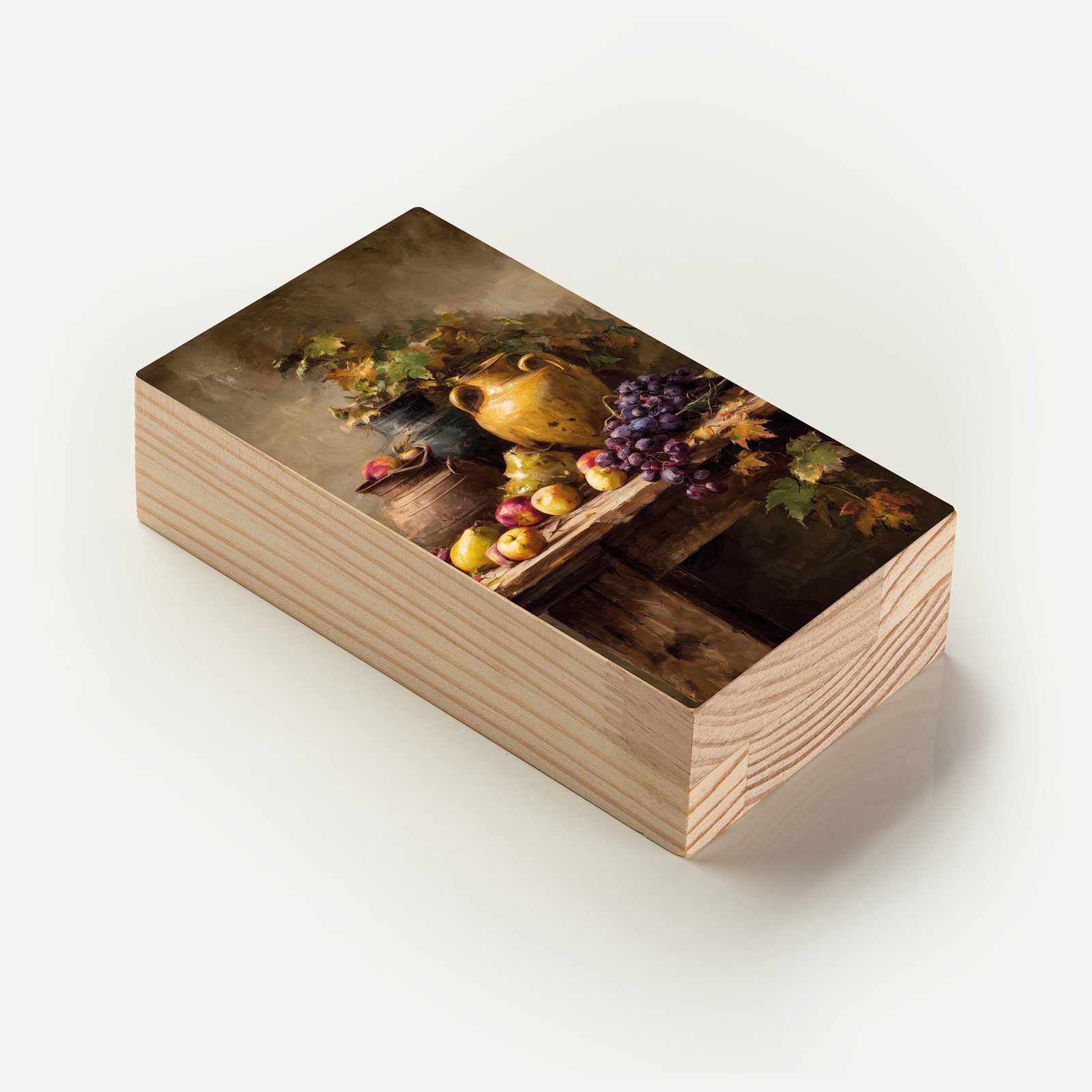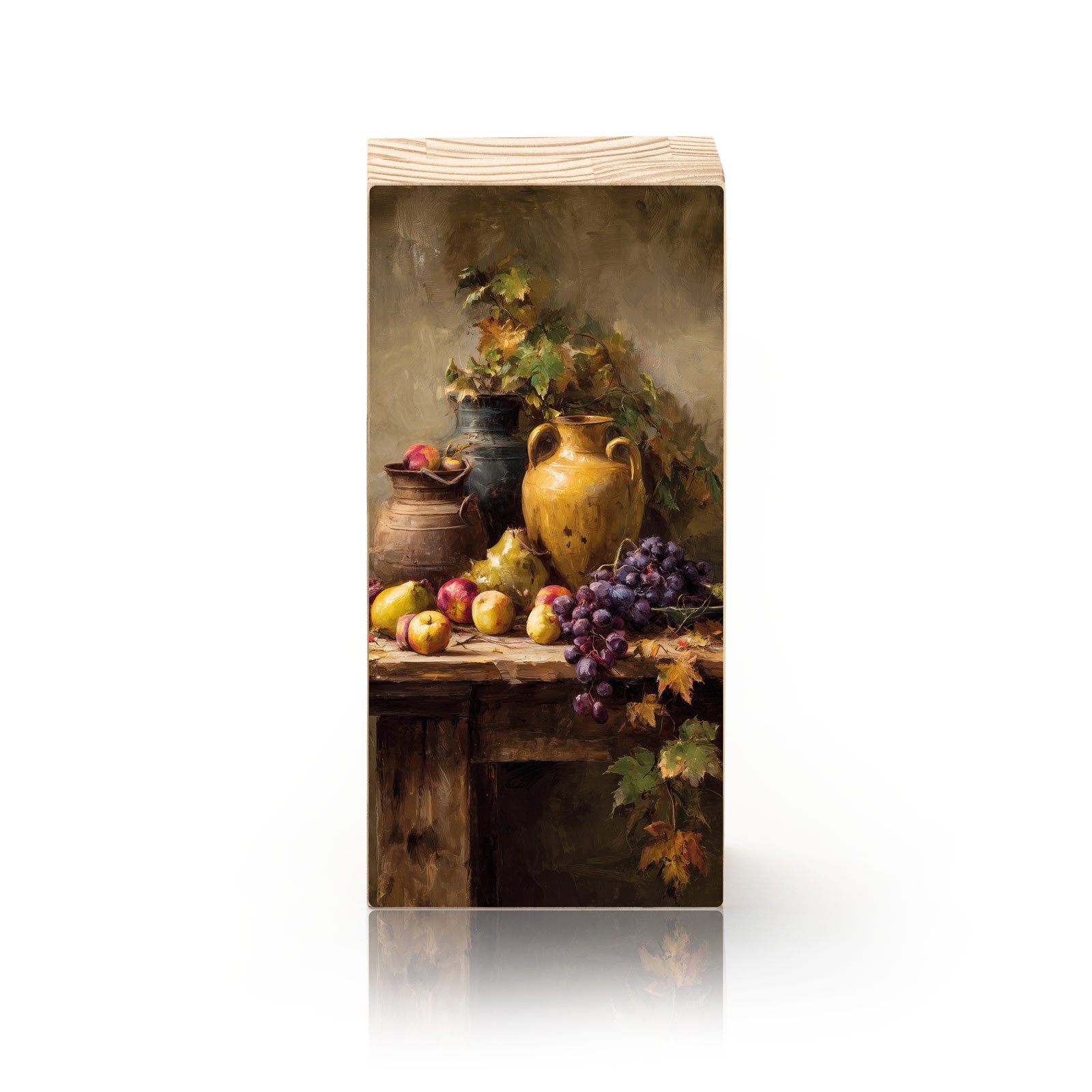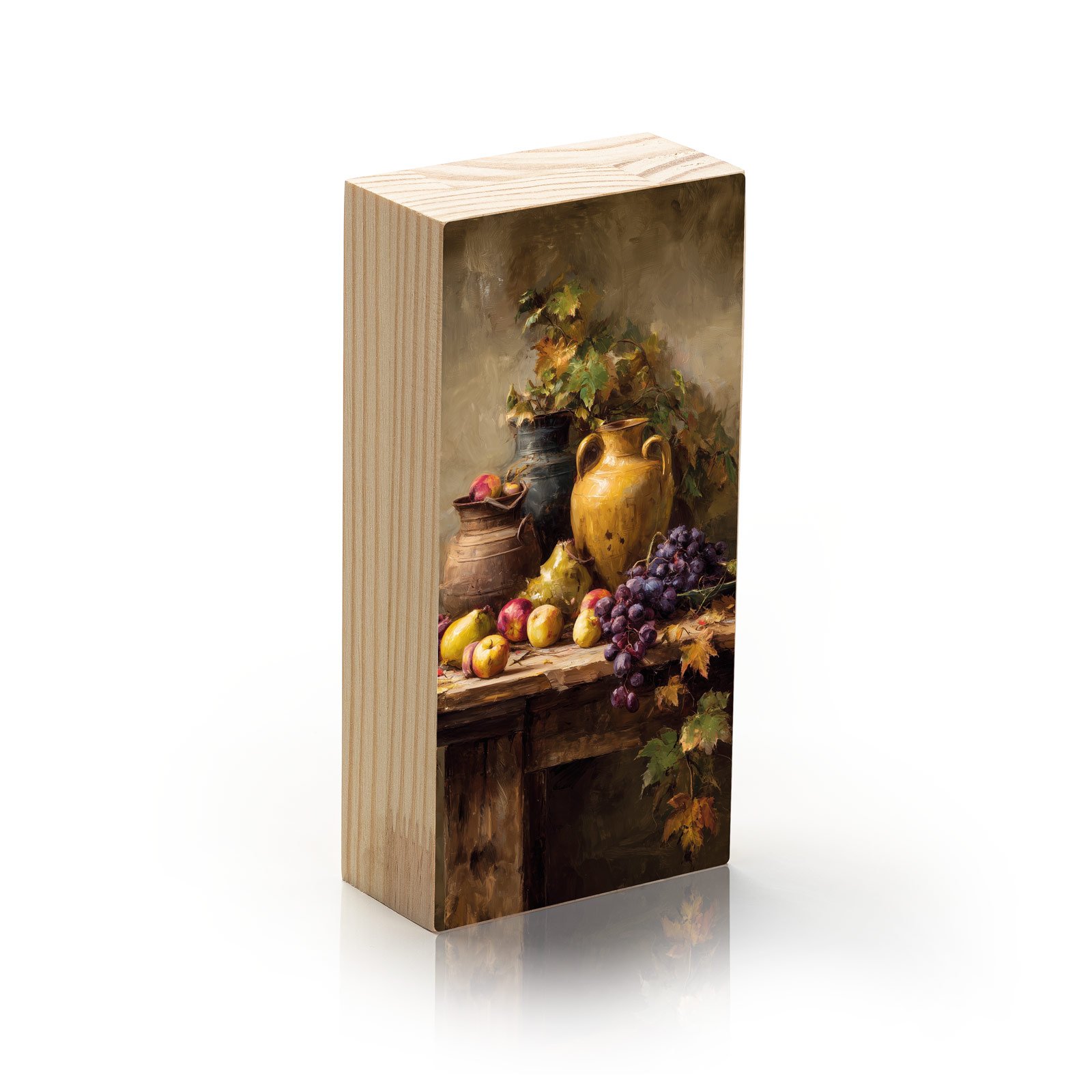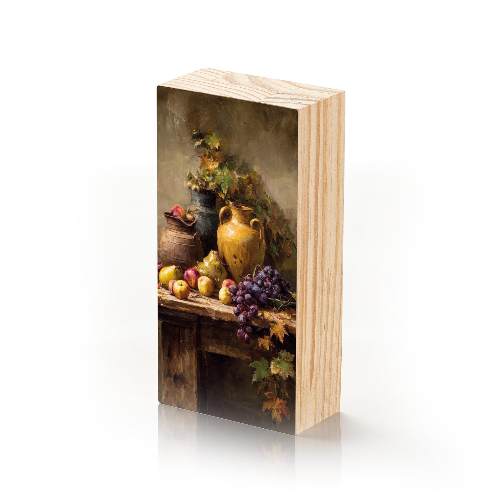 Em tons terrosos e gestos suaves de pincel, “Mesa Toscana” da Linha Vert, nos transporta ao interior da Itália, onde o tempo desacelera entre frutas frescas, cerâmicas antigas e folhas de videira. Uma cena que evoca o calor da colheita e a simplicidade acolhedora da vida no campo.