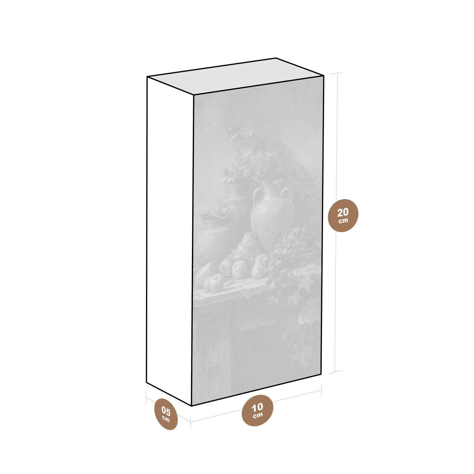 - Dimensões: 10 cm (largura) x 20 cm (altura) x 6 cm (profundidade);