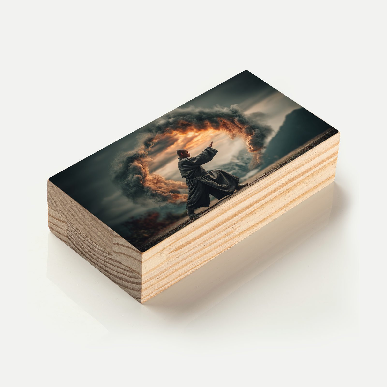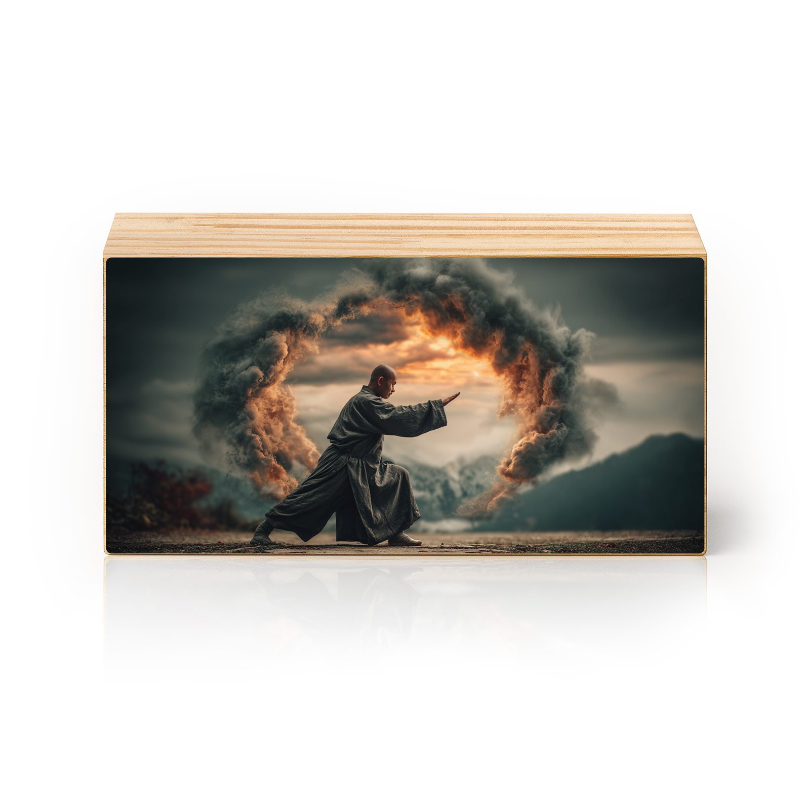 Entre o silêncio das montanhas e a força das nuvens em movimento, “Mestre do Horizonte” retrata a harmonia entre disciplina, energia e contemplação. A cena do monge em posição de poder canaliza equilíbrio e espiritualidade, como se cada gesto abrisse portais entre o físico e o transcendente.
