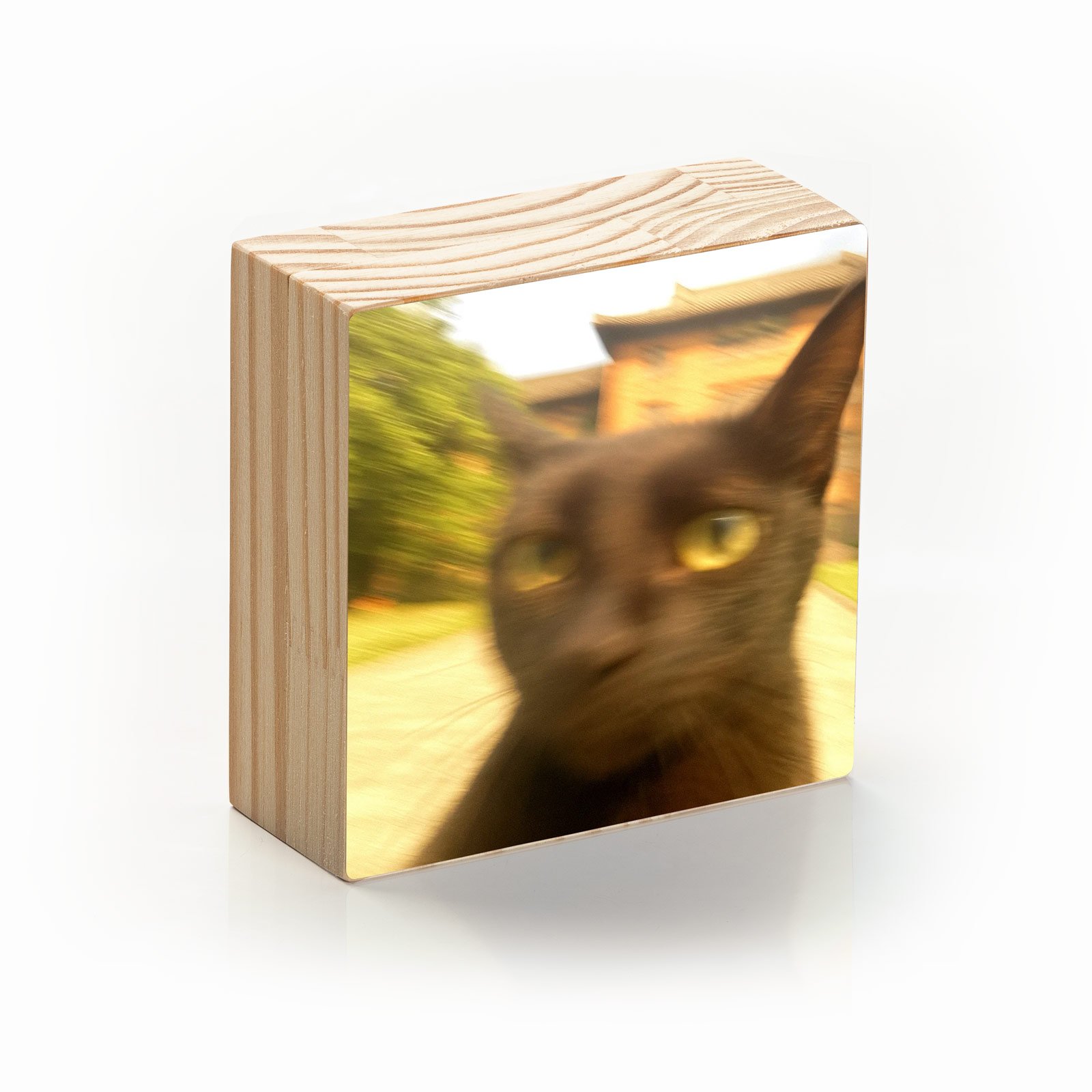 Sabedoria, mistério e presença. O Totem Decorativo “Mestre Felino” da Linha Square captura o momento singular de um gato preto com olhar penetrante, em frente a um templo de arquitetura oriental. A imagem desfocada, quase onírica, transforma a cena em um símbolo de introspecção, energia e espiritualidade silenciosa.