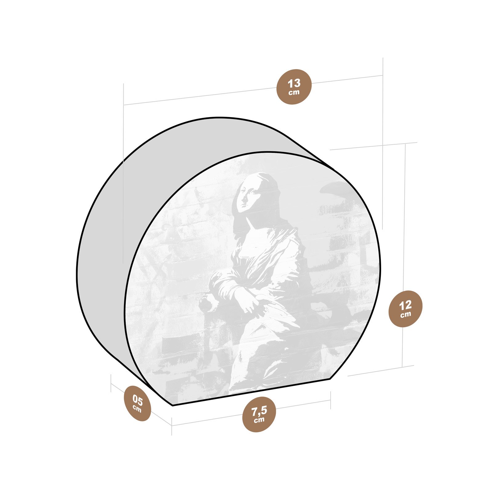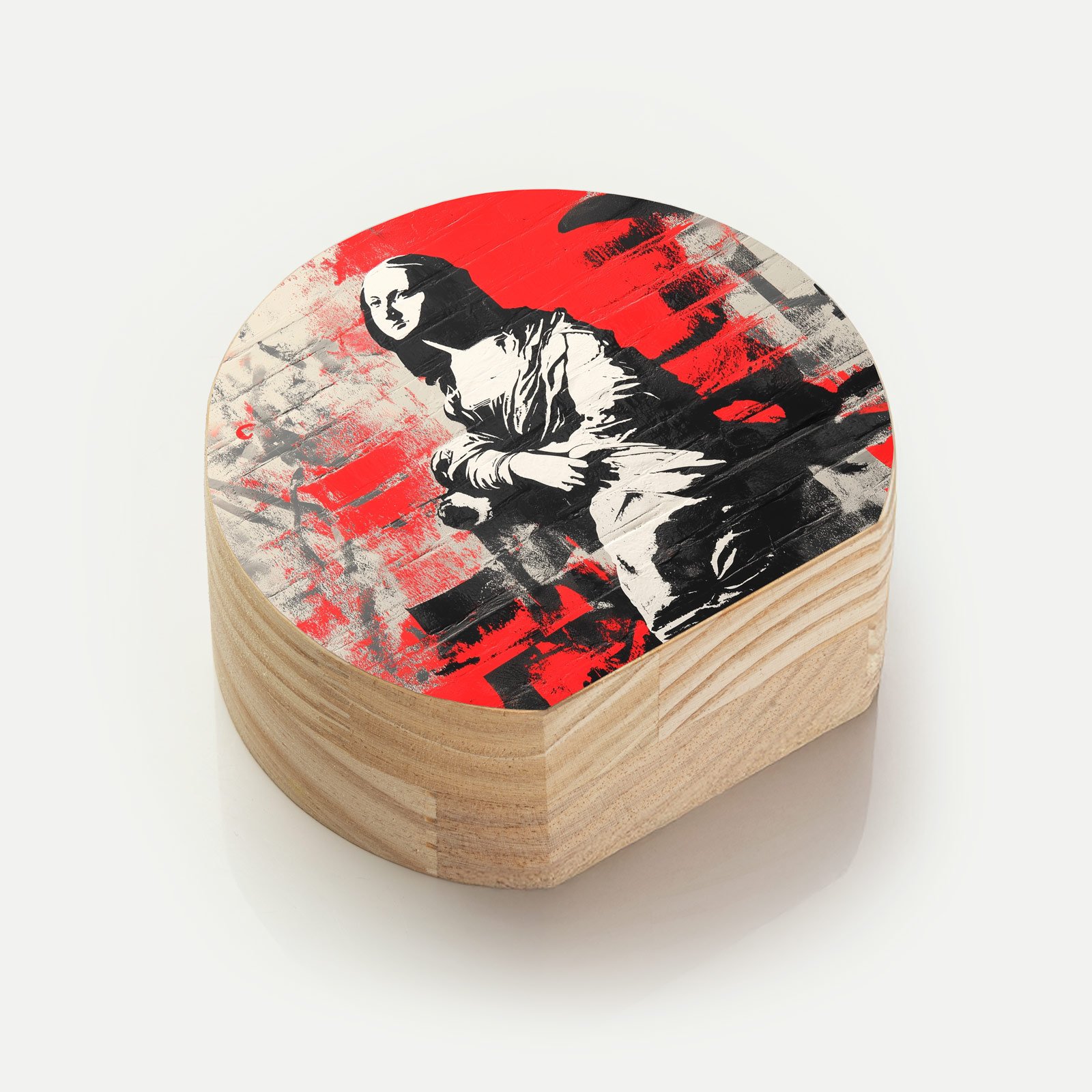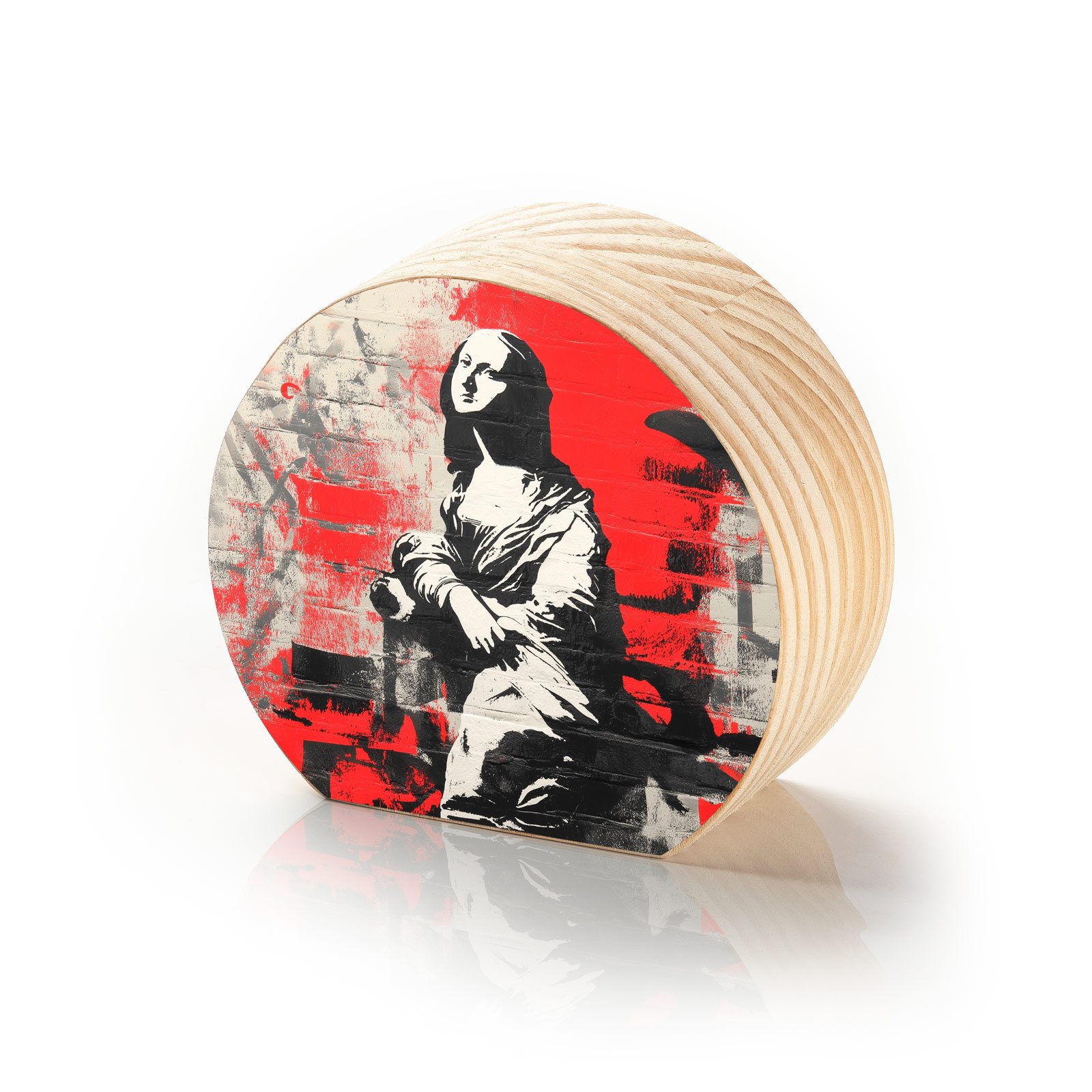 A clássica Mona Lisa ganha um novo fôlego nas ruas. O Totem Decorativo “Mona Underground” da Linha Luna, traz a enigmática figura renascentista em meio a um cenário de arte urbana, com traços ousados e fundo vibrante em vermelho intenso. Uma releitura provocativa que une tradição e rebeldia.