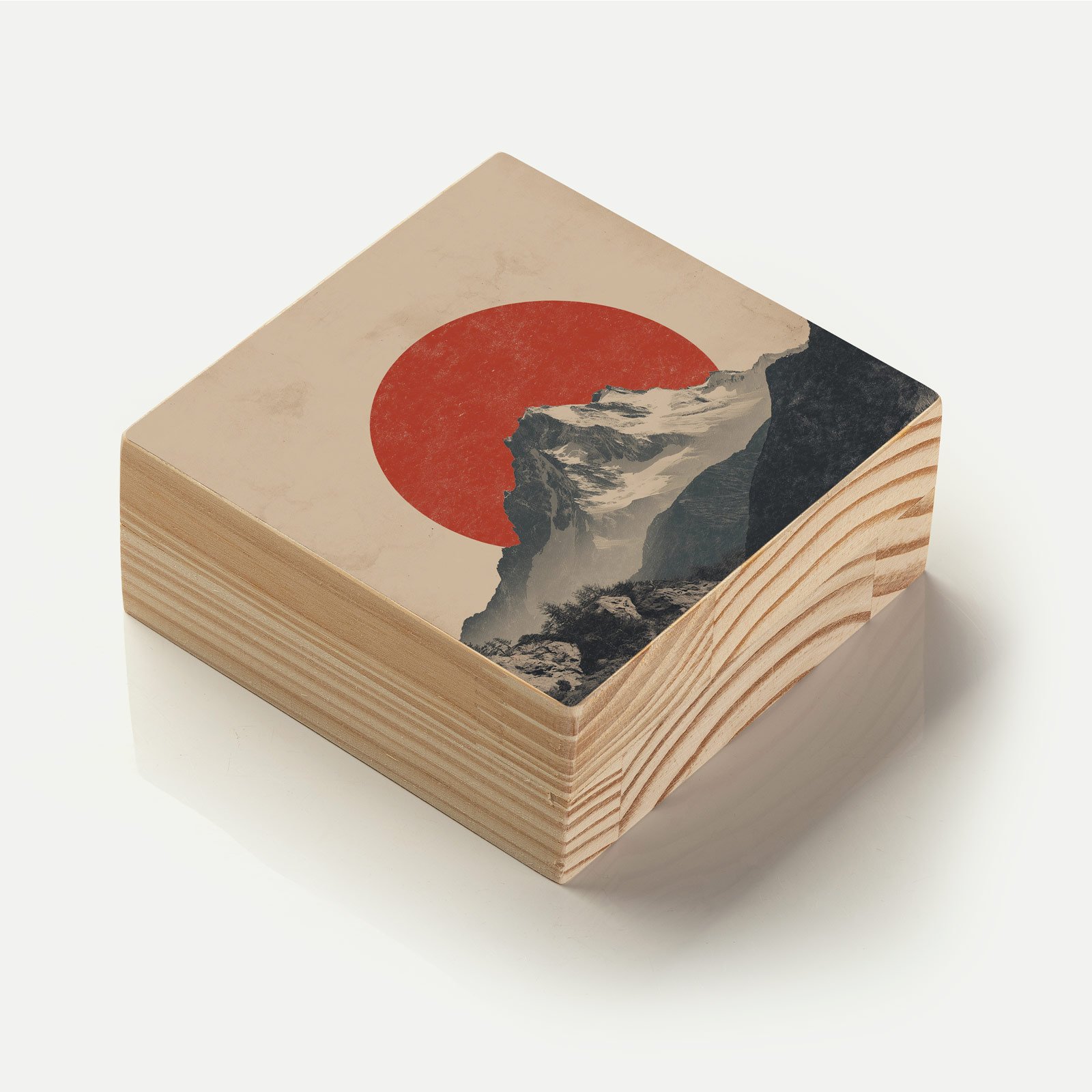 O Totem “Montanha Vermelha” da Linha Square, é um encontro entre força e contemplação. A silhueta das montanhas se ergue imponente sob um grande sol vermelho, criando uma composição gráfica de impacto e profundidade. Uma peça que convida à pausa e à conexão com o essencial o silêncio, a natureza e o horizonte interior.