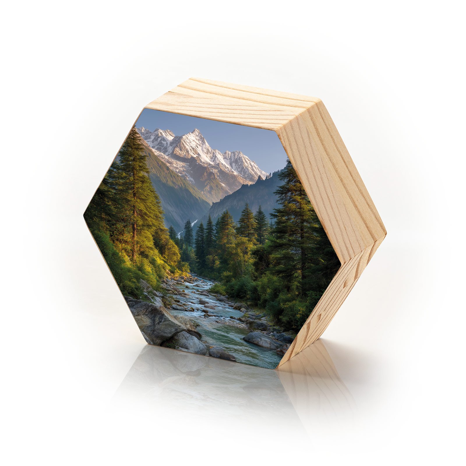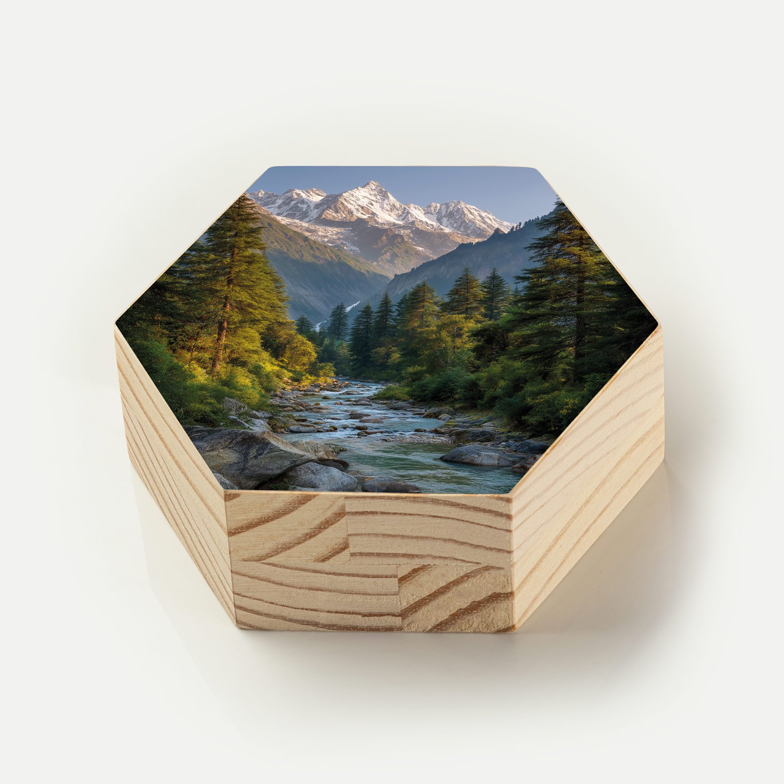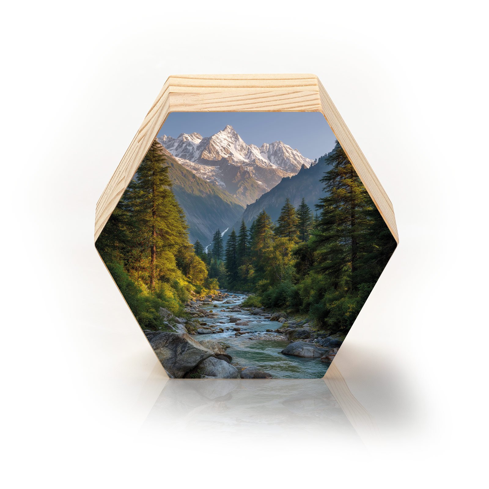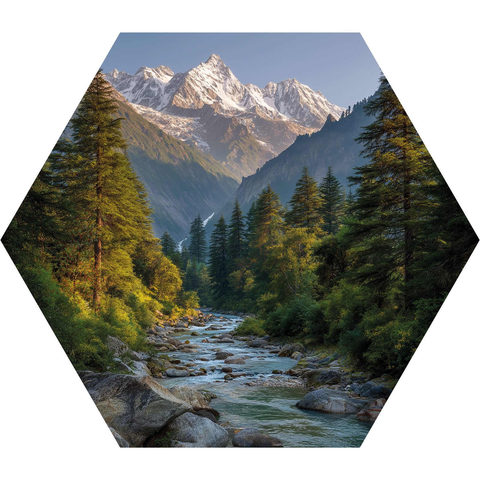 “Montanhas Eternas” da Linha Hezag, representa a força da natureza em sua forma mais pura. O rio que atravessa o vale e corre em direção às montanhas nevadas simboliza a constância da vida, que segue seu curso mesmo diante das maiores alturas. É um lembrete de que a verdadeira grandeza nasce da harmonia entre resiliência e serenidade.