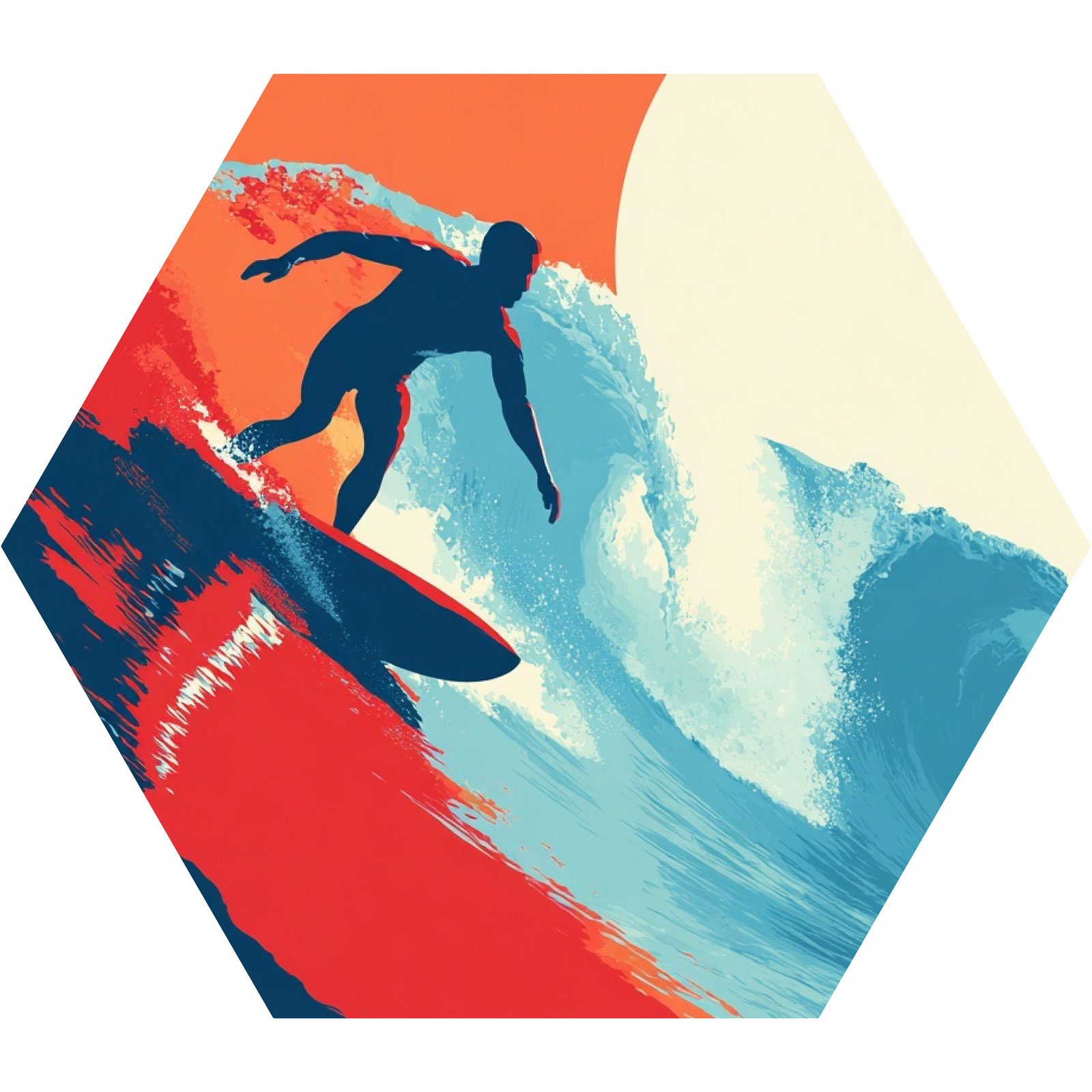 O sol arde no horizonte enquanto uma onda azul-cobalto se ergue com fúria e beleza. “Na Crista da Liberdade” da Linha Hezag, captura o exato momento em que o surfista se entrega ao movimento do mar uma dança entre força e fluidez, coragem e contemplação. Uma celebração visual do espírito livre.