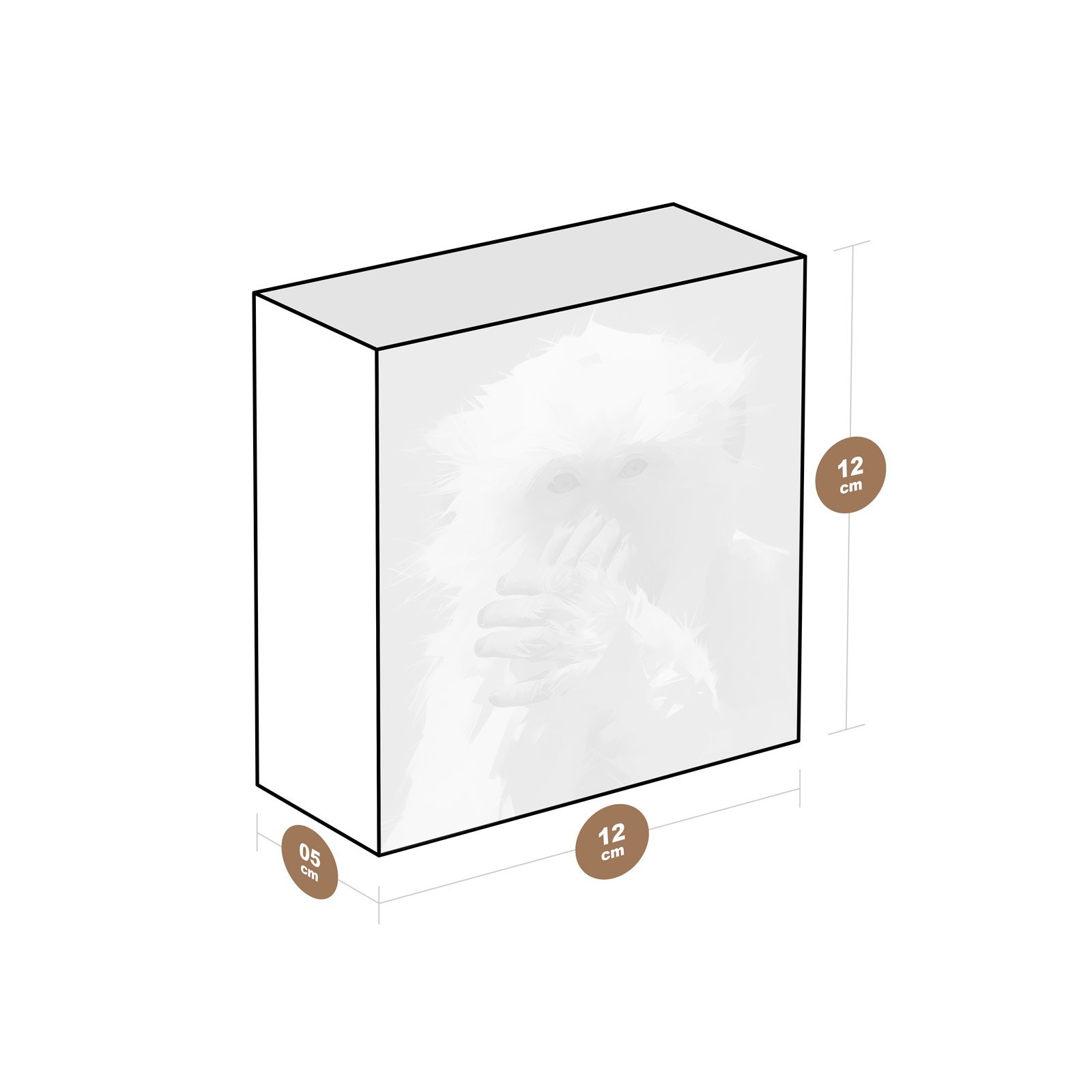 - Dimensões: 12 cm (largura) x 12 cm (altura) x 6 cm (profundidade);