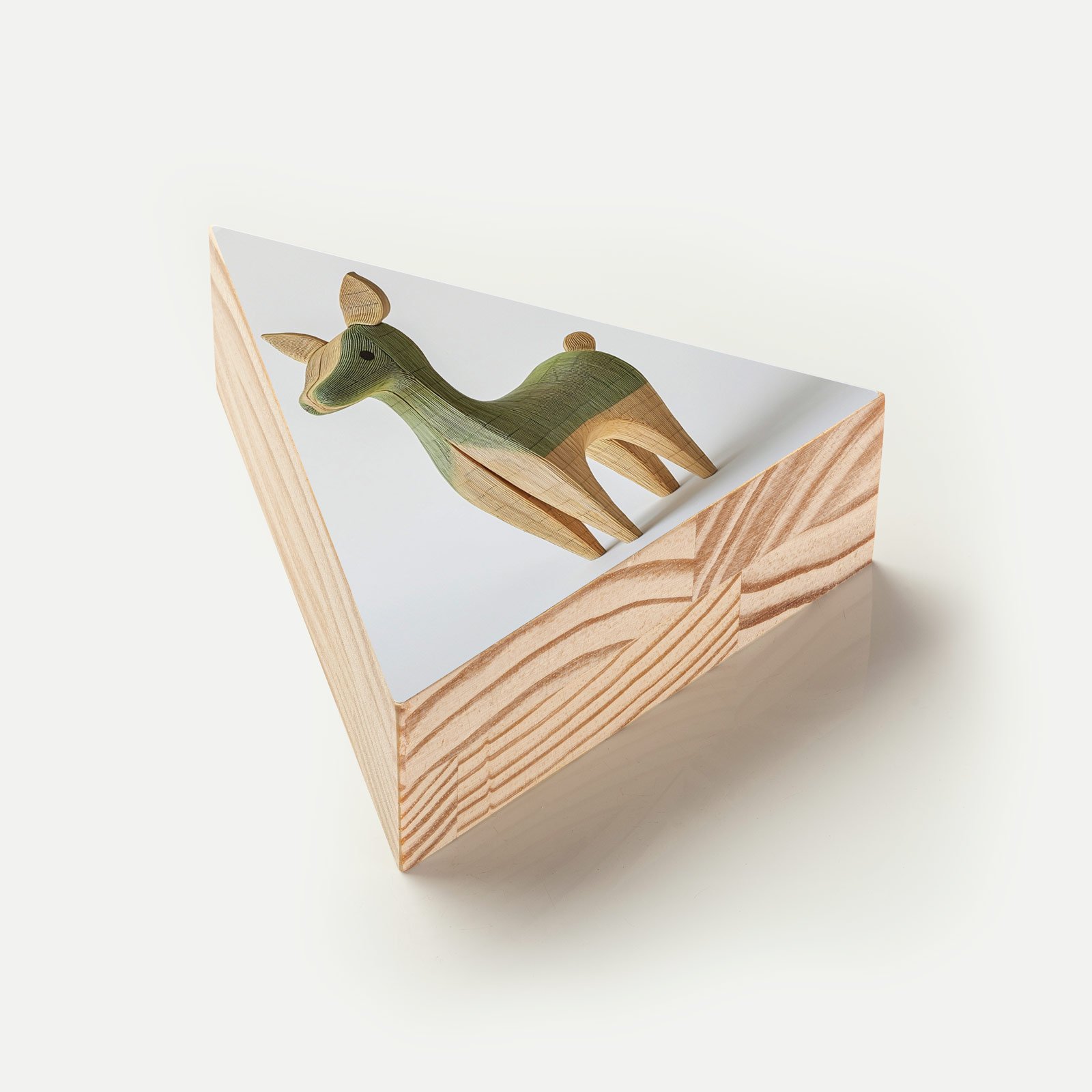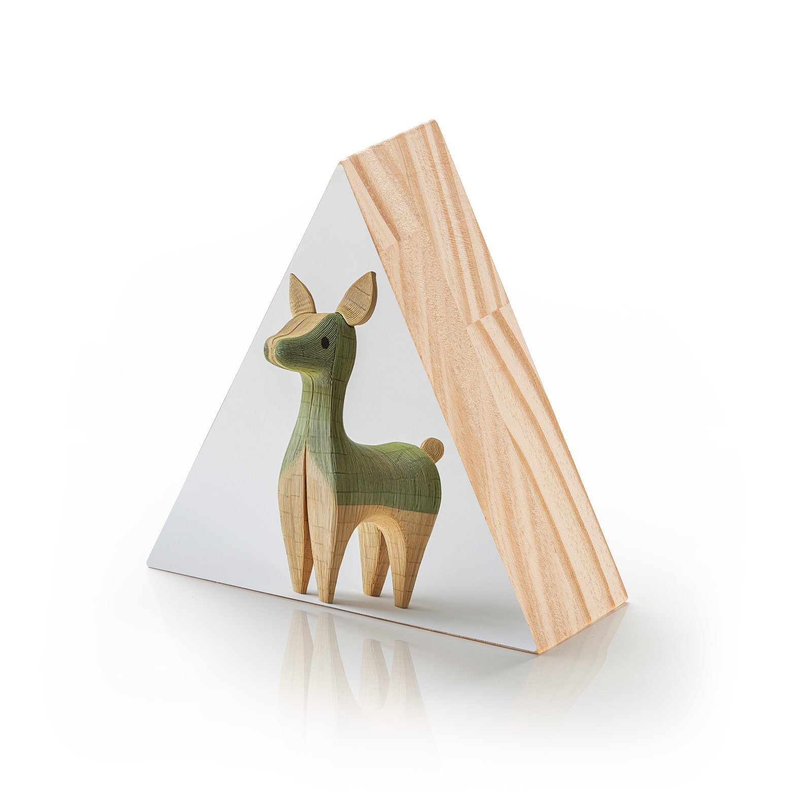 Encante-se com a ternura do Totem Decorativo “Natureza de Brincar” da Linha Trion, uma peça que remete à pureza das brincadeiras de infância e à simplicidade da vida no campo. Com aparência de escultura talhada em madeira, esse pequeno cervo verde-musgo desperta cuidado e carinho, como um brinquedo esquecido numa prateleira cheia de lembranças boas.