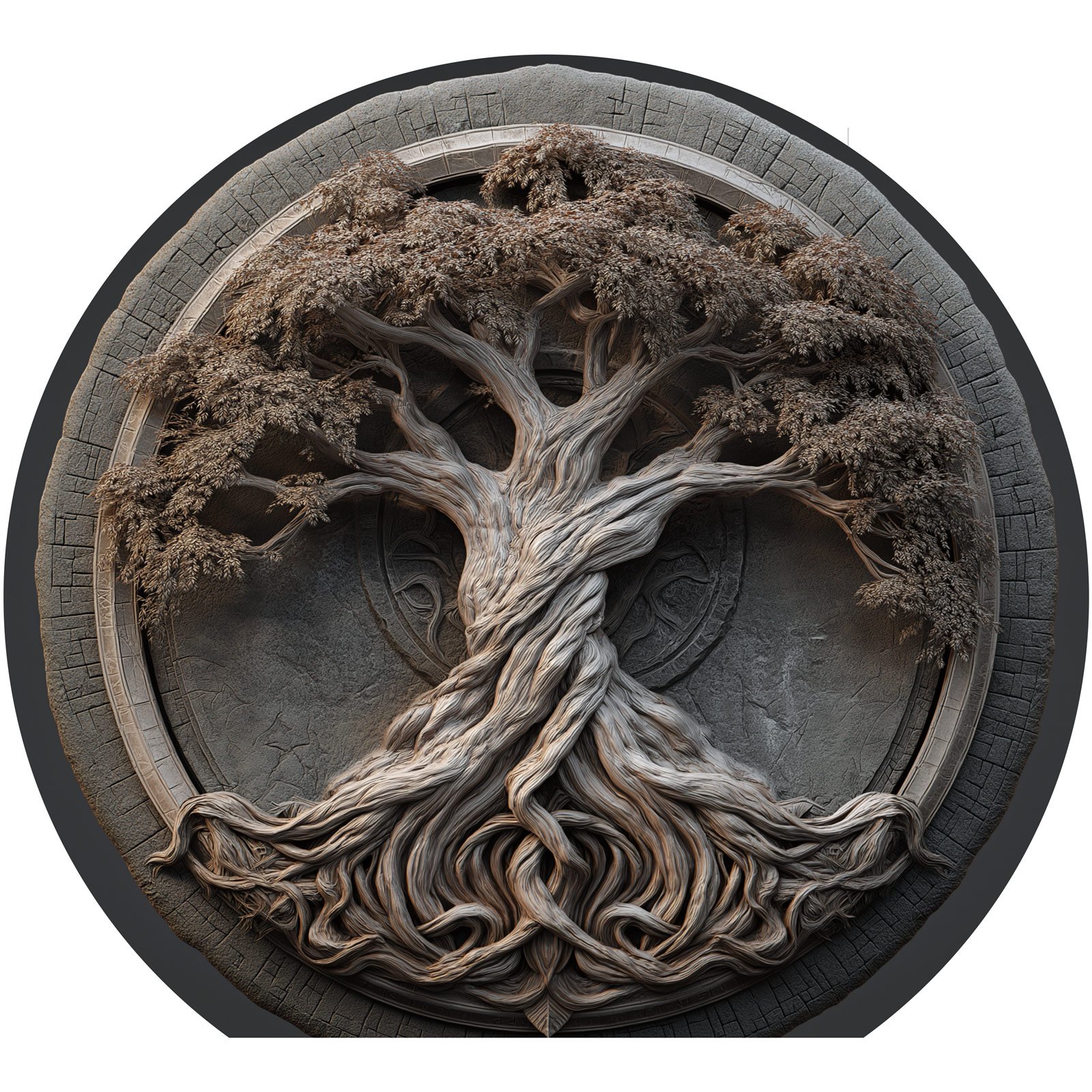 Entre formas entrelaçadas e texturas ancestrais, o “Nexus da Vida”, da Linha Luna, representa o elo invisível que conecta todos os ciclos da existência. A árvore central, esculpida em detalhes orgânicos e profundos, parece emergir de um portal mítico, com raízes que se entrelaçam como fios da própria história. Este totem é um símbolo de conexão, sabedoria e eternidade — um ponto de encontro entre o visível e o invisível, o tempo e o instante.