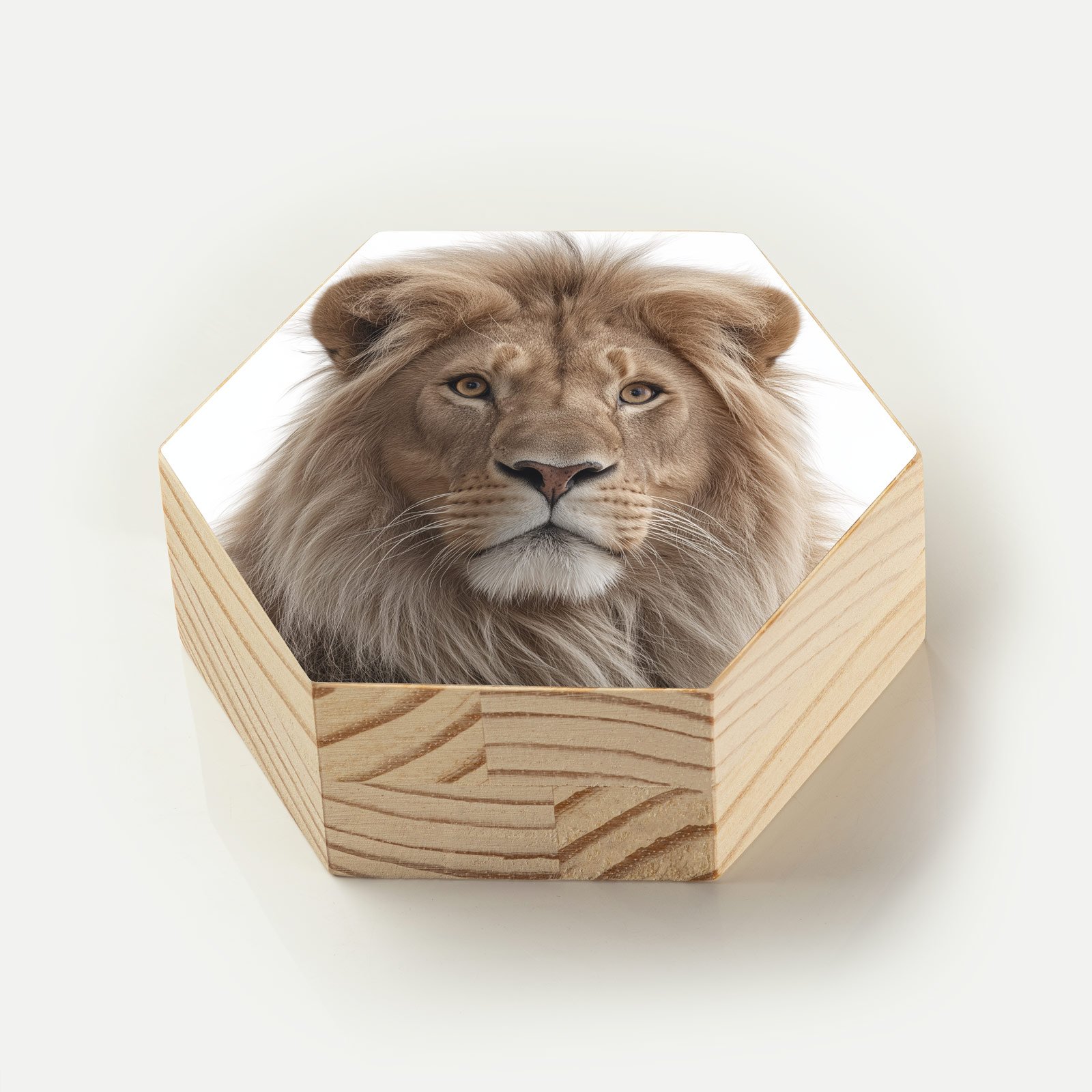 O olhar imponente do leão, símbolo universal de coragem e poder, é capturado em sua essência mais verdadeira. “Nobreza Selvagem” traduz a imponência natural do rei da selva, equilibrando força e serenidade em um retrato que inspira respeito, confiança e grandeza. Uma peça que transforma qualquer ambiente em um espaço de autoridade e contemplação.