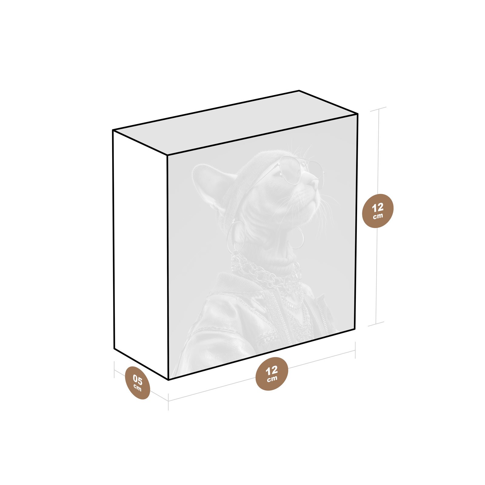 - Dimensões: 12 cm (largura) x 12 cm (altura) x 5 cm (profundidade)