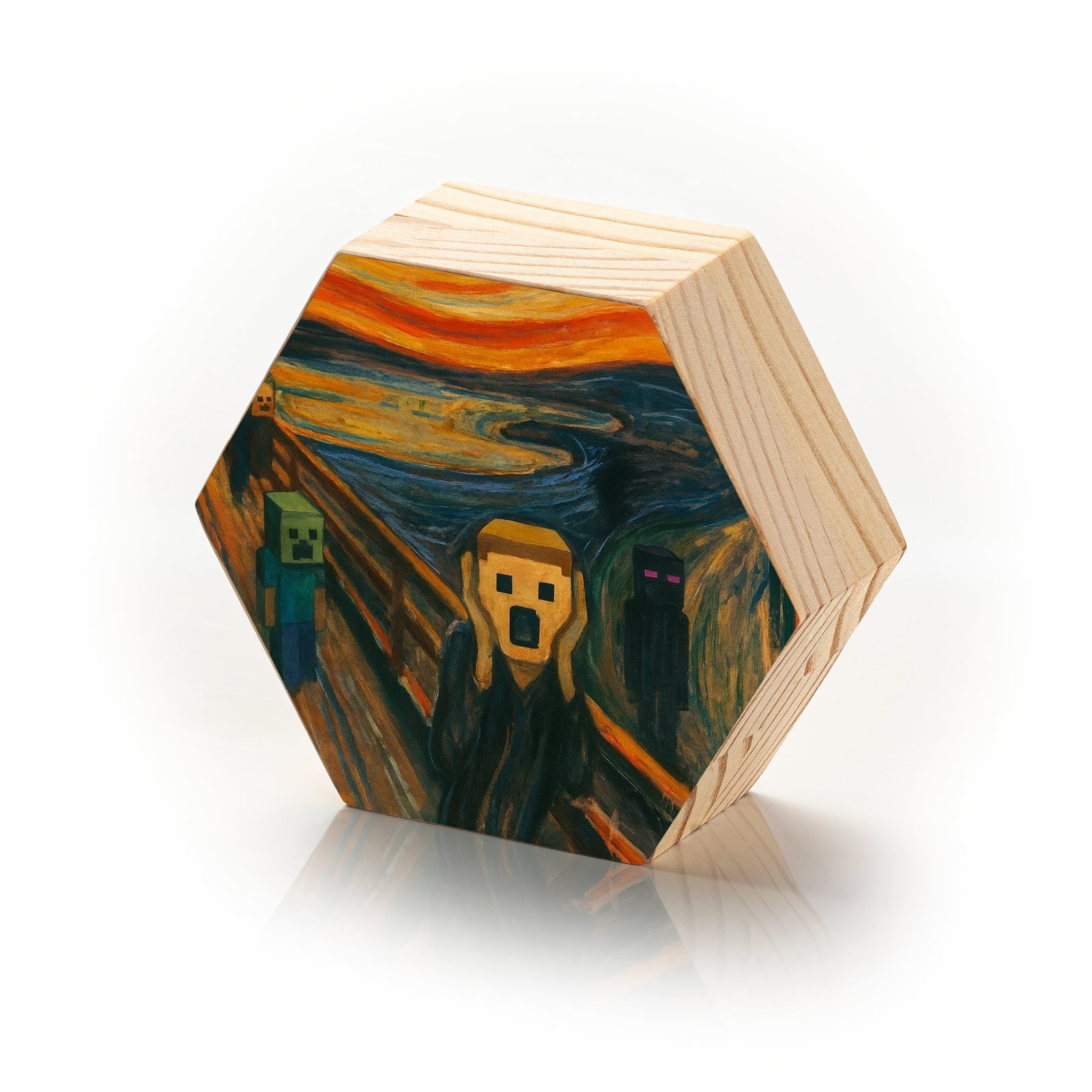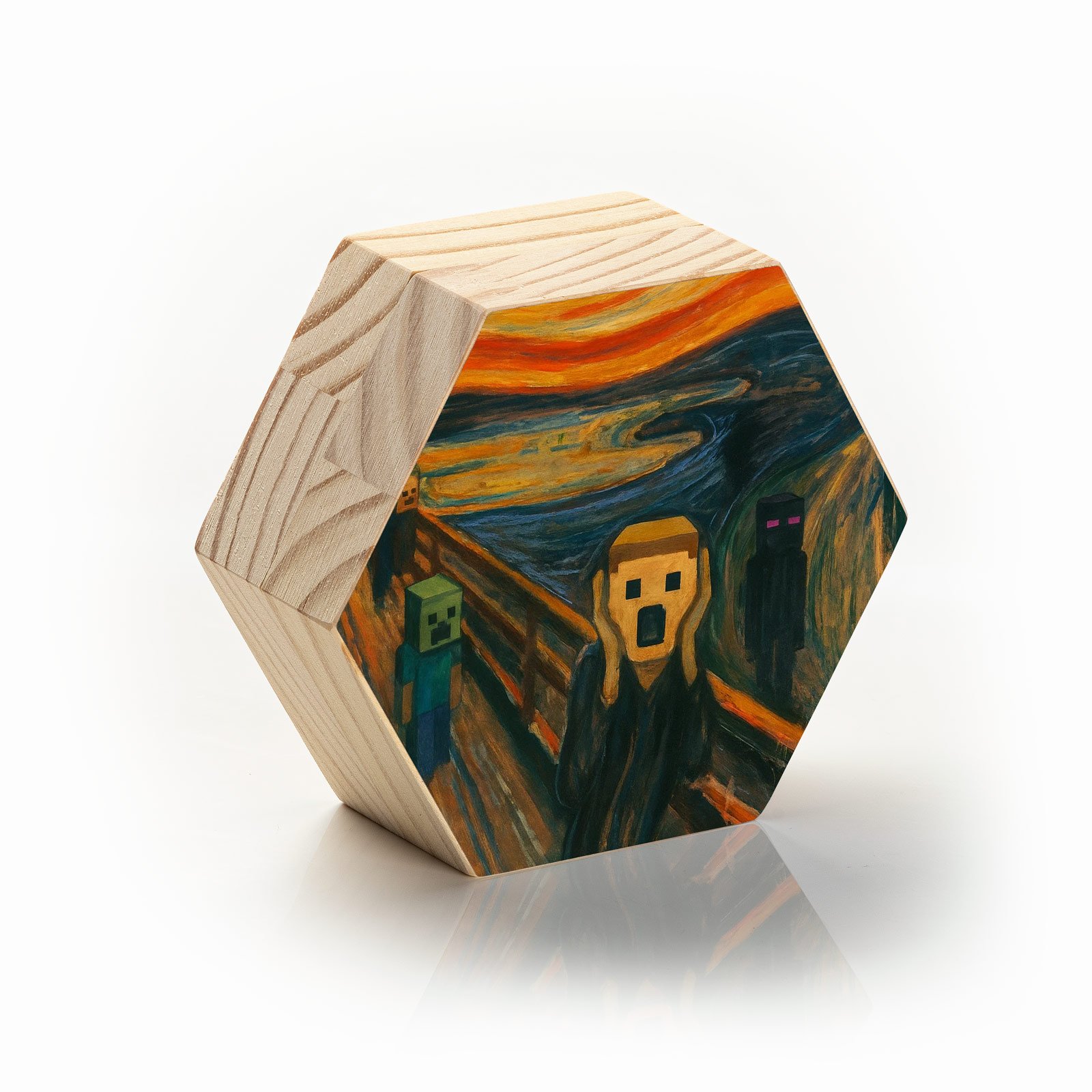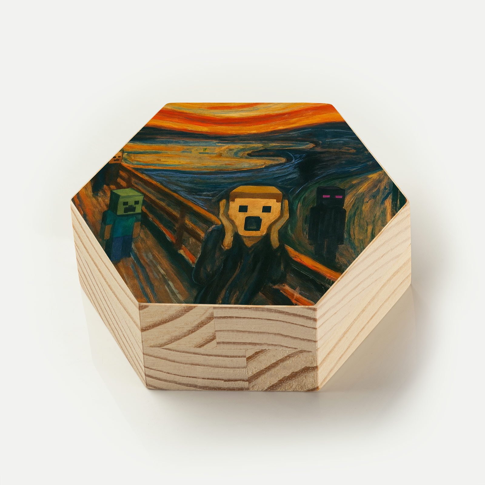 Uma peça única para fãs de arte, amantes de Minecraft, colecionadores de cultura pop ou qualquer pessoa que goste de unir o clássico ao divertido.