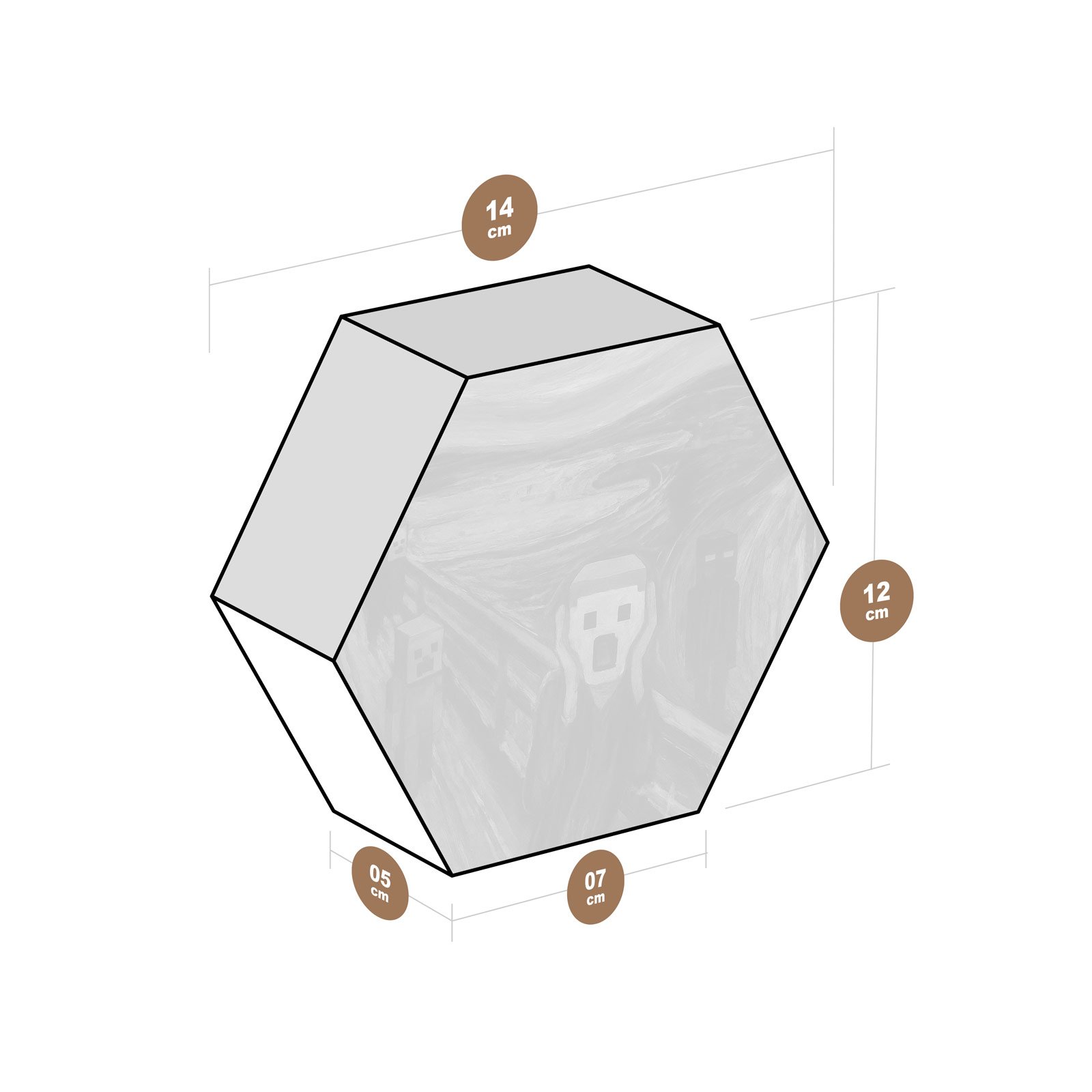 - Dimensões: 14 cm (largura) x 12 cm (altura) x 7 cm (profundidade);