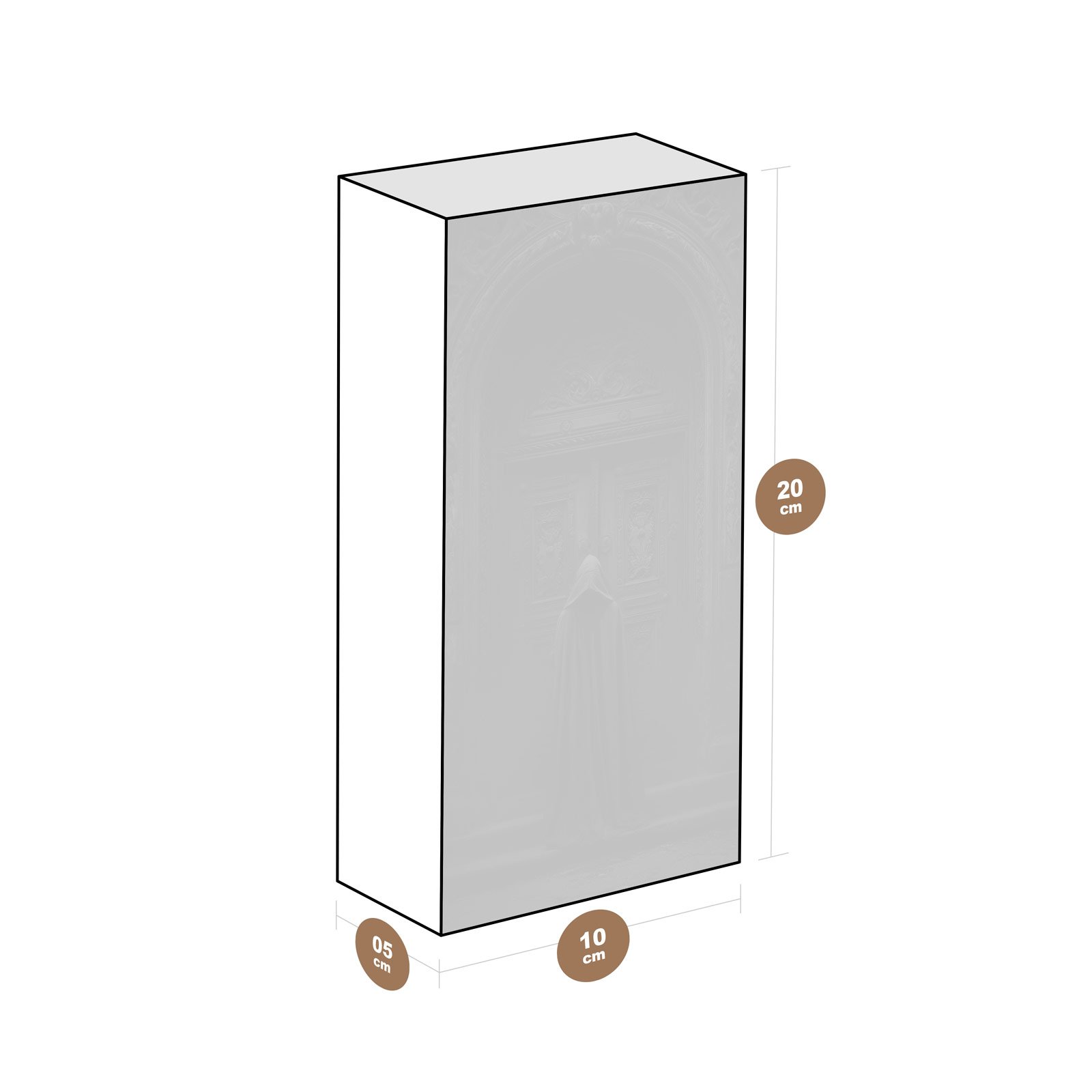 - Dimensões: 20 cm (altura) x 10 cm (largura) x 5 cm (profundidade);