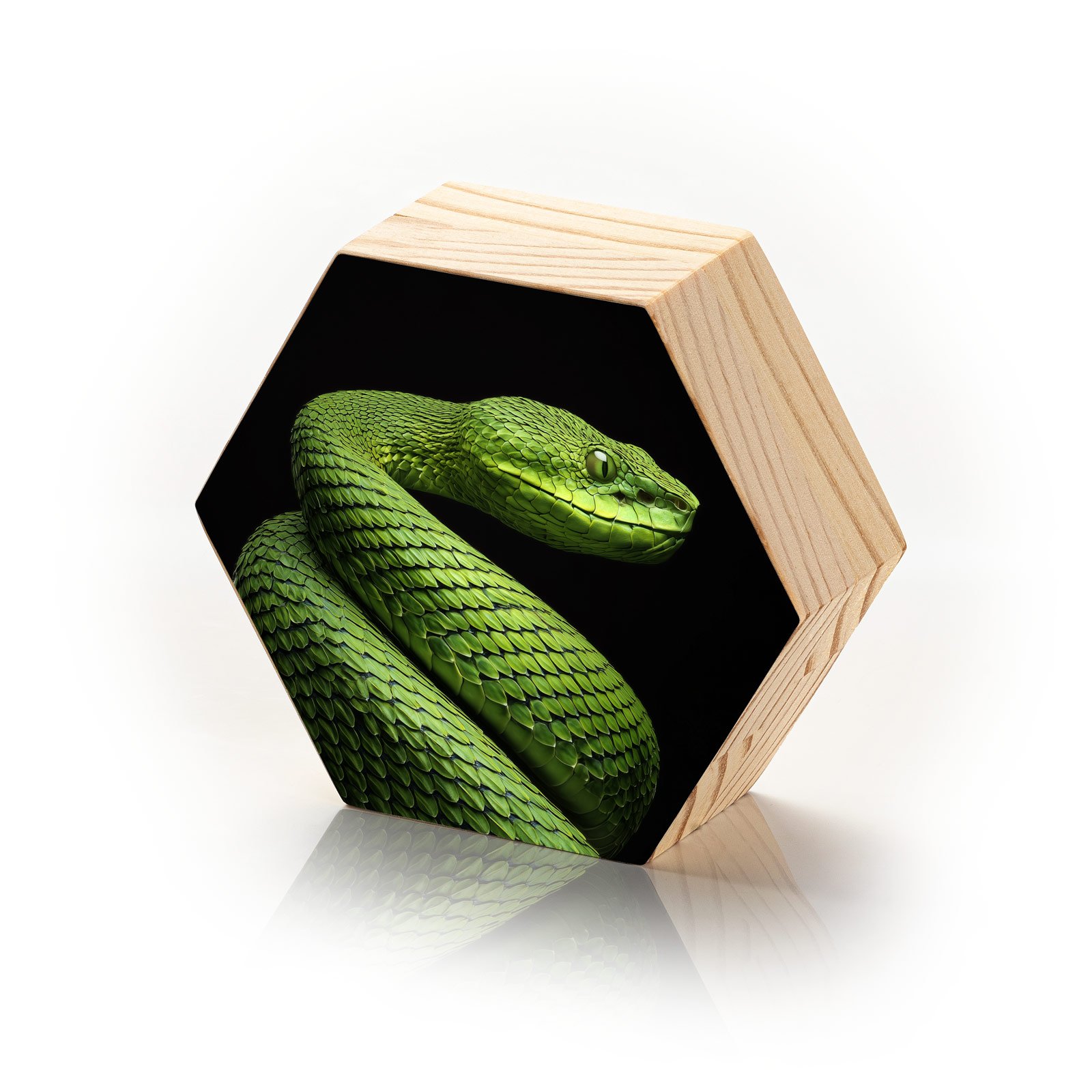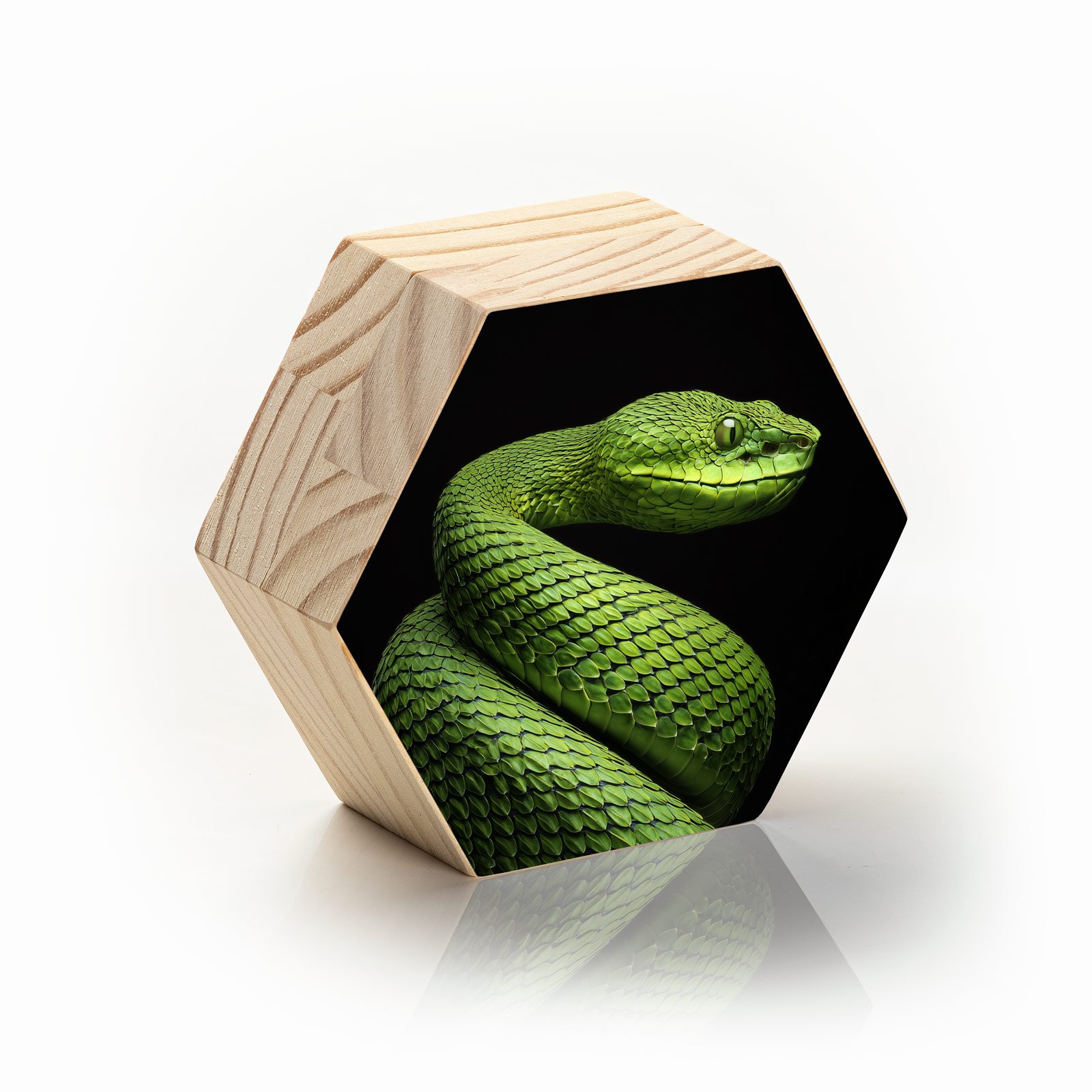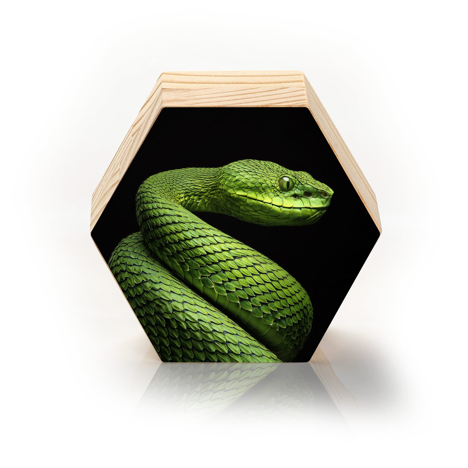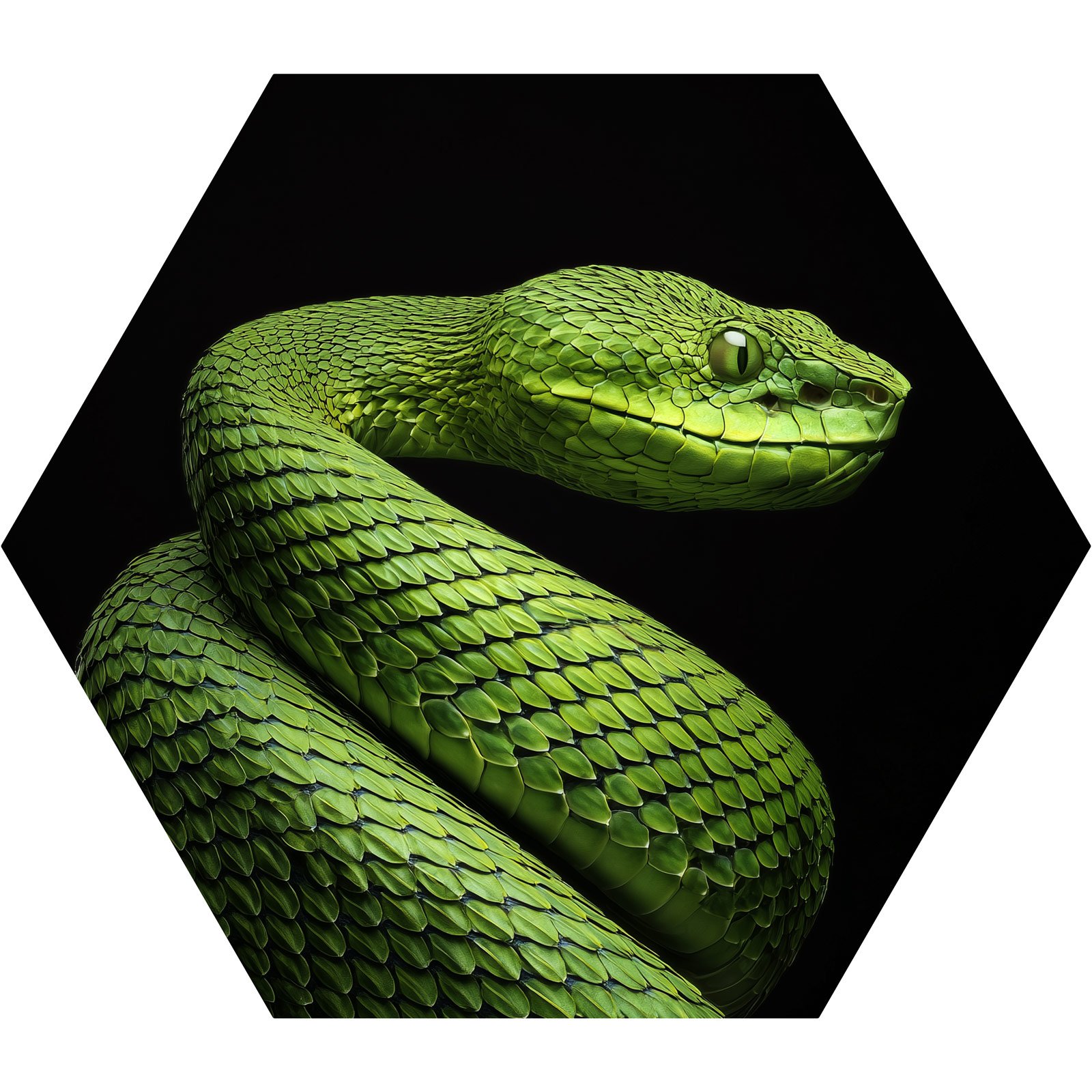 “O Guardião Esmeralda” simboliza a força silenciosa e a imponência da natureza selvagem. A serpente em tons vibrantes de verde, destacada sobre o fundo negro, transmite elegância, mistério e poder. Uma representação da vigilância e da beleza enigmática que se esconde em cada detalhe da vida selvagem.