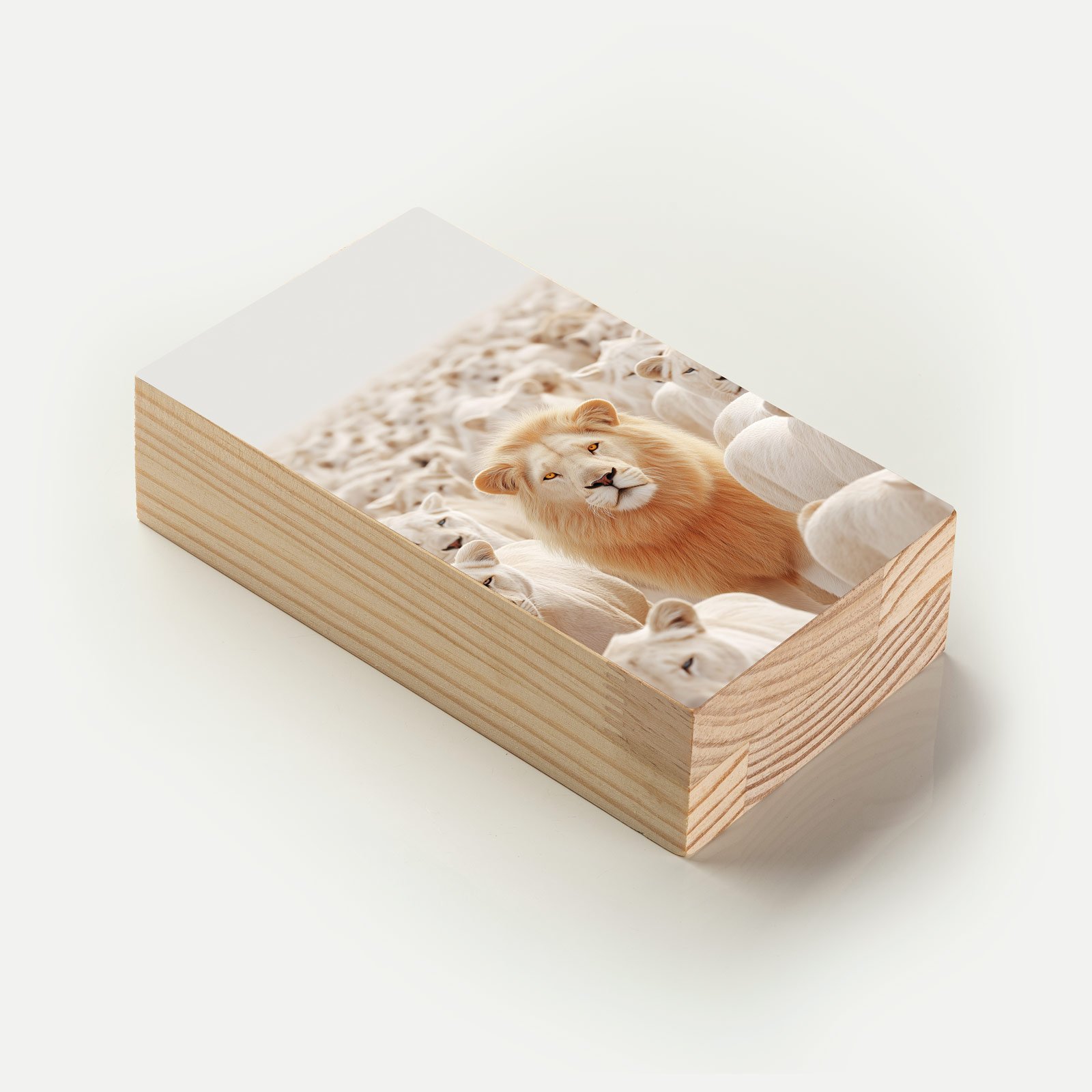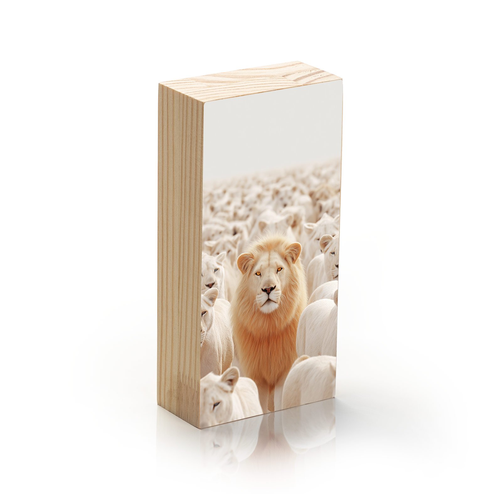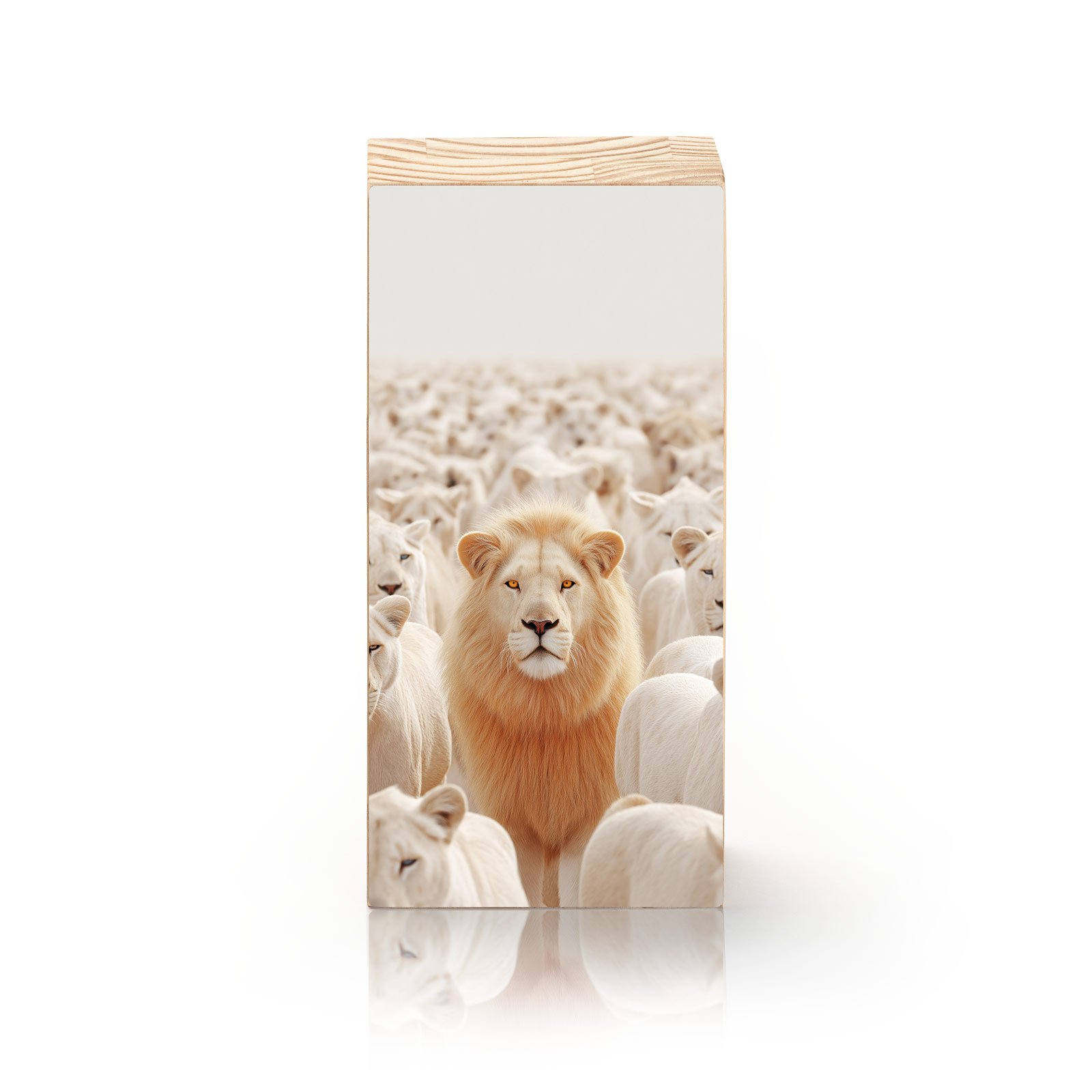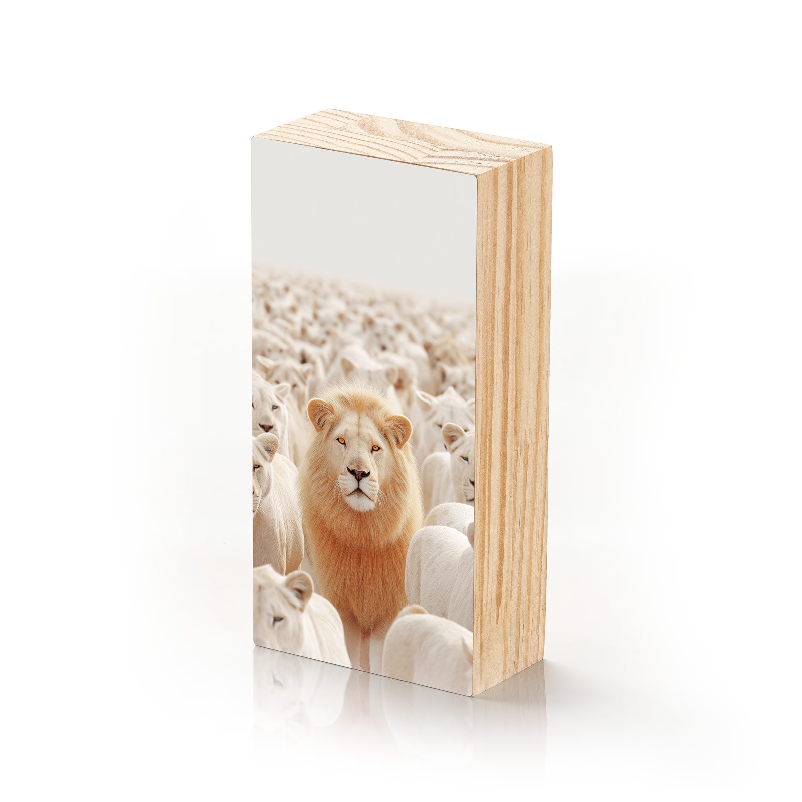 Quando todos parecem iguais, é a essência que define quem realmente lidera. O Totem Decorativo “O Incomparável” da Linha Vert, traz a imagem de um leão dourado cercado por uma multidão de leões brancos – um símbolo de liderança natural, destaque sutil e força serena.