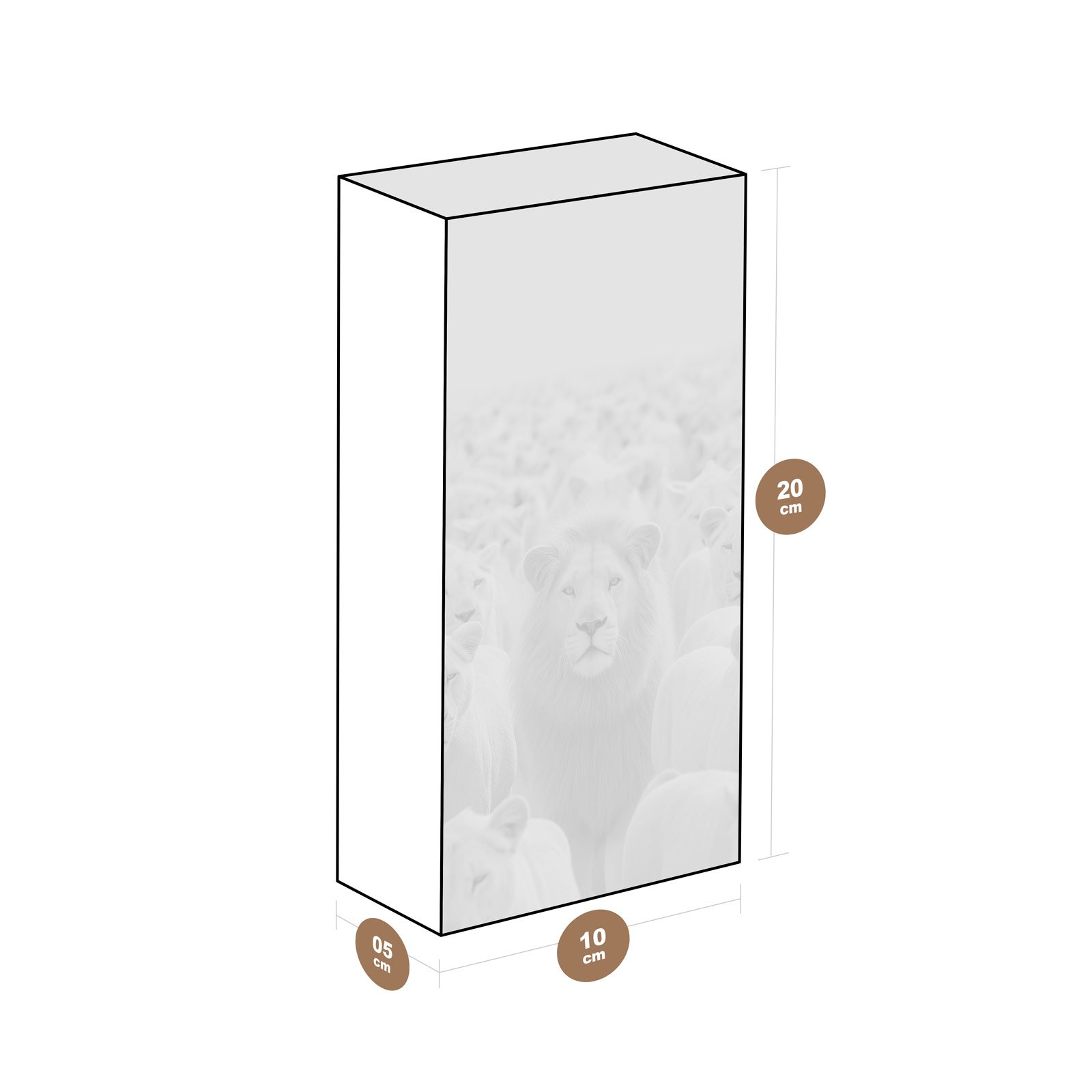 - Dimensões: 20 cm (altura) x 10 cm (largura) x 5 cm (profundidade);