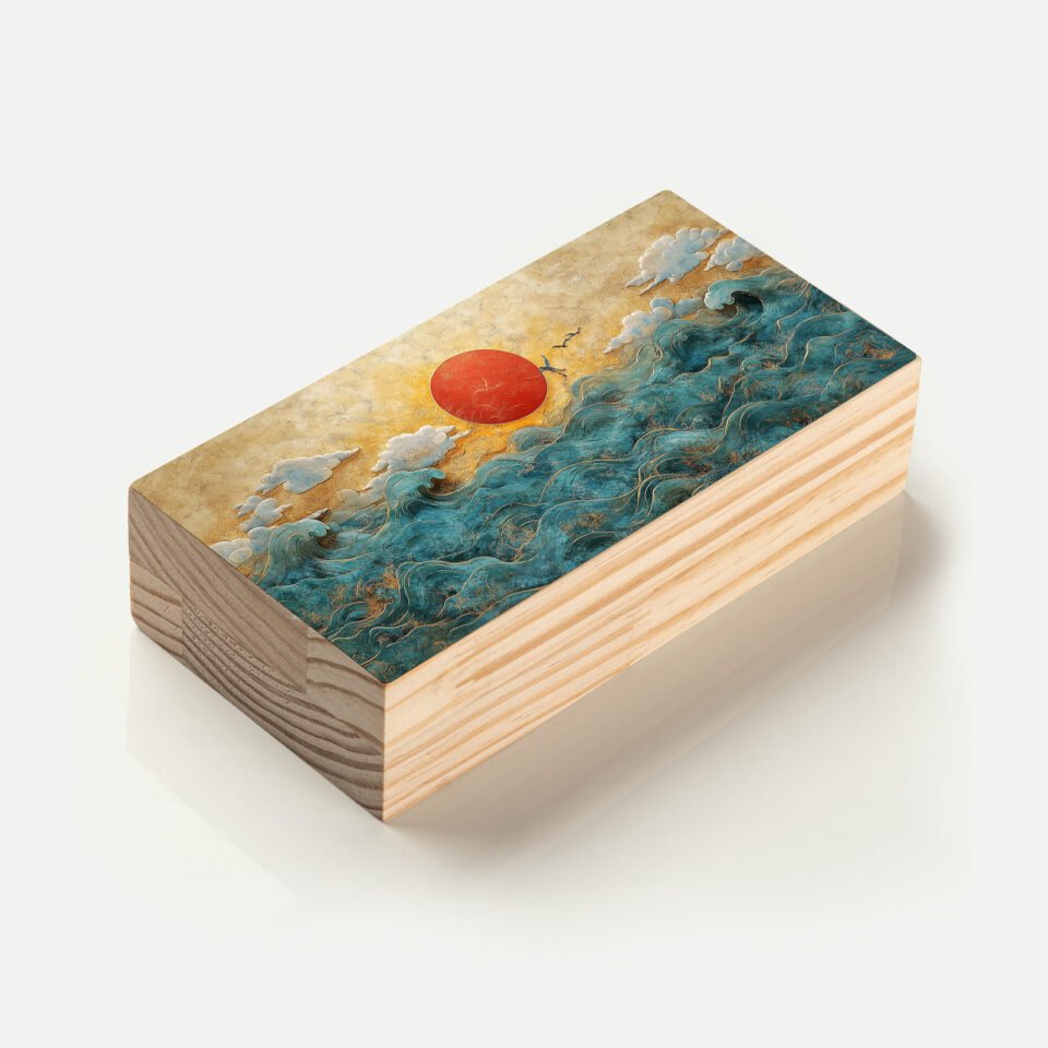 - Material: madeira pinus natural com impressão Fine Art e acabamento em metacrilato;