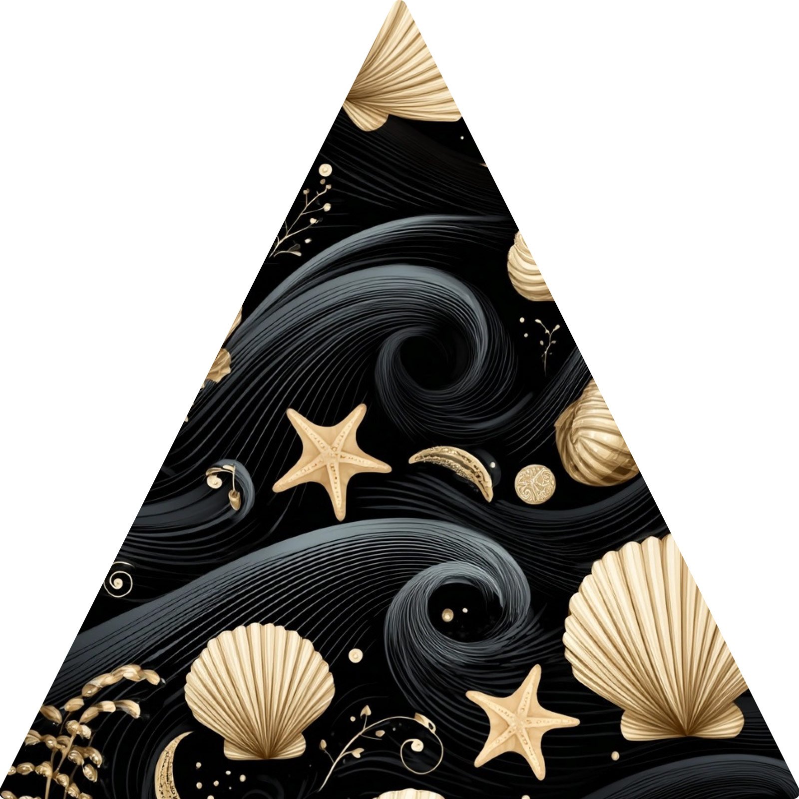 Como um mergulho profundo em um mar de contrastes, “Oceano Dourado” da Linha Trion, revela o encontro harmonioso entre o negro intenso das águas e o brilho delicado das conchas e estrelas-do-mar douradas. As ondas fluem em curvas suaves, trazendo consigo um movimento quase hipnótico, enquanto os elementos marinhos parecem flutuar em um cenário elegante e atemporal.