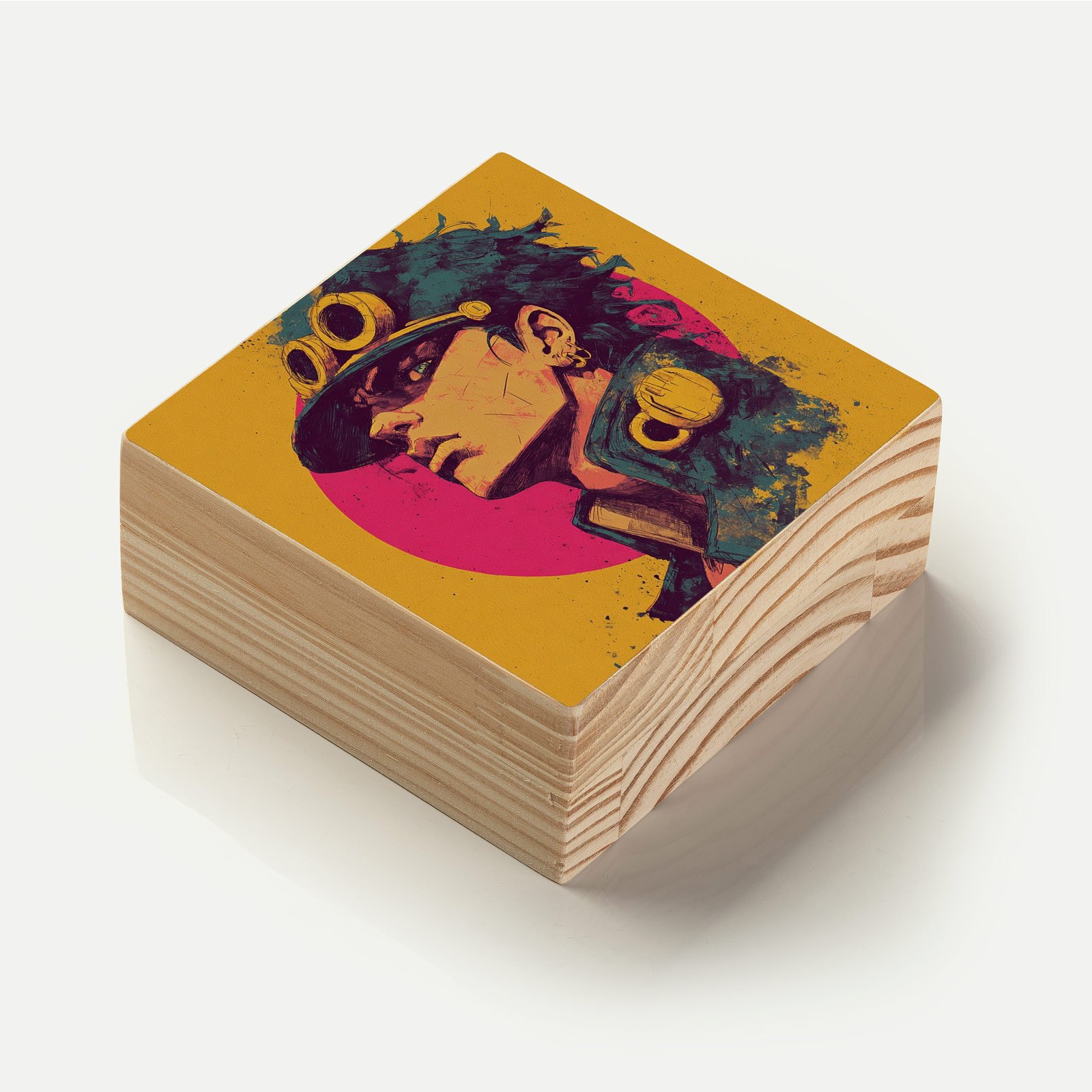 - Material: madeira pinus natural com impressão Fine Art e acabamento em metacrilato;