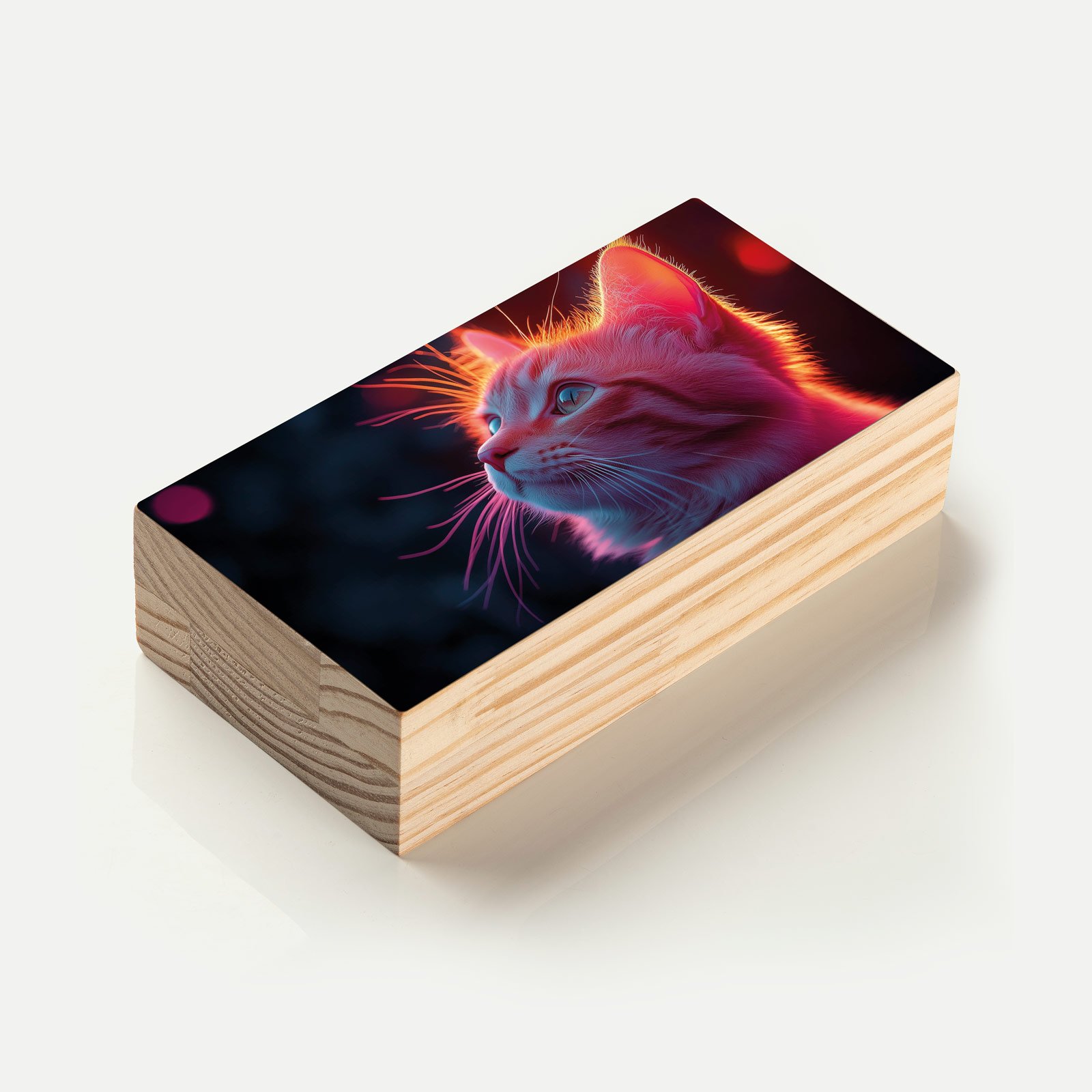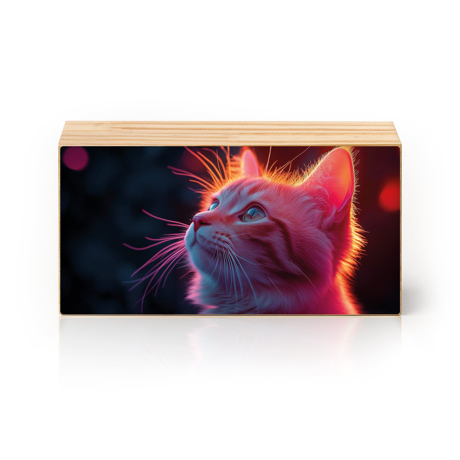 Transforme o ambiente com a beleza cativante do Totem Decorativo da Linha Horizon ‘Olhar Luminoso’. A arte destaca um adorável gato com pelos dourados, iluminado por tons rosados e azulados que criam uma atmosfera mágica e contemplativa. Uma peça que transmite paz, curiosidade e charme felino.