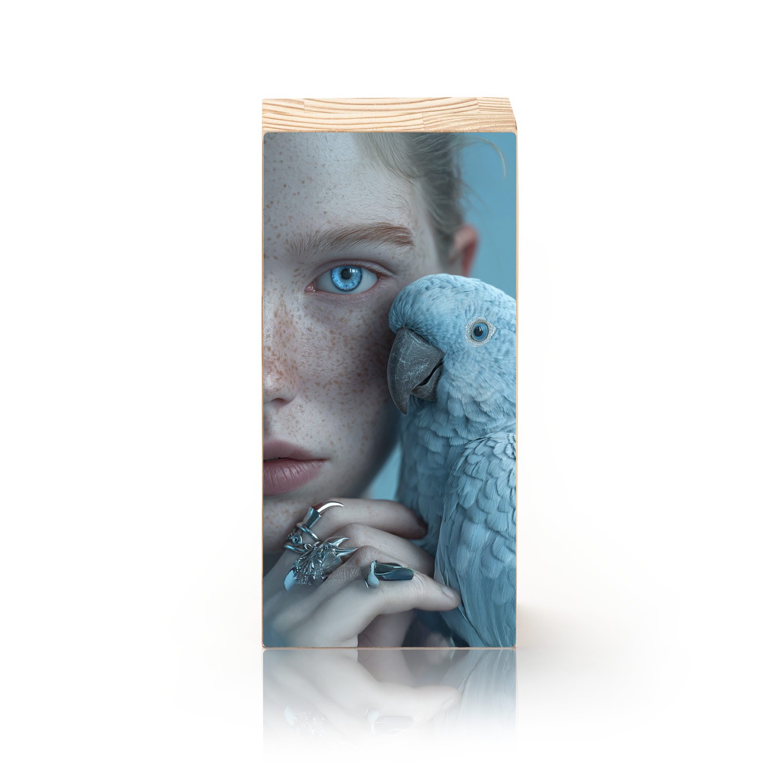 Entre a força de um olhar humano e a presença imponente da ave, “Olhos de Safira” revela uma conexão rara entre natureza e essência. O azul intenso domina a cena, transmitindo mistério, beleza e profundidade. Uma peça sofisticada que transforma qualquer ambiente em espaço de contemplação e arte.