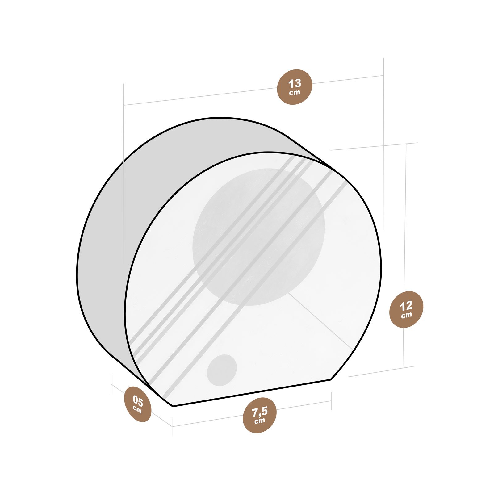 - Dimensões: 13 cm (largura) x 12 cm (altura) x 6 cm (profundidade);