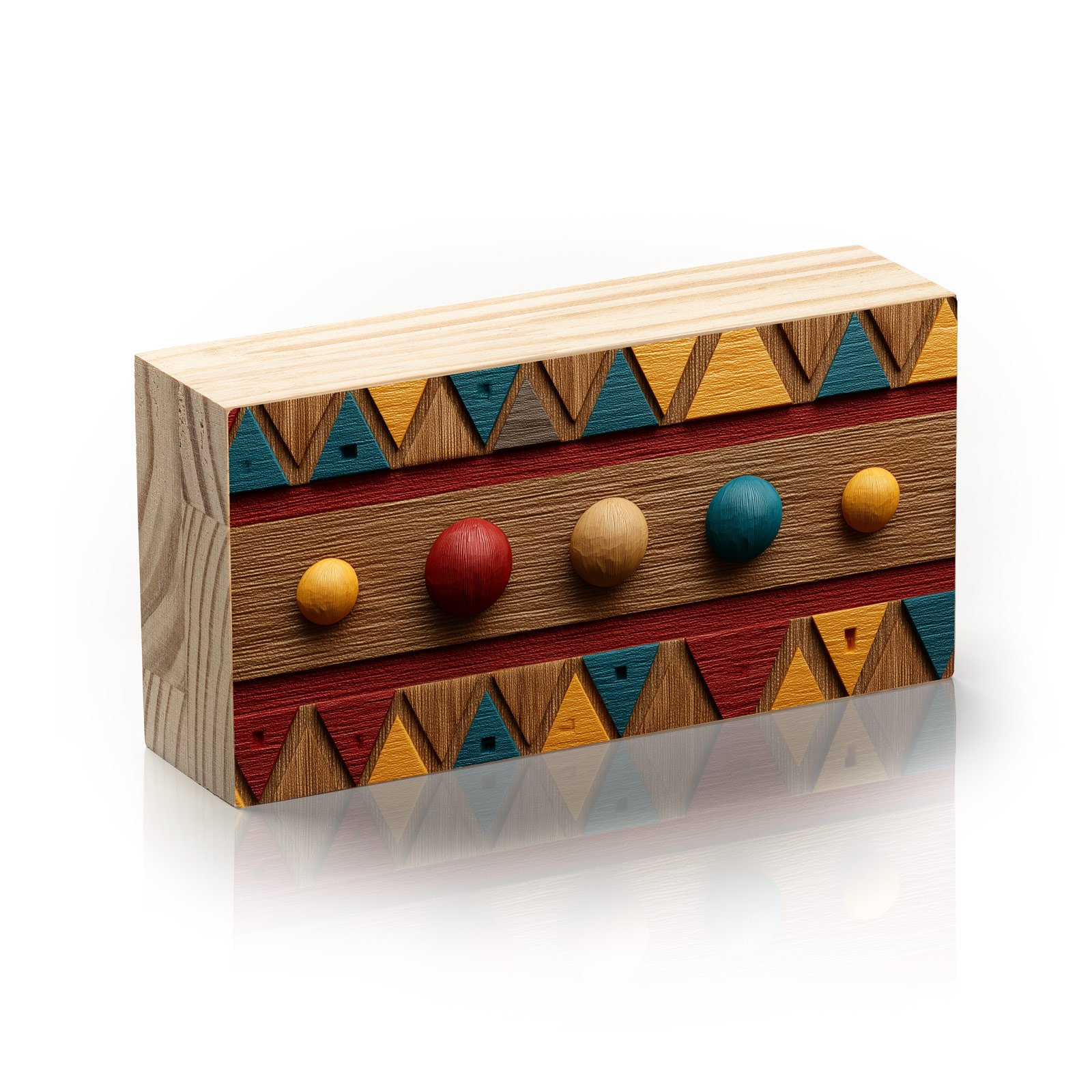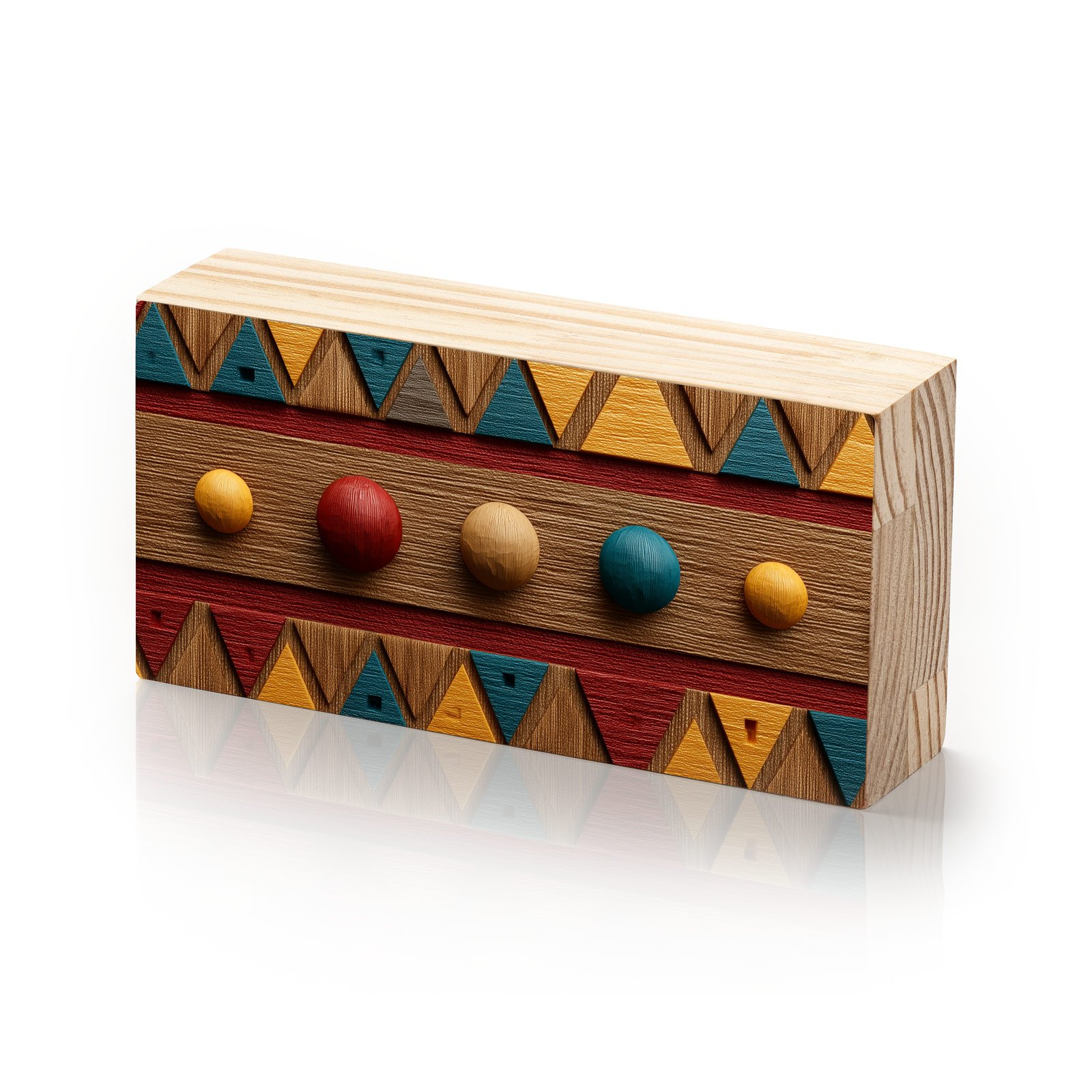 Mergulhe na harmonia dos padrões ancestrais com o Totem Decorativo “Ordem Tribal” da Linha Horizon. Com formas geométricas ricas em significado e uma paleta de cores terrosas com toques vibrantes, essa peça evoca a organização simbólica dos povos nativos e a beleza da simetria em rituais e ornamentos tribais.