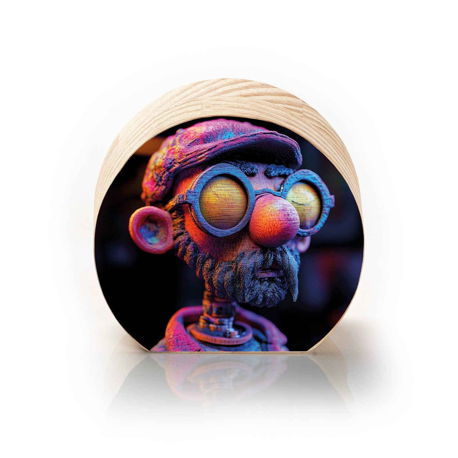 Explore os limites da imaginação com o Totem Decorativo ‘Pensador de Neon’ da Linha Luna, uma peça vibrante e provocativa que convida à reflexão criativa. Com olhos que refletem um universo inteiro e cores psicodélicas que saltam da madeira, essa figura excêntrica representa a mente que vê o mundo de forma única, intensa e fora da caixa.