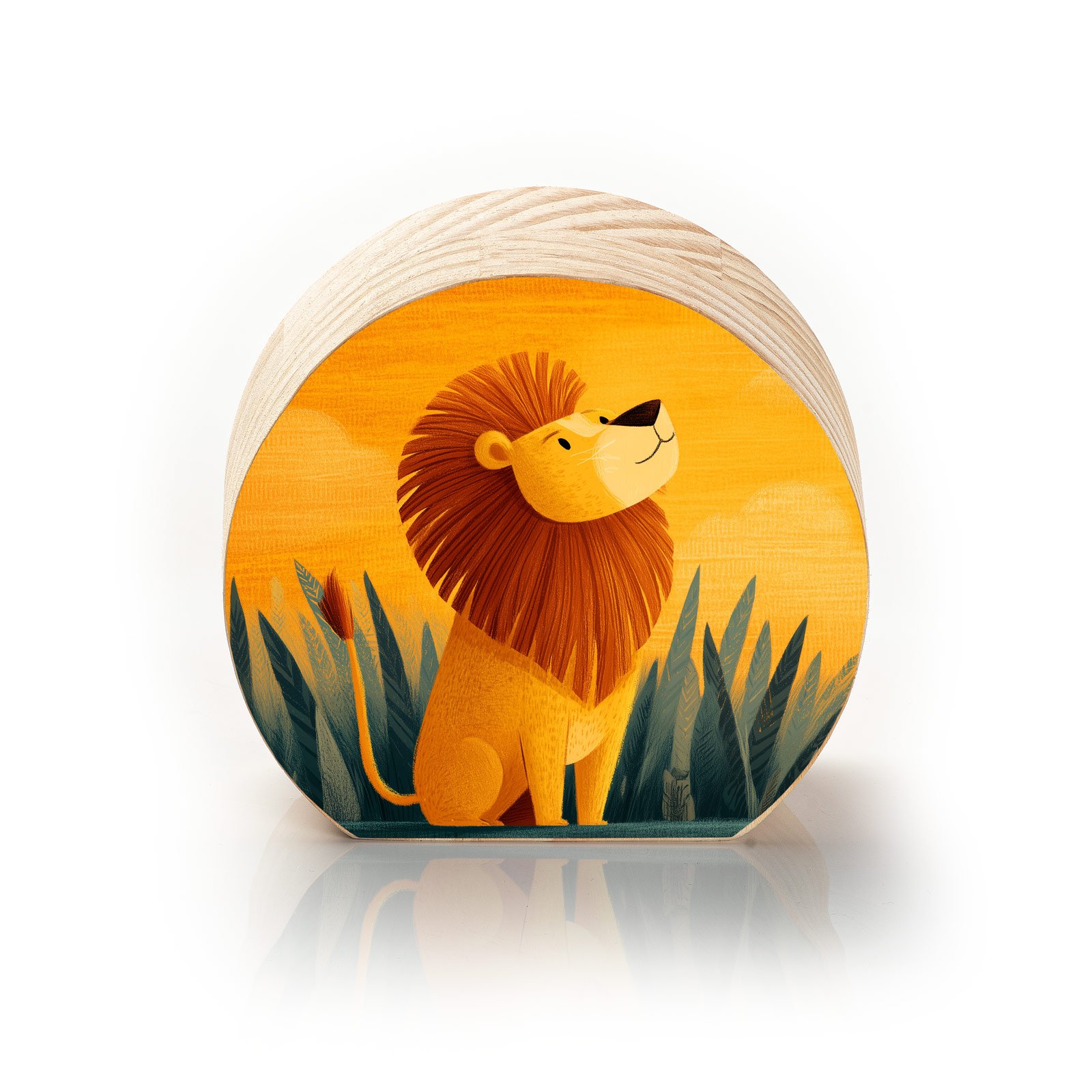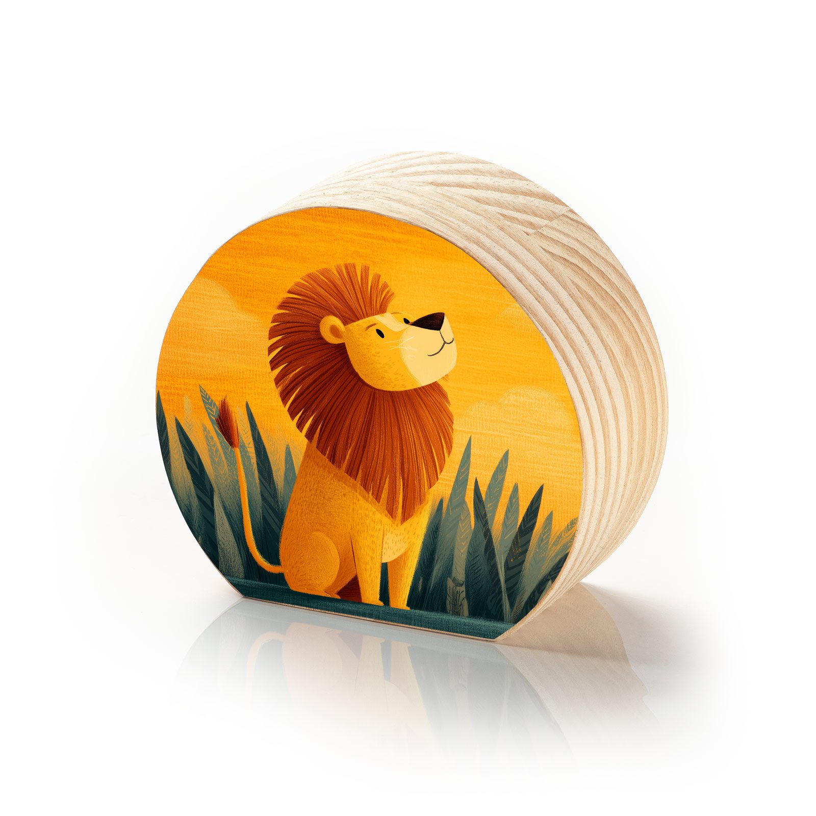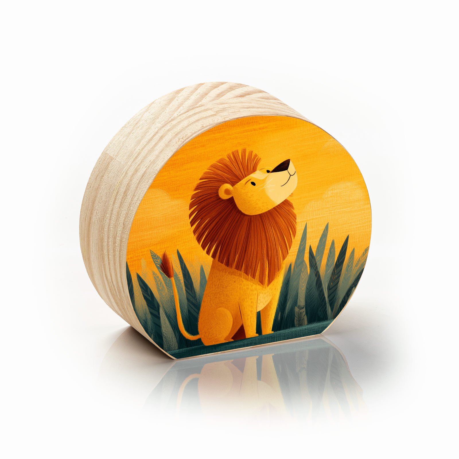A grandeza começa no coração. O Totem Decorativo “Pequeno Rei” da Linha Luna, retrata um leãozinho sereno e confiante sob a luz quente do entardecer, rodeado pela natureza. Uma imagem que celebra o crescimento, a coragem interior e o orgulho de quem está apenas começando a reinar.