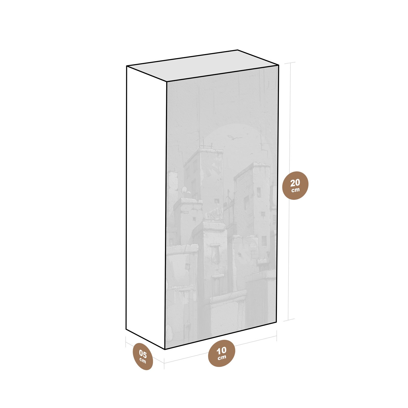 - Dimensões: 20 cm (altura) x 10 cm (largura) x 5 cm (profundidade);