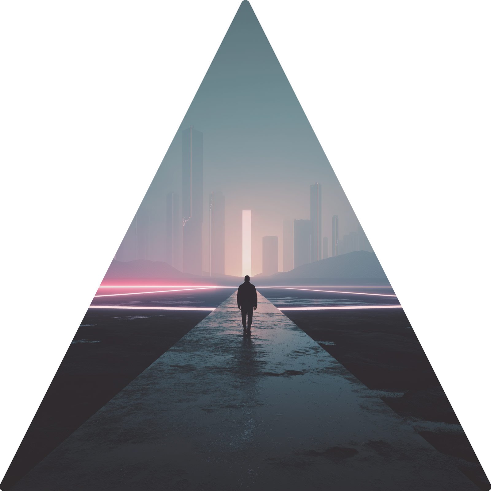 Entre sombras e brilhos elétricos, “Portal de Neon” representa a travessia rumo ao desconhecido, onde tecnologia e imaginação se encontram. A figura solitária caminha em direção a uma cidade luminosa, guiada por linhas de luz que cortam a escuridão, evocando coragem e a eterna busca por novos horizontes.