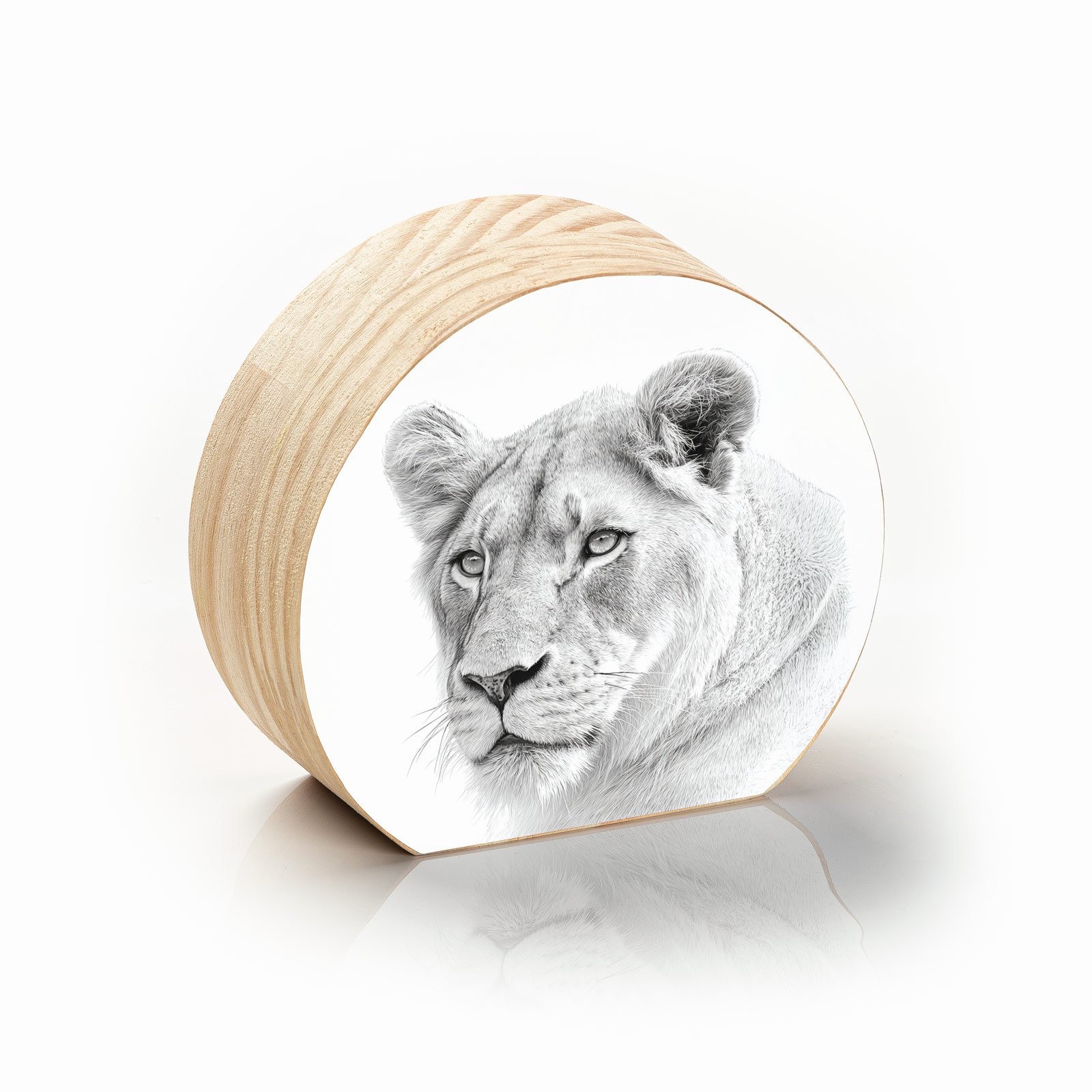 Com traços finos e um realismo poético, “Rainha Serena” captura a nobreza tranquila da leoa, símbolo de equilíbrio entre força e delicadeza. Sua expressão serena transmite confiança, coragem e a sabedoria ancestral das guardiãs da savana.