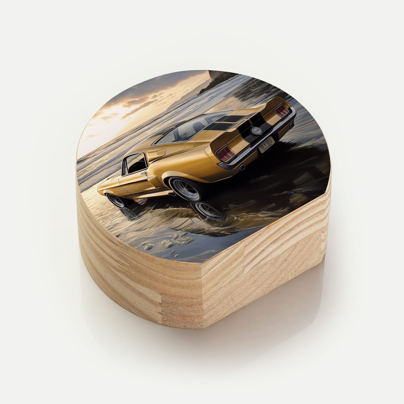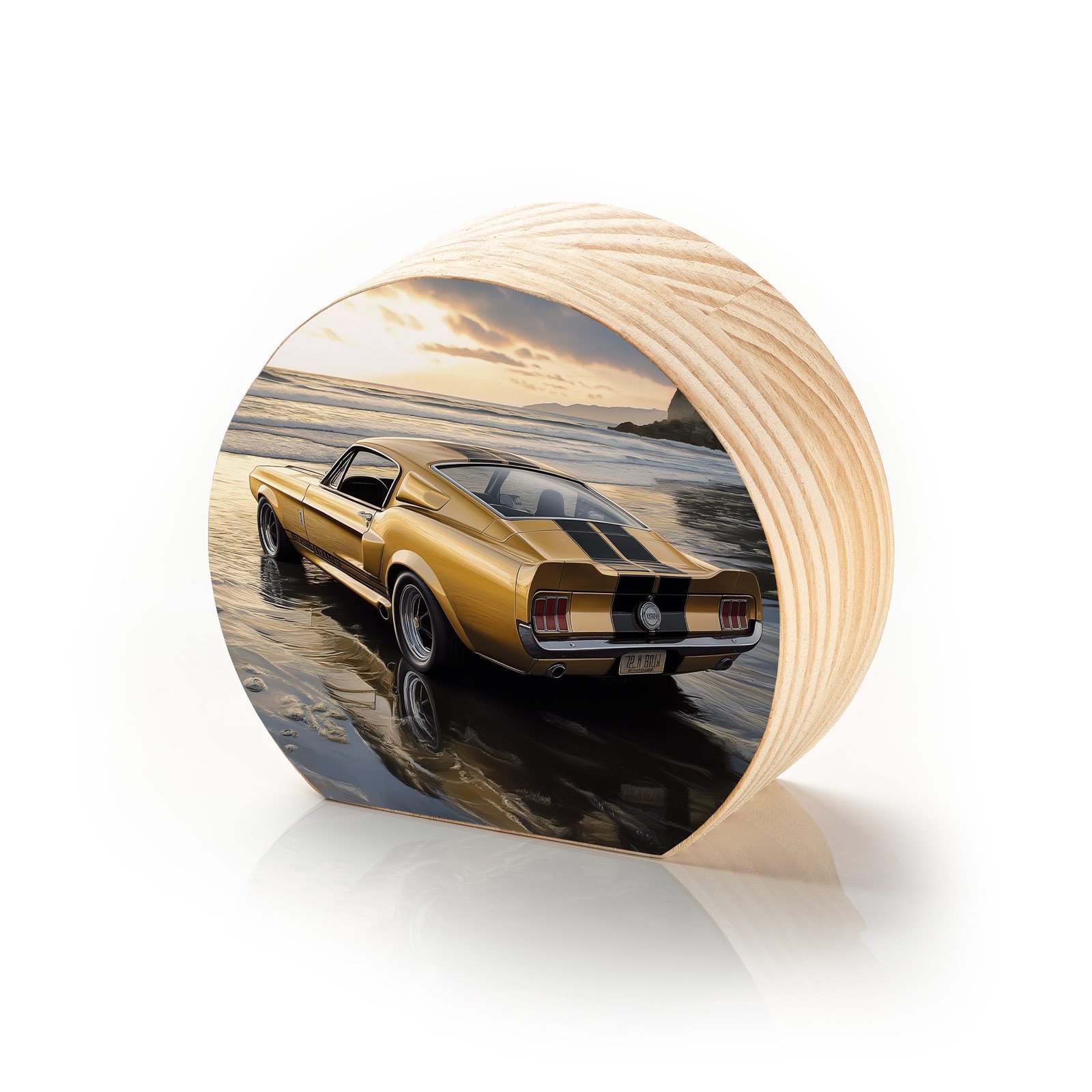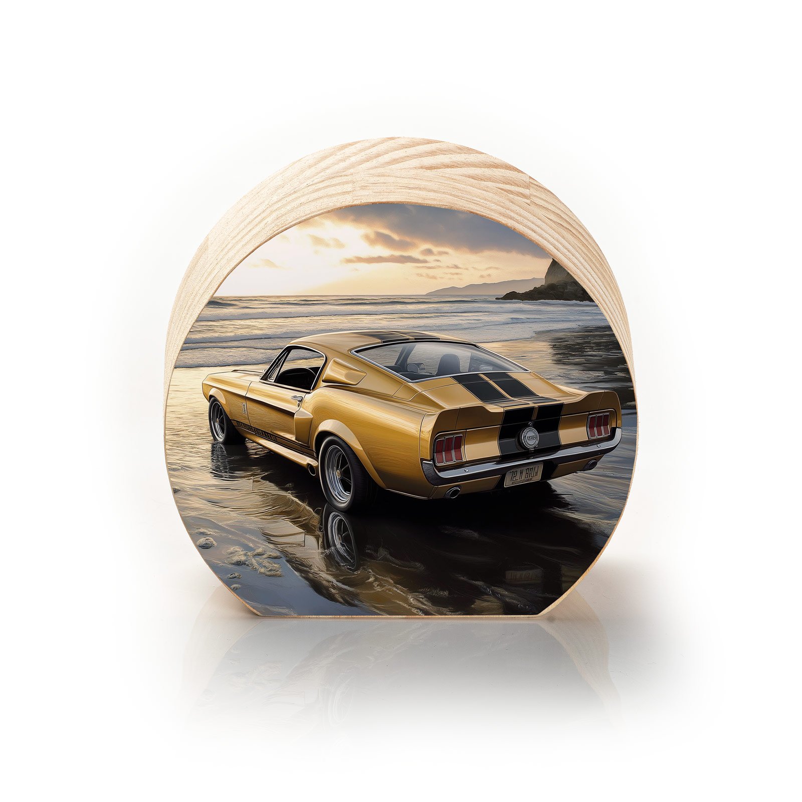 Sinta a liberdade de uma estrada sem fim com o Totem Decorativo ‘Rastro de Ouro’ da Linha Luna, uma peça que une potência e contemplação. O lendário Mustang dourado repousa sobre a areia úmida, banhado pelo pôr do sol, evocando memórias de aventura, velocidade e momentos que não voltam, mas sempre vivem dentro de nós.
